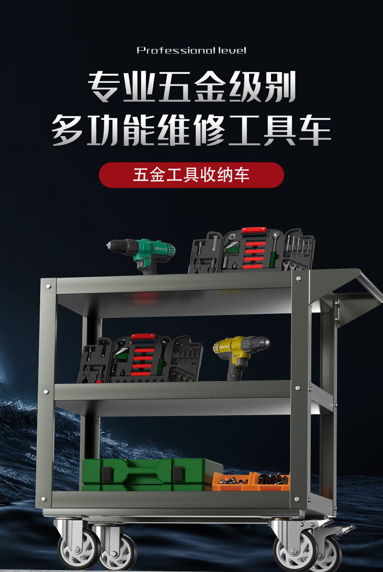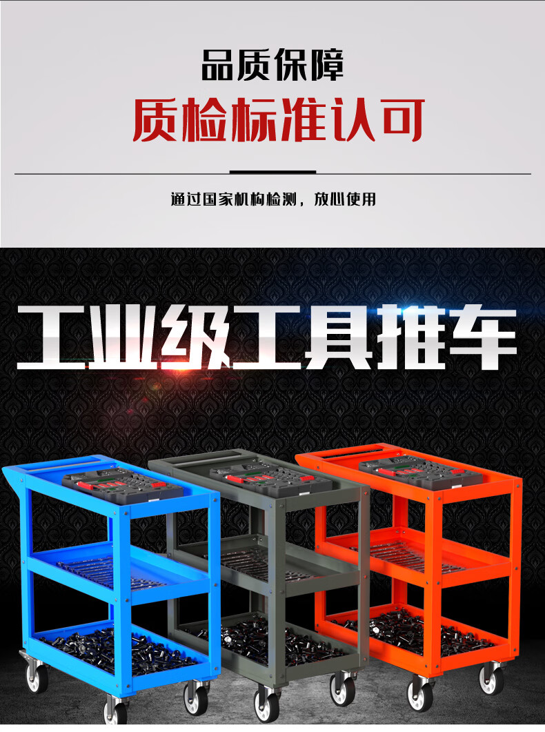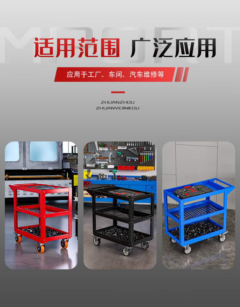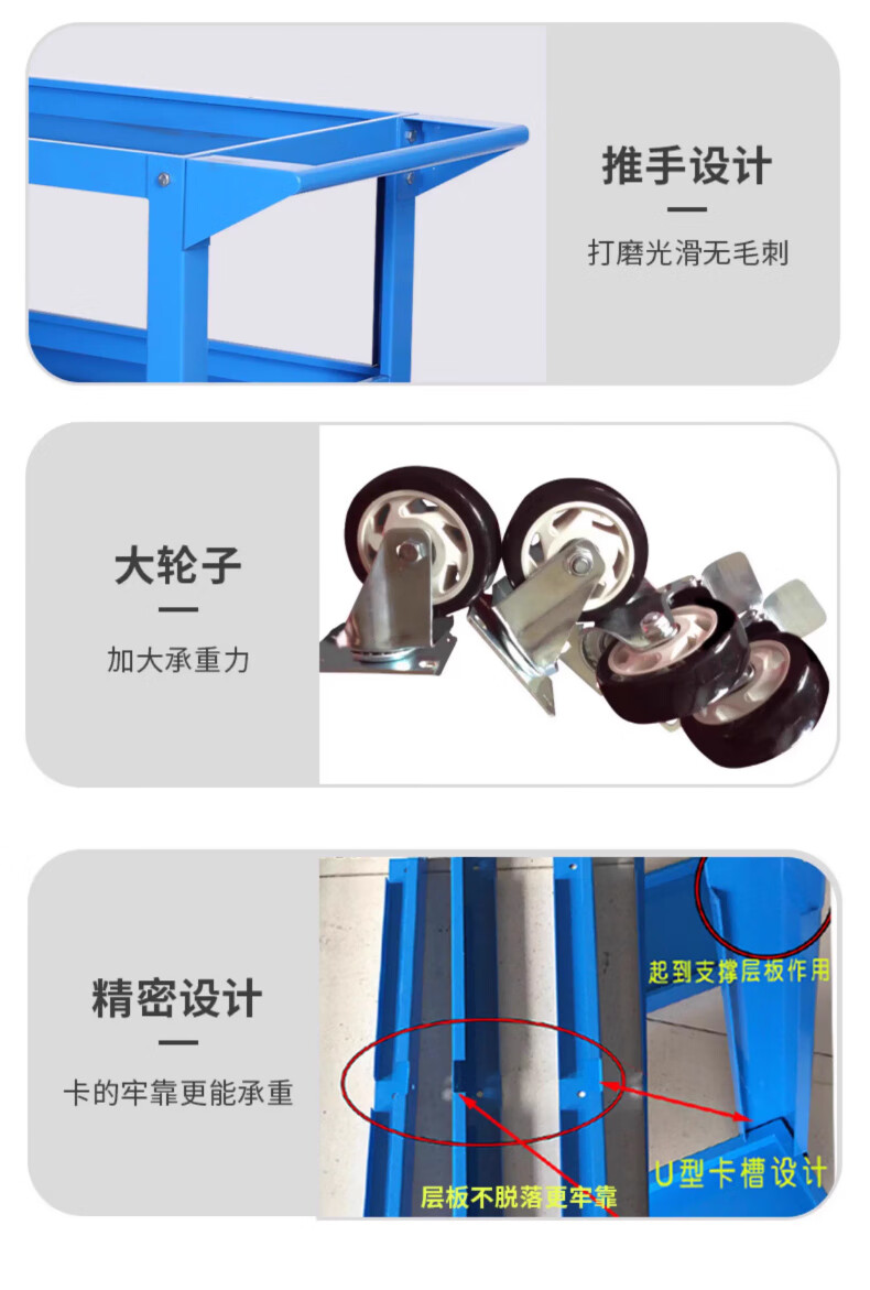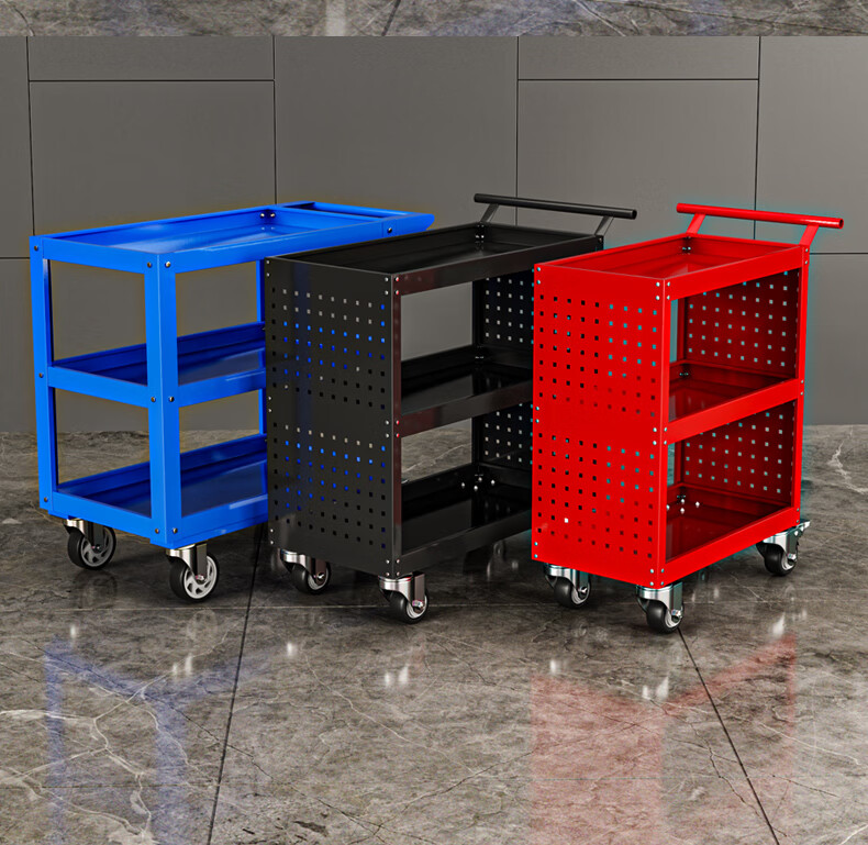 Chitu Multifunctional Workshop Heavy Duty Maintenance and Sorting Thickened Tool Cart Hardware Shelves Handling Three-layer Trolley Lightweight Large Black Weight About 15kg Lightweight Large Length 800* Width 400* Height 800mm