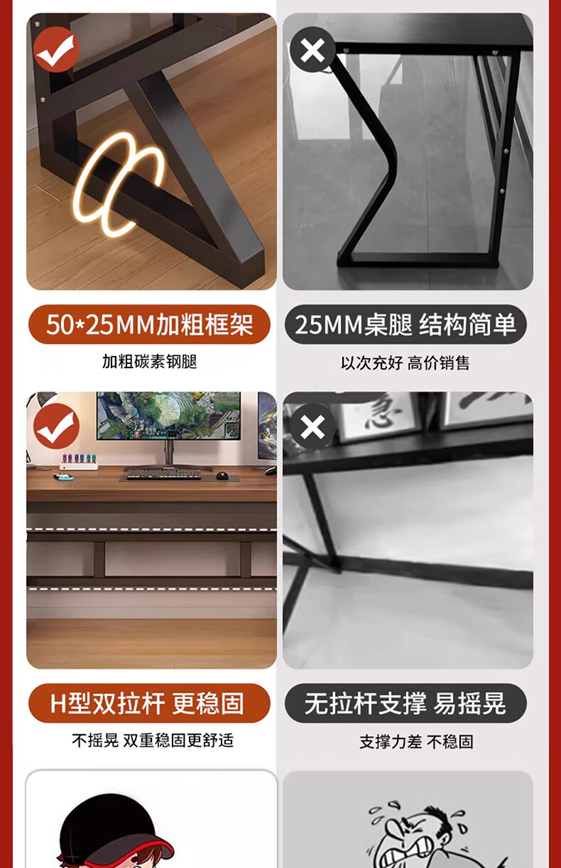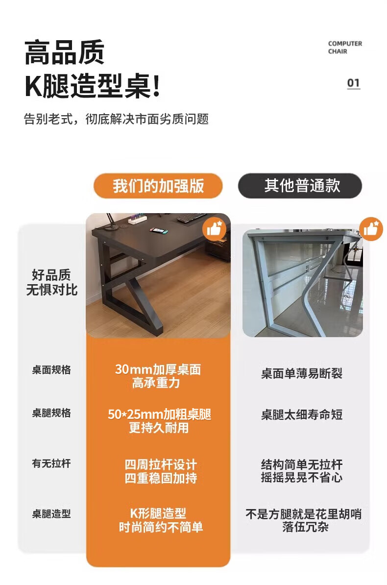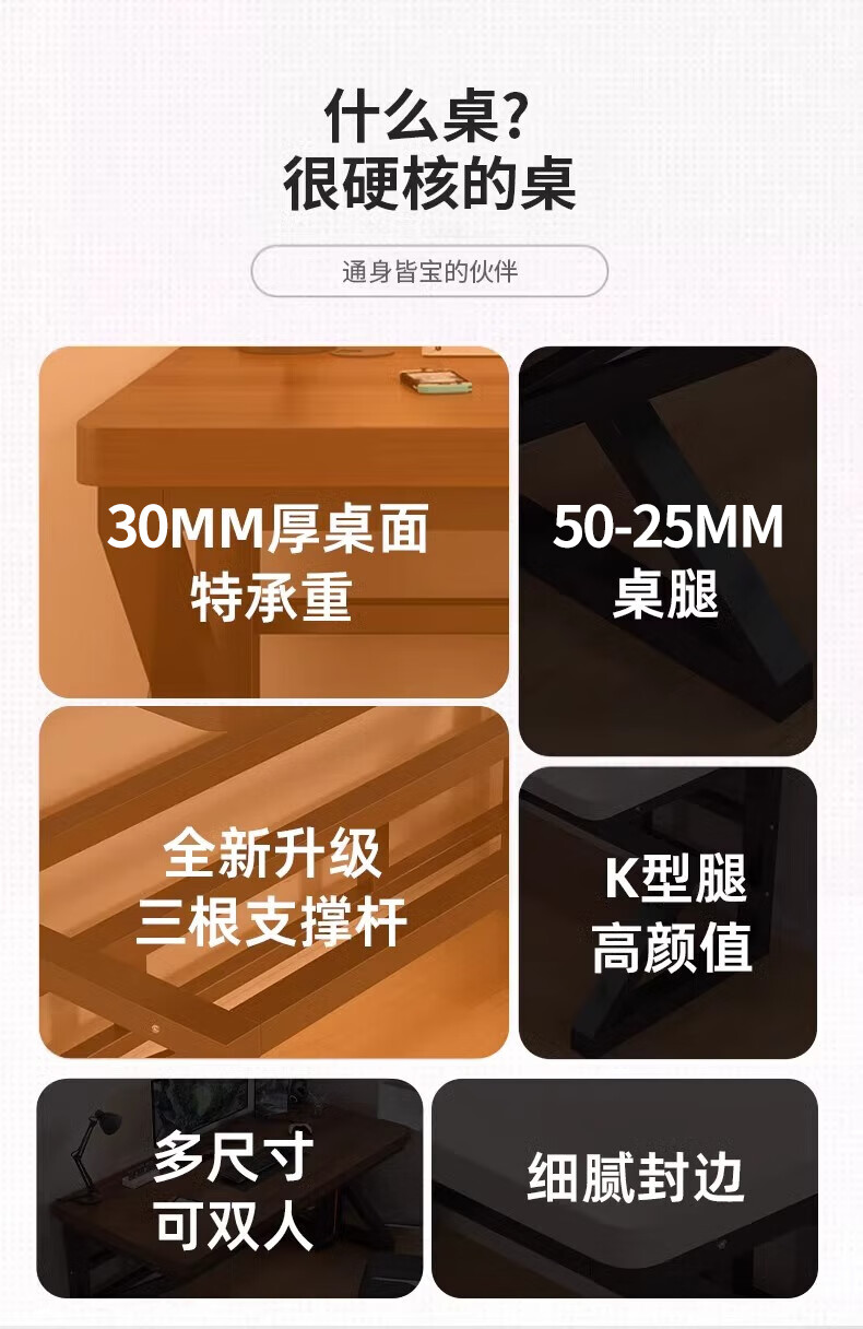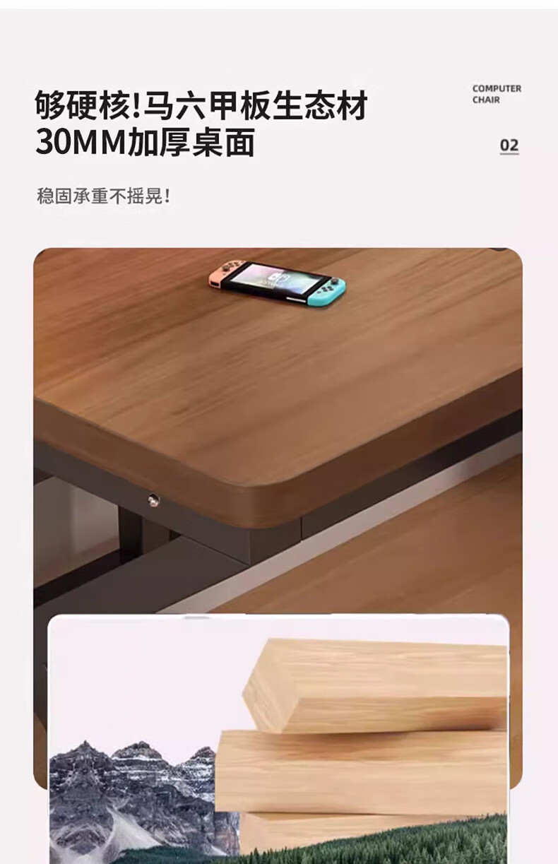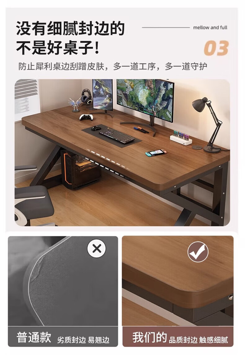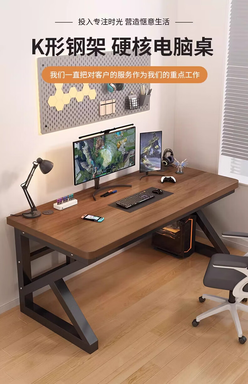 Jinghe computer desk solid wood desk home bedroom desktop gaming table double desk long table student study table walnut color 30MM solid wood + black frame 90x60x75cm
