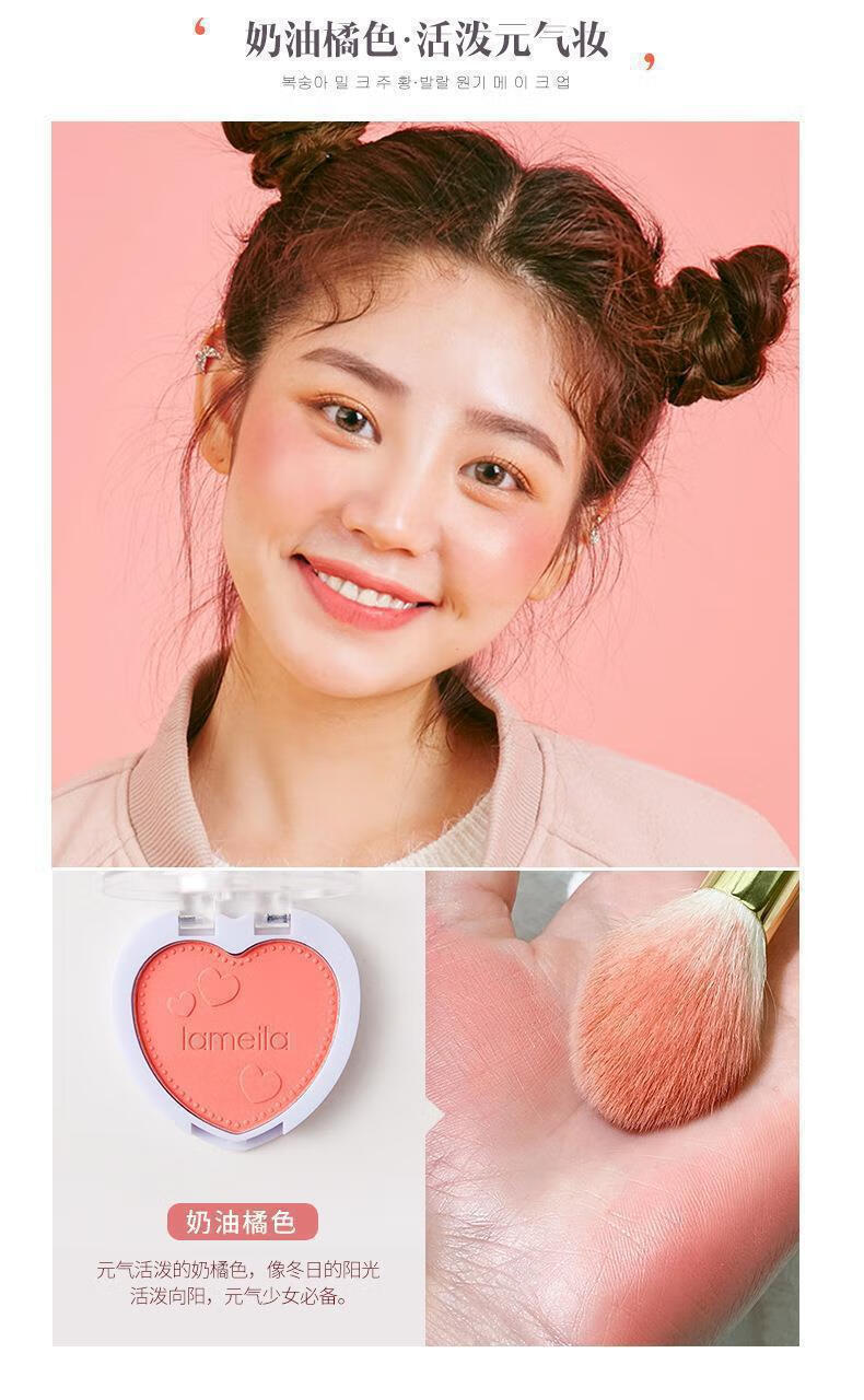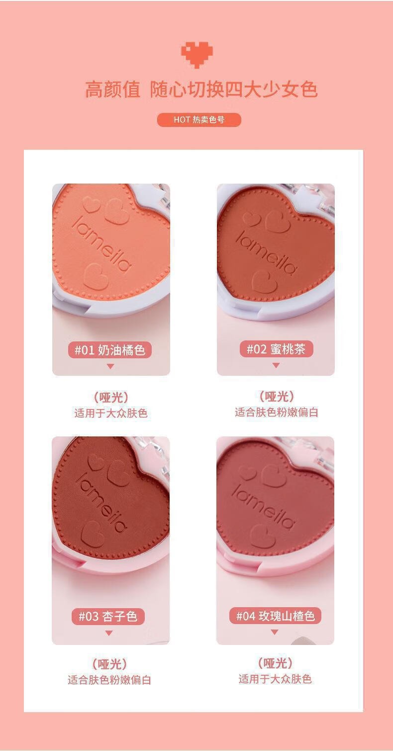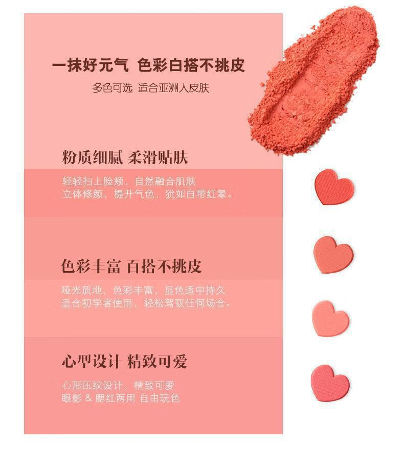 Heart-beating little blush mama-sense natural skin clear and flushed student party portable love rouge repair face 1# cream honeydew