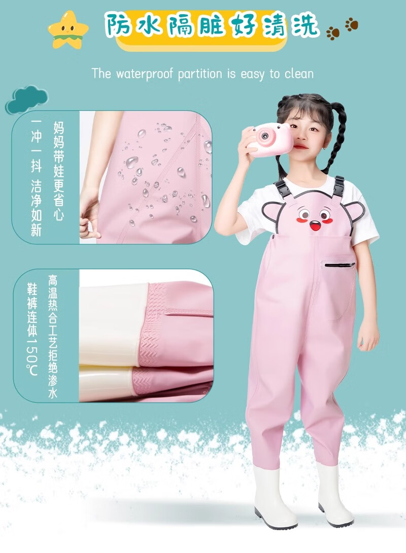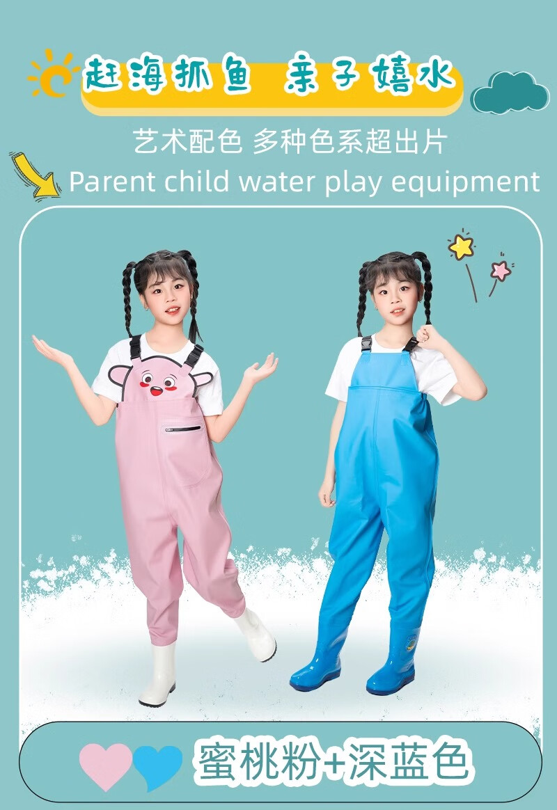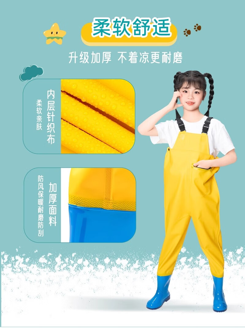 Children's sea jumpsuit, full-body waterproof rain pants, rain boots, one-piece waders, play suit, wading kindergarten equipment, children's yellow suspender pants, size 36