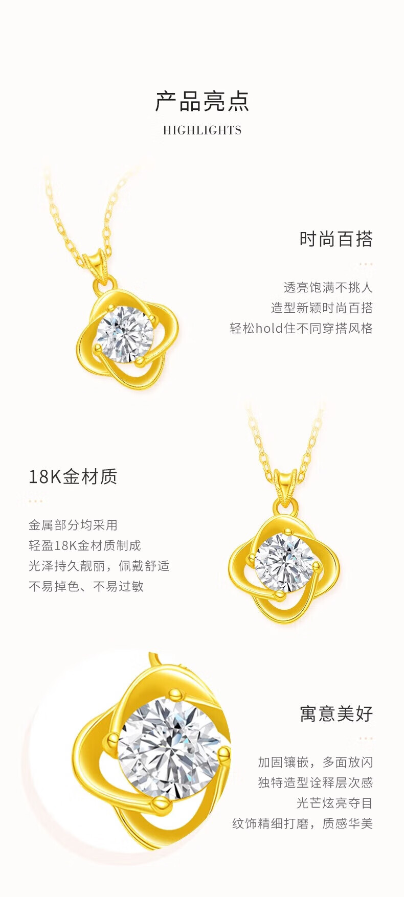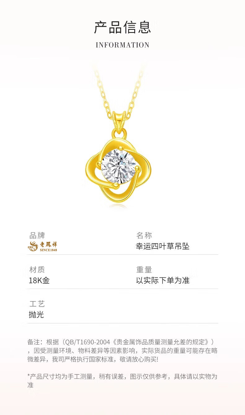 Lao Fengxiang 18K gold lucky four-leaf clover pendant women's new sexy necklace birthday gift for girlfriend and wife lucky four-leaf clover pendant brand gift box