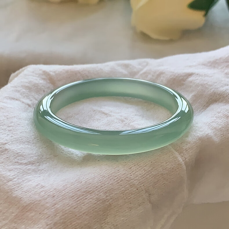 Layun jade ice seed oil green chalcedony agate bracelet horse material clear water jade and field jade color jade bracelet Valentine's Day gift 52 rings