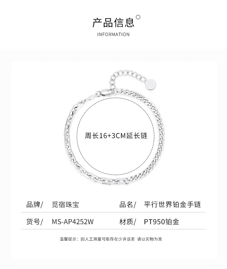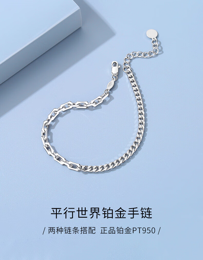 Misu platinum bracelet women's ins niche design hand jewelry PT950 platinum AB style high-quality personalized thick bracelet European and American style customized deposit