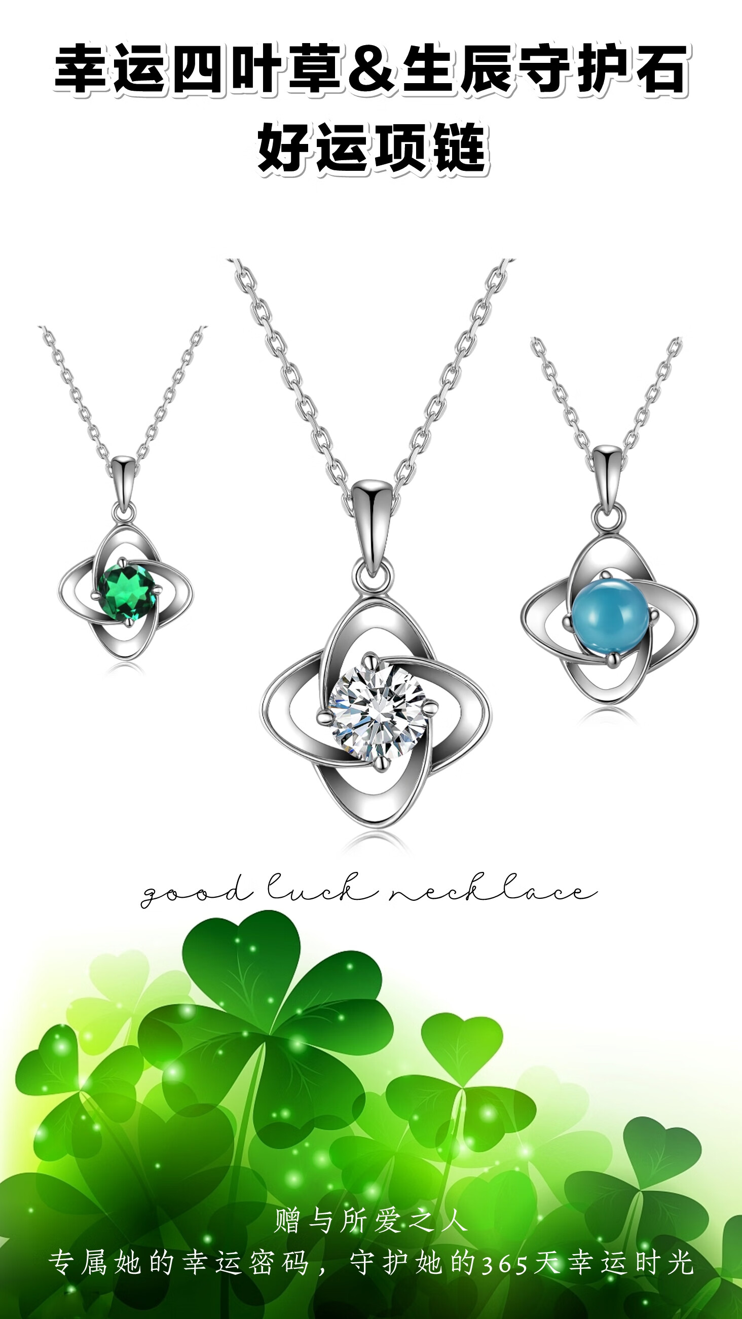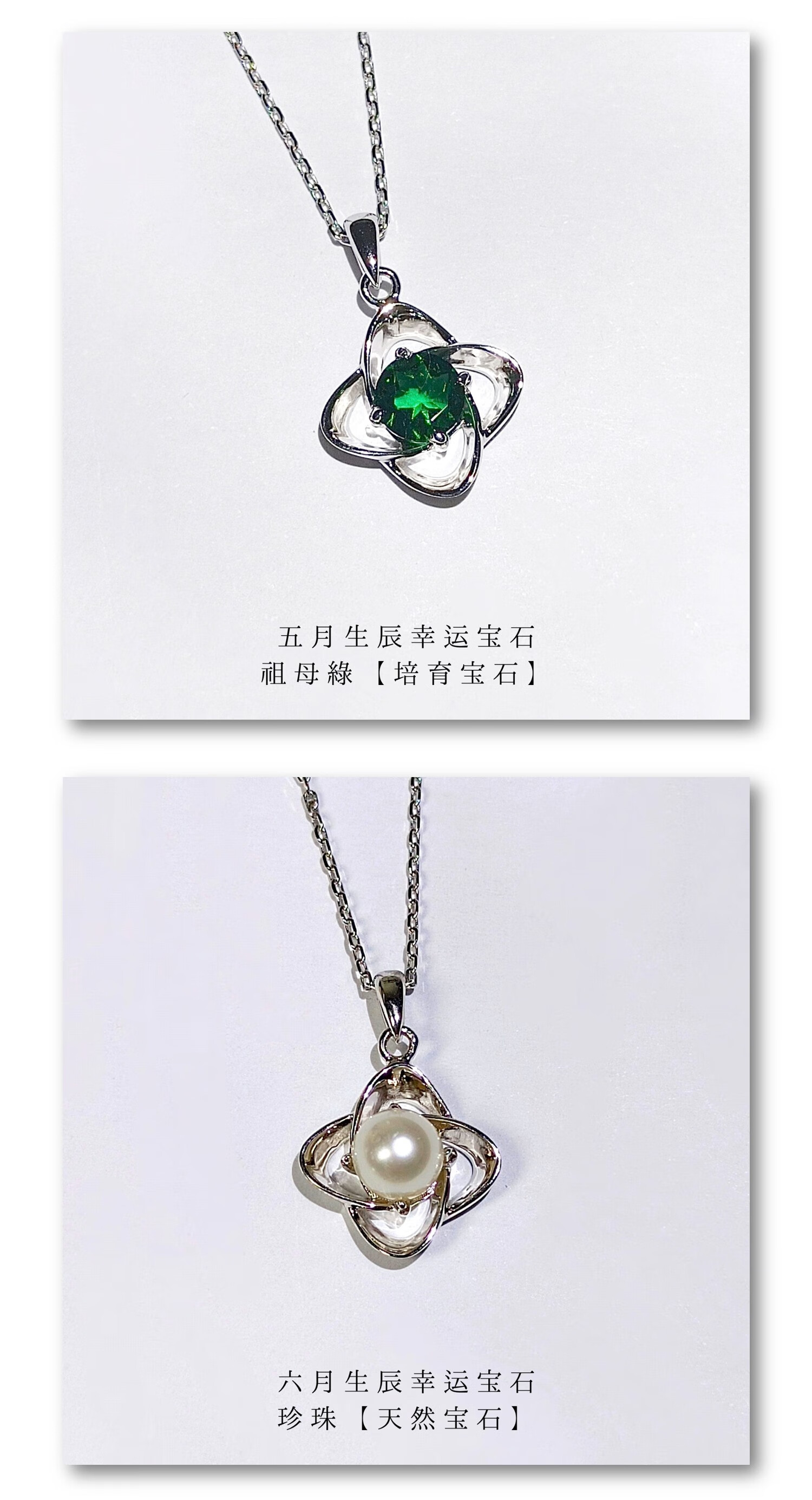 Hermès manufacturer 925 sterling silver four-leaf clover necklace gift pendant for wife and mother May emerald (cultured gemstone)