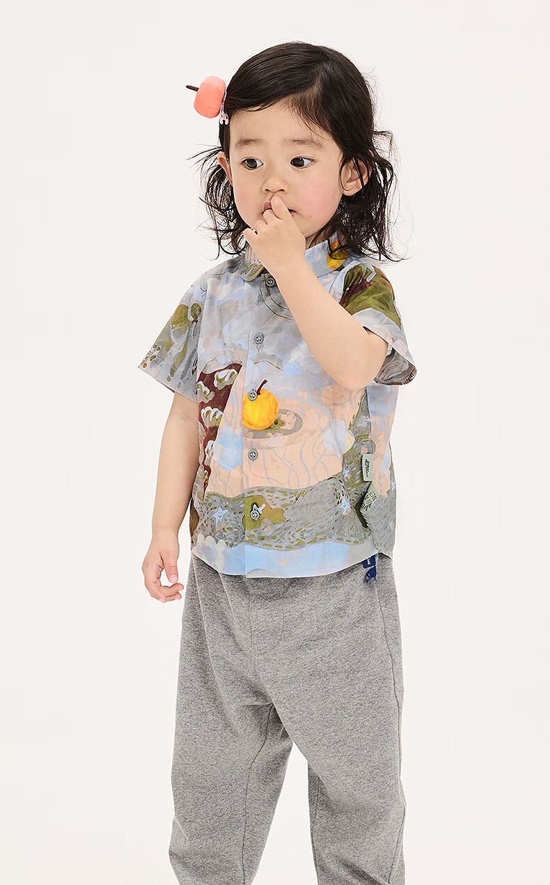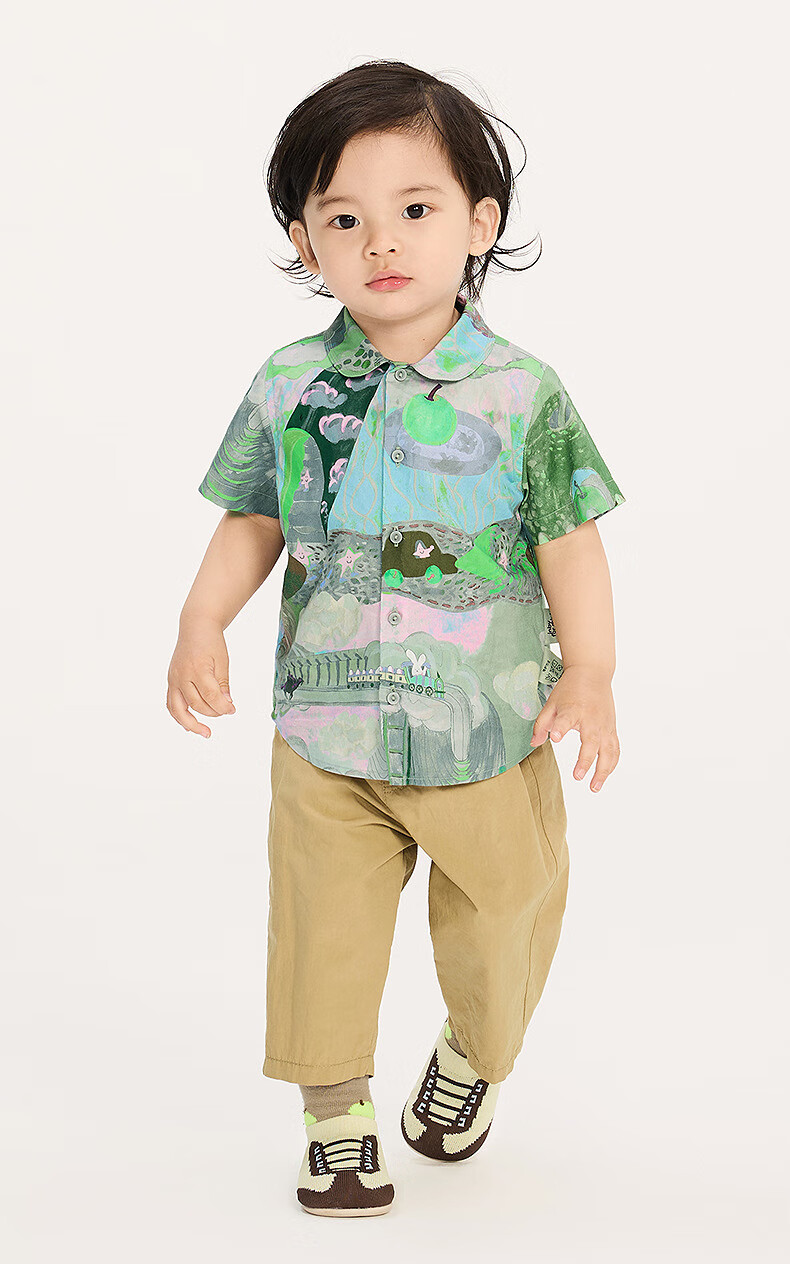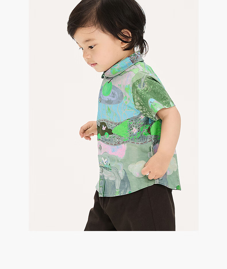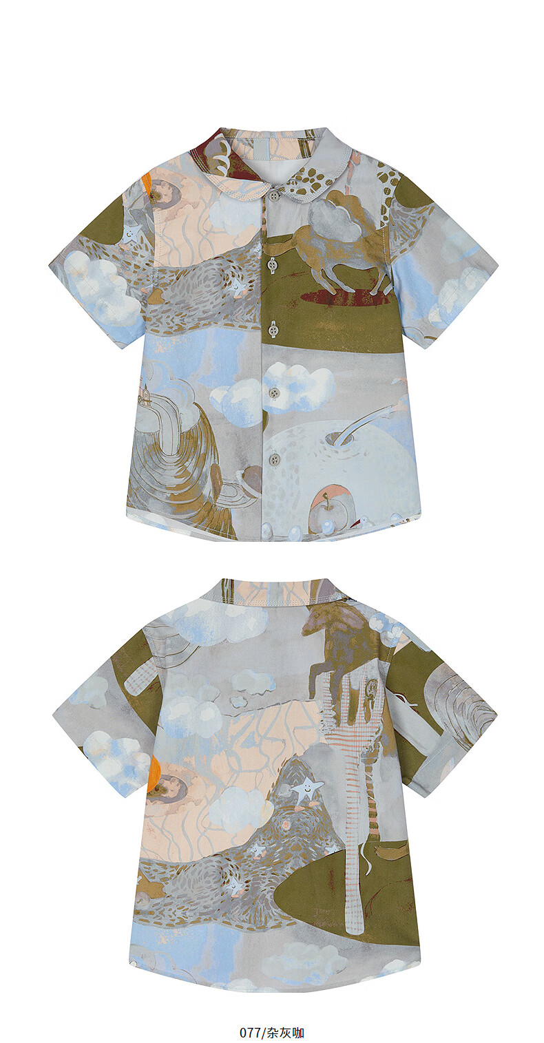 Jnby by JNBY new Jiangnan cloth baby short-sleeved shirt lapel H-shaped loose 25 autumn boys and girls baby YP7210940 077/miscellaneous gray coffee pattern random 100 cm