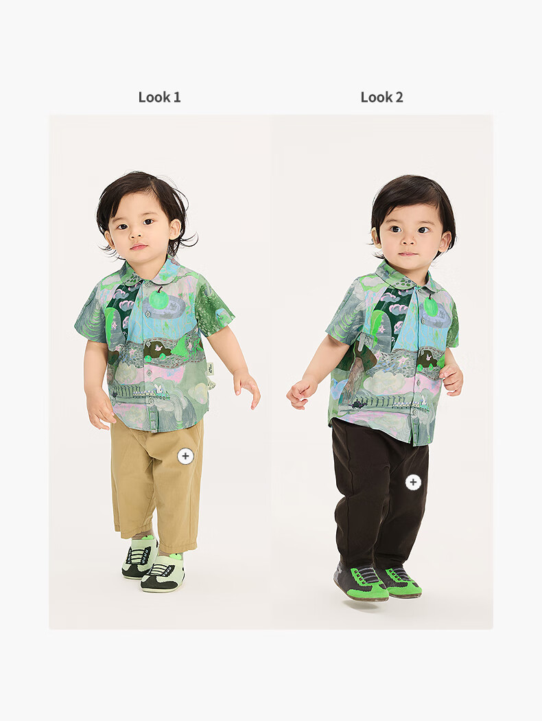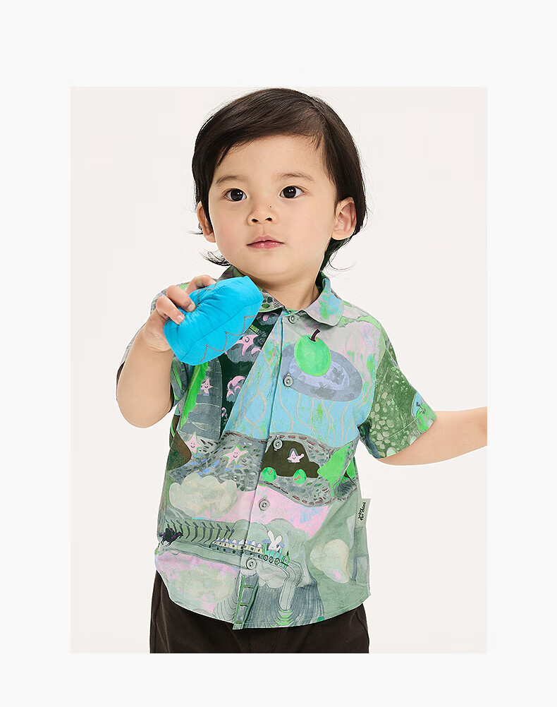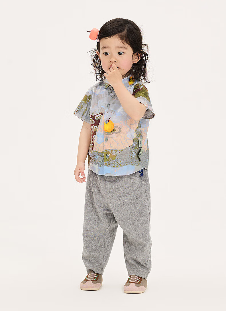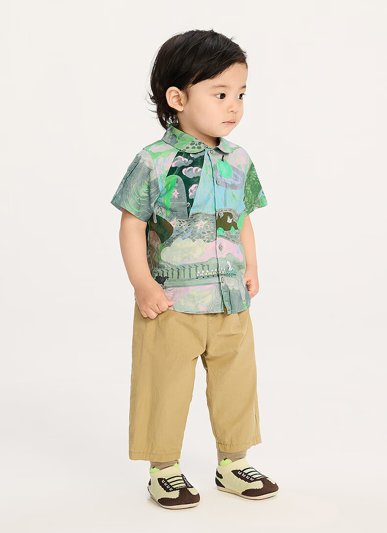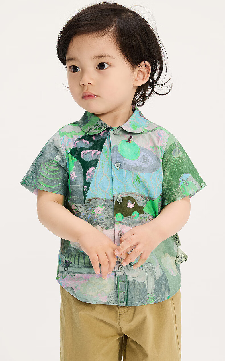 Jnby by JNBY new Jiangnan cloth baby short-sleeved shirt lapel H-shaped loose 25 autumn boys and girls baby YP7210940 077/miscellaneous gray coffee pattern random 100 cm