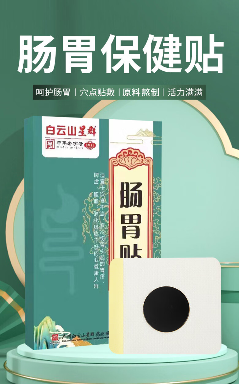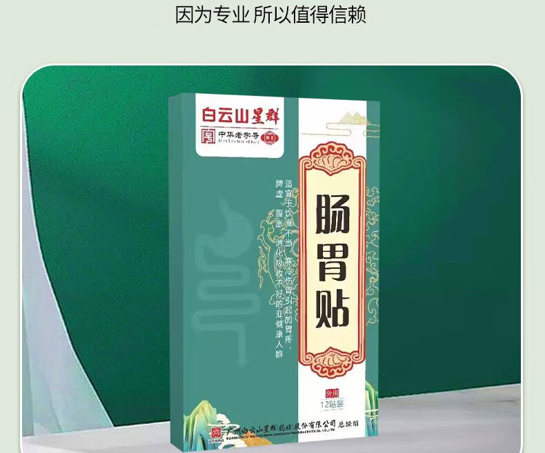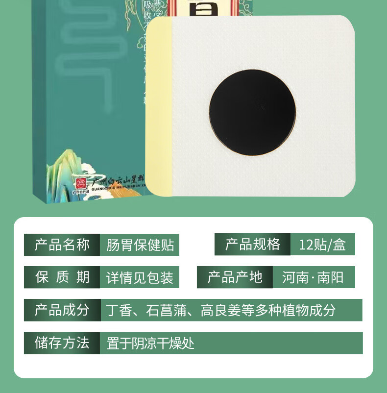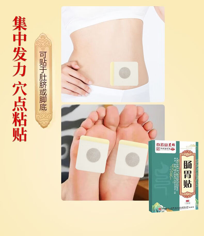 Baiyunshan Xingqun Guangyao Baiyunshan Gastrointestinal Patch Stomach Cold and Flatulence Nourishing Plaster Indigestion Gastroenteritis Patch Gastrointestinal Patch 5 boxes of 60 patches for home use Indigestion