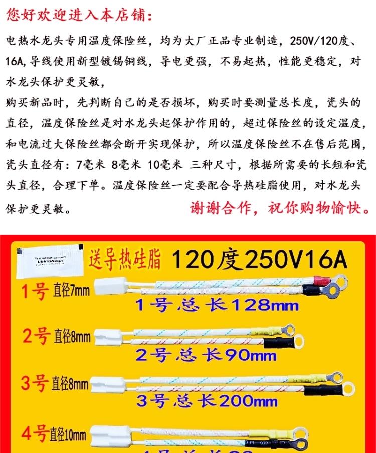 电热水龙头专用保险丝过热熔断保护器保险管温度250V/16A/120度/ 06型送导热硅脂