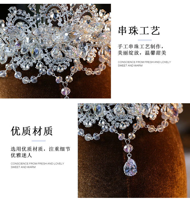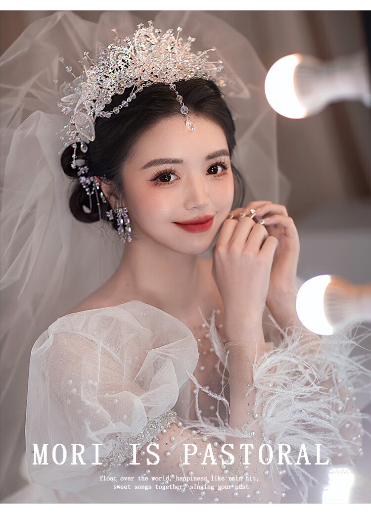 Langqing Bridal Crown Headdress Super Fairy Crystal Eyebrow High-end Princess Wedding Crown Wedding Dress Photo Accessories Crystal Crown + Earrings + Veil