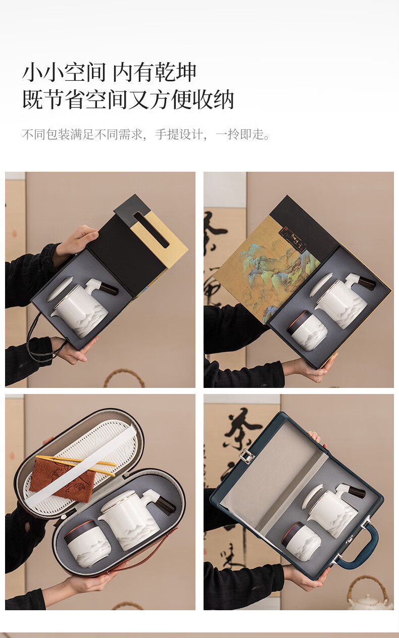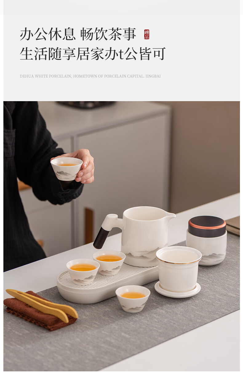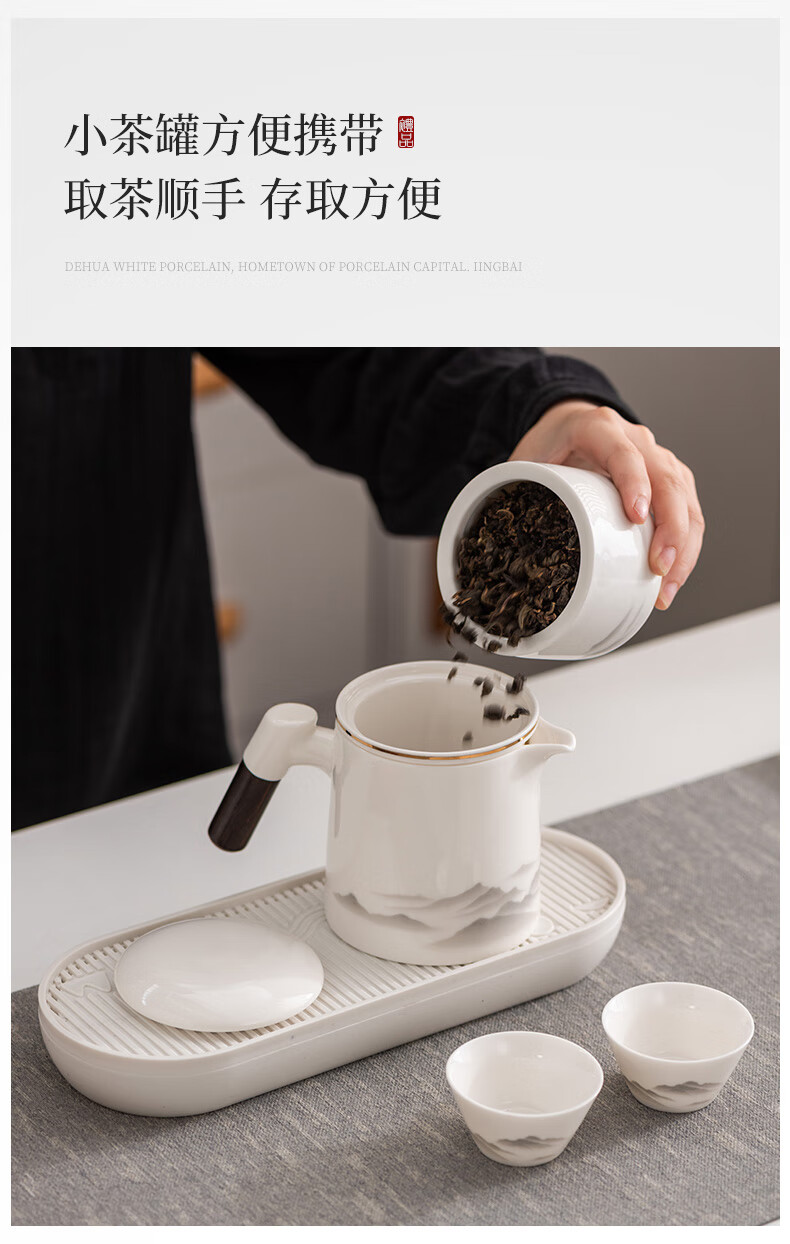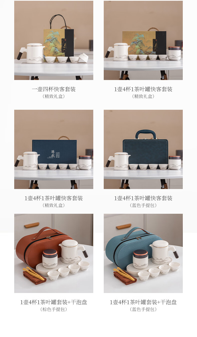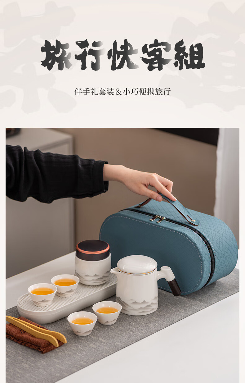 Travel tea set high-end and convenient one pot four cups mutton fat jade Kung Fu tea set complete gift box gift box ink eagle beak one pot four cups blue oval plate towel holder