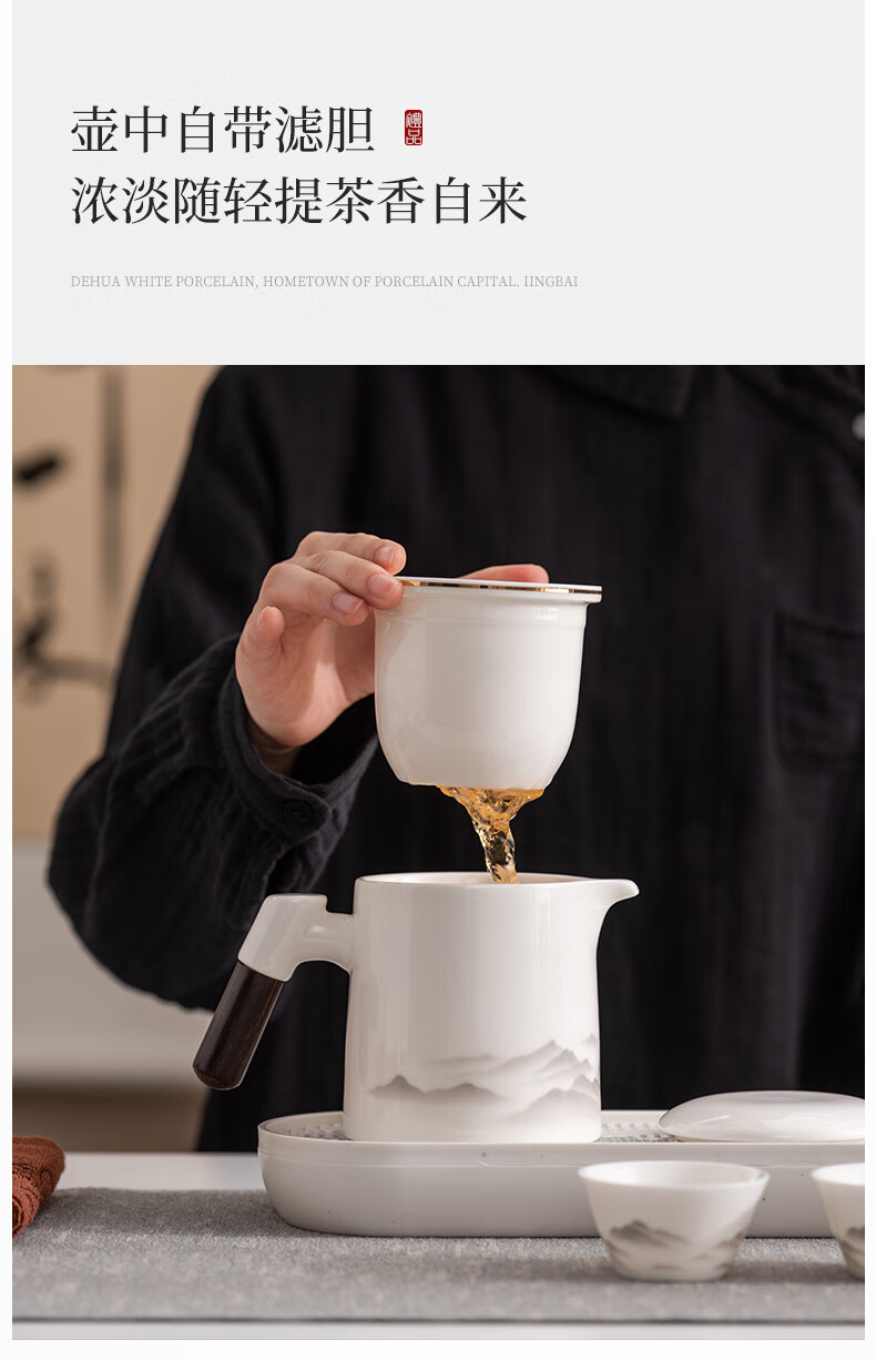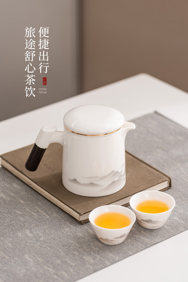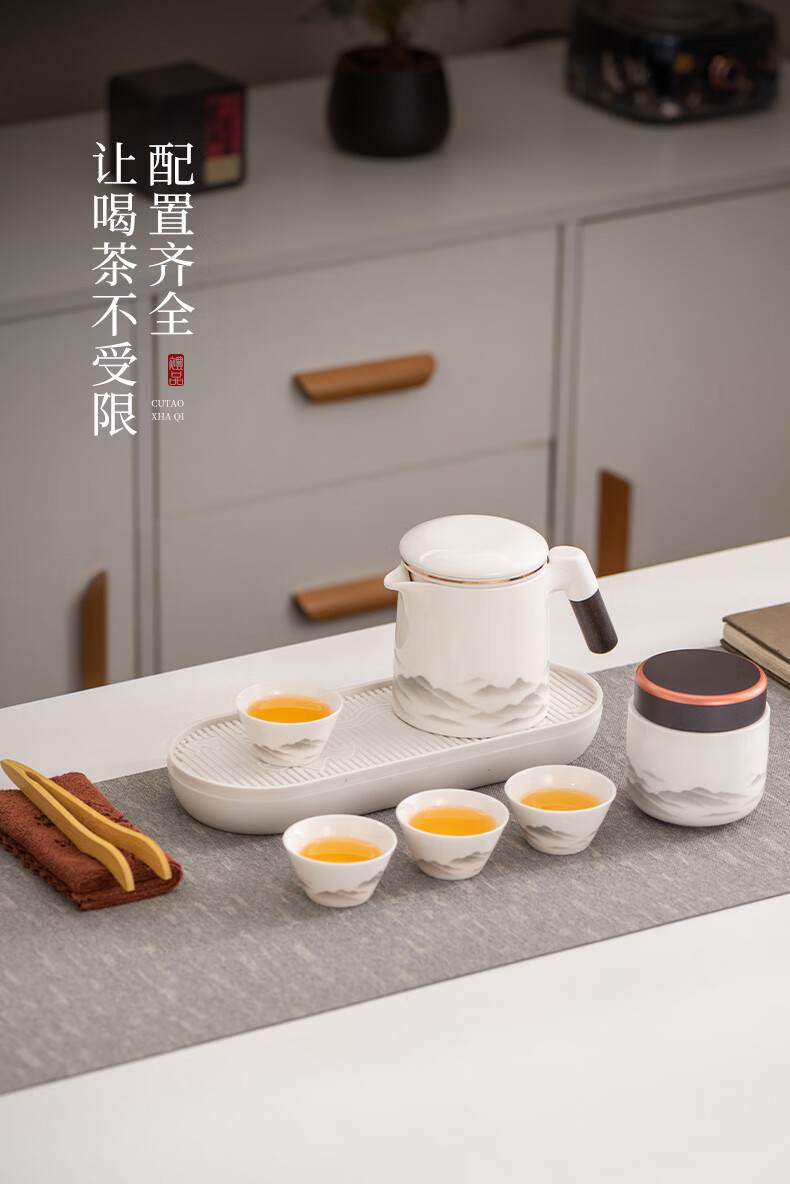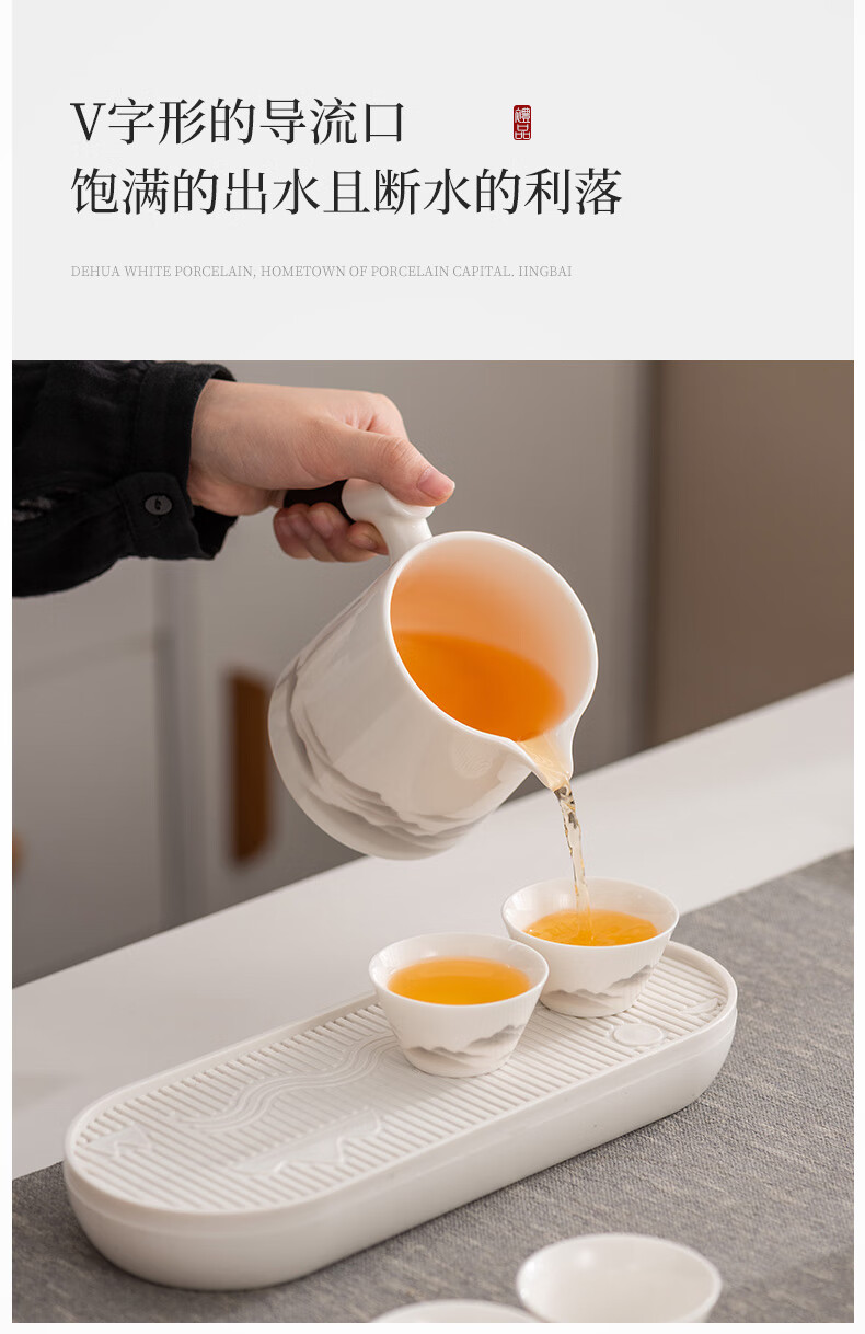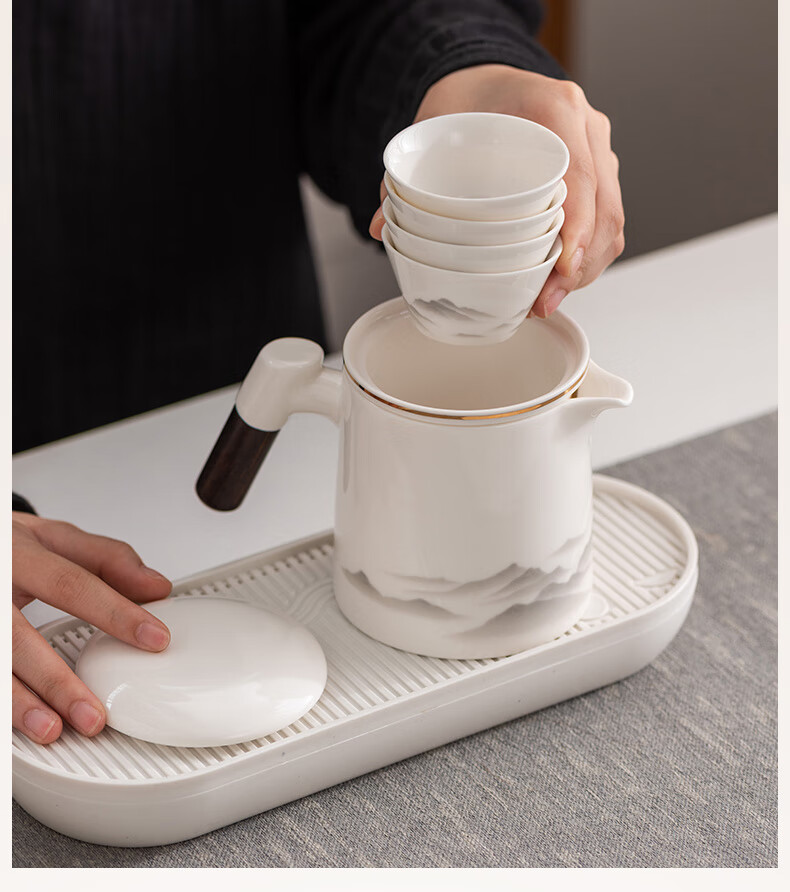 Travel tea set high-end and convenient one pot four cups mutton fat jade Kung Fu tea set complete gift box gift box ink eagle beak one pot four cups blue oval plate towel holder