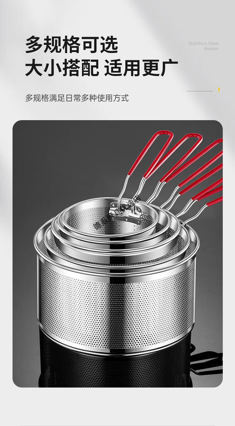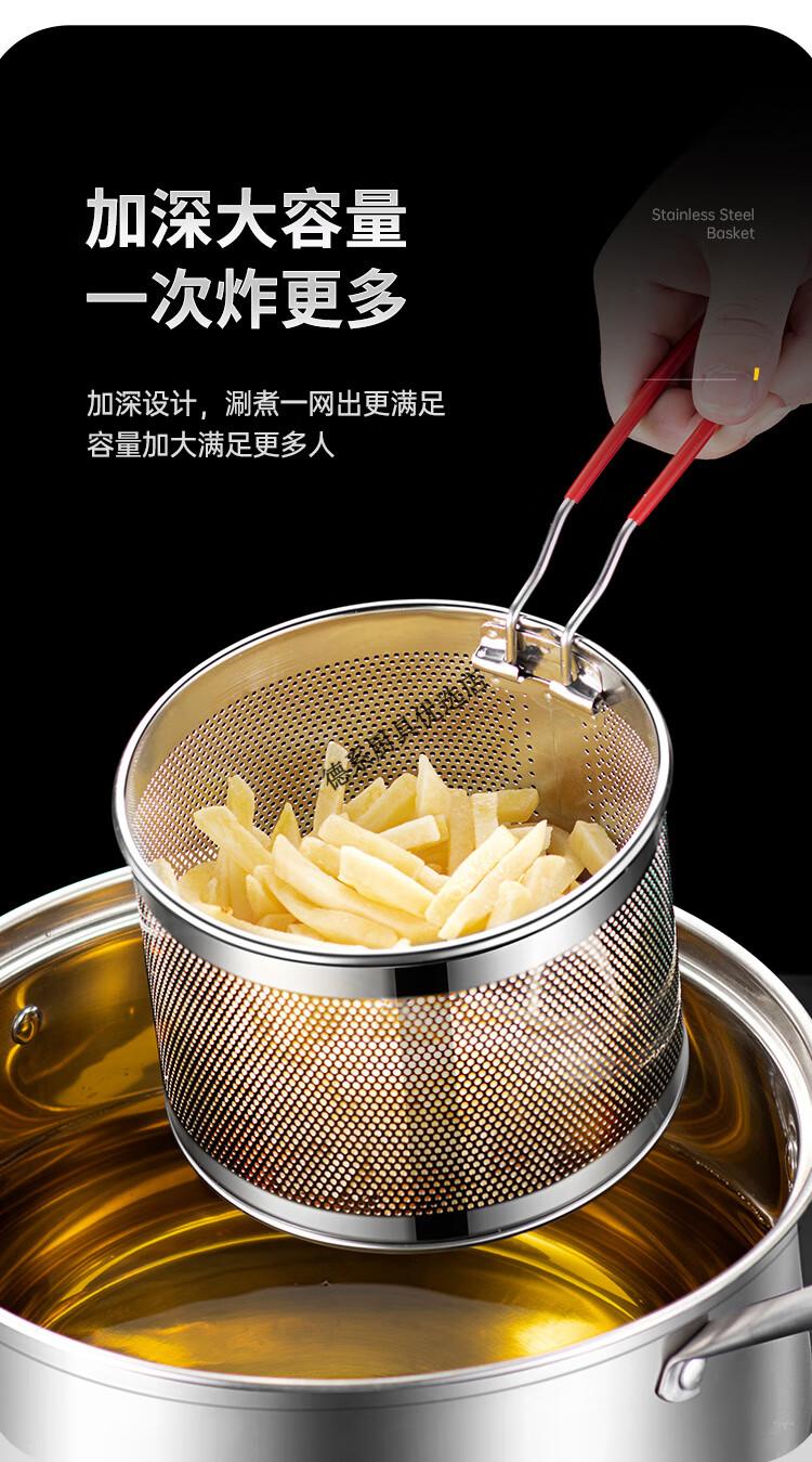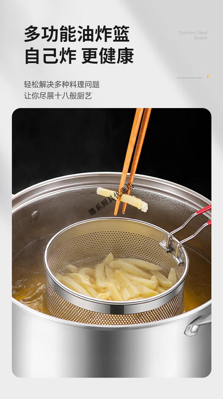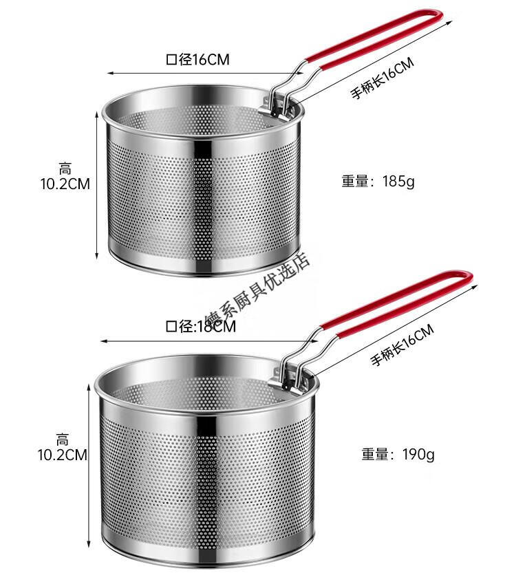 Zwilling German Quality Stainless Steel Frying Basket Frying Strainer Basket Cooking Noodles Slotted Ladle Frying Basket Frying Pan Oil Pan Malatang Silicone Handle Frying Basket 14cm 316L