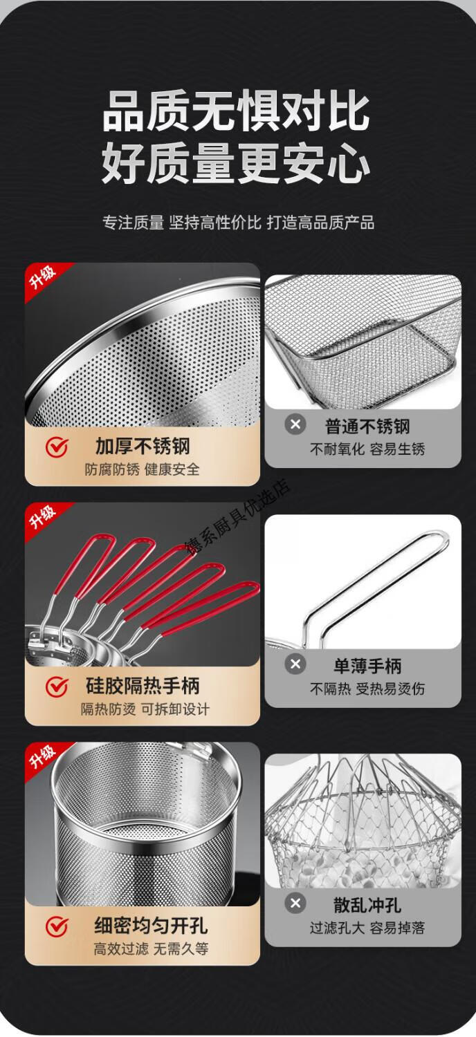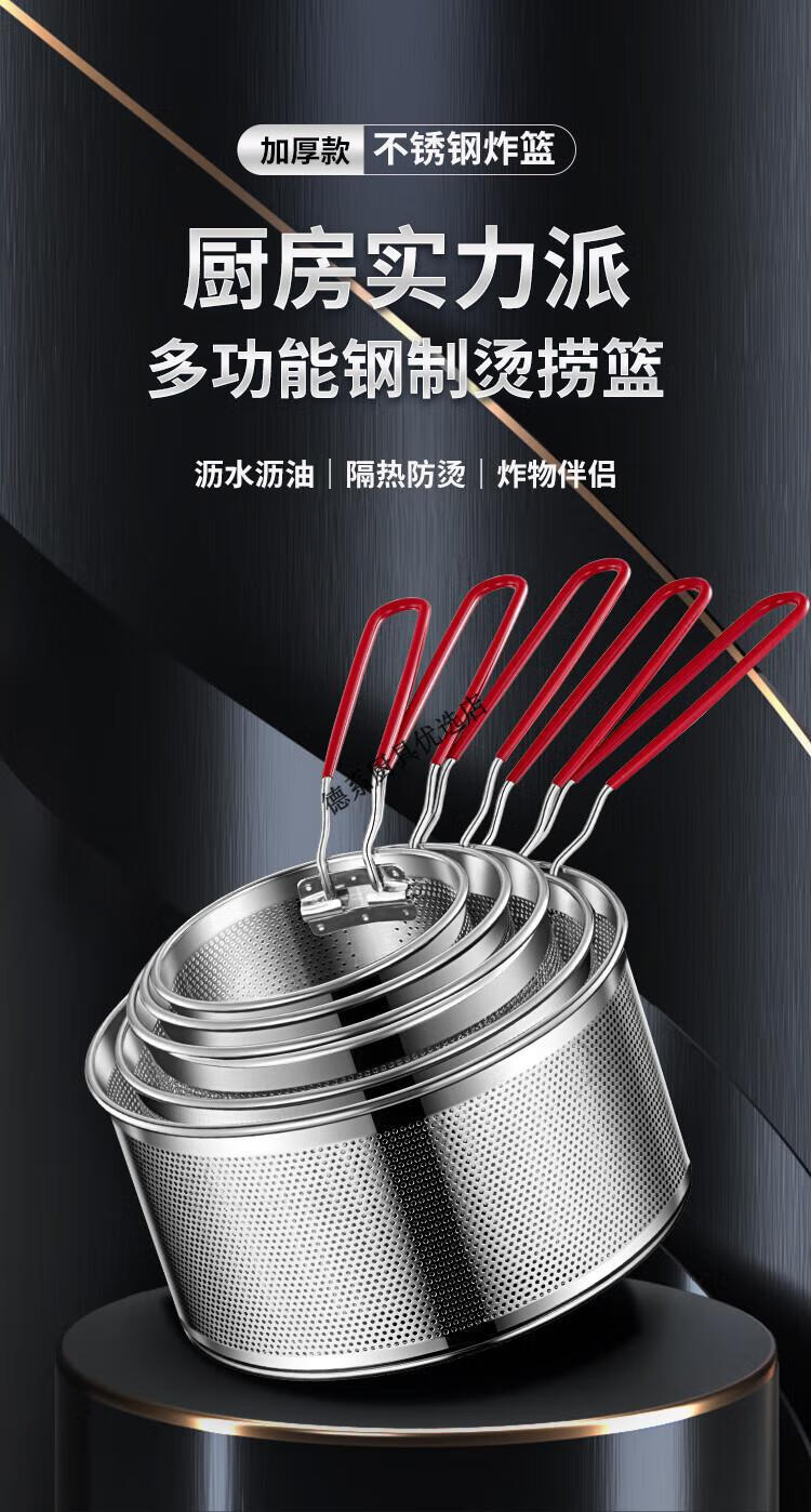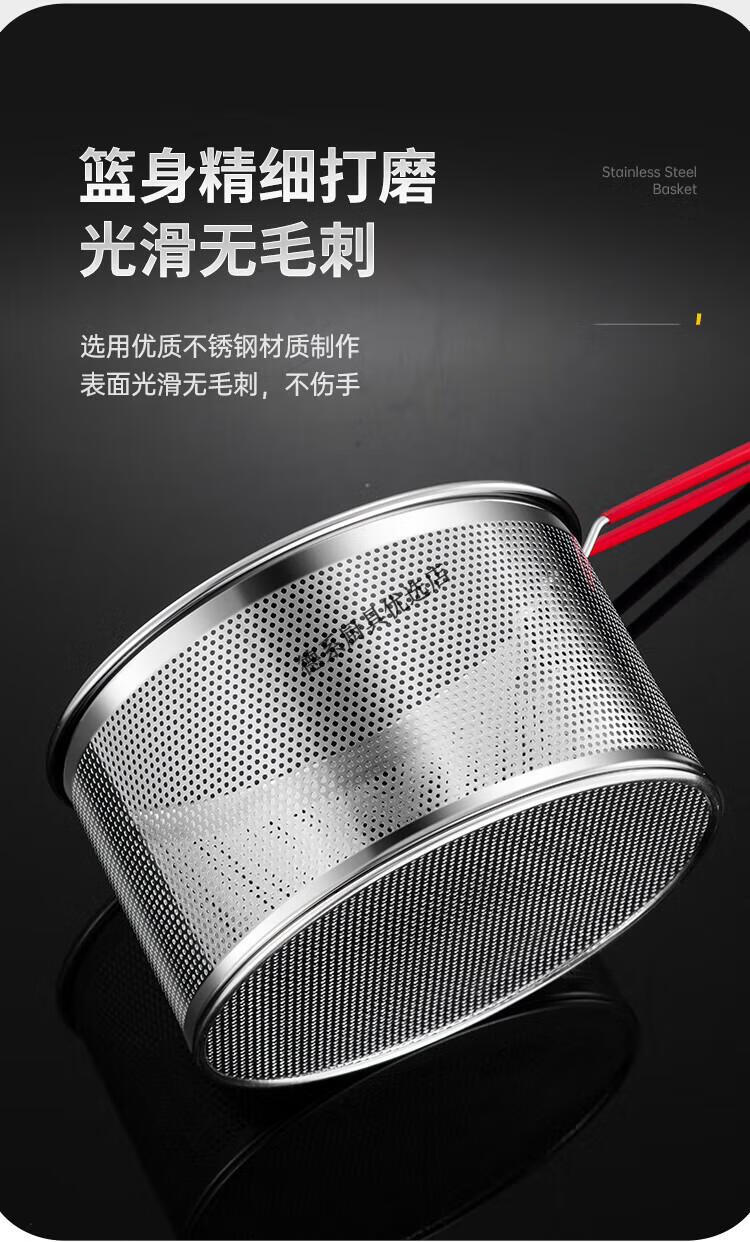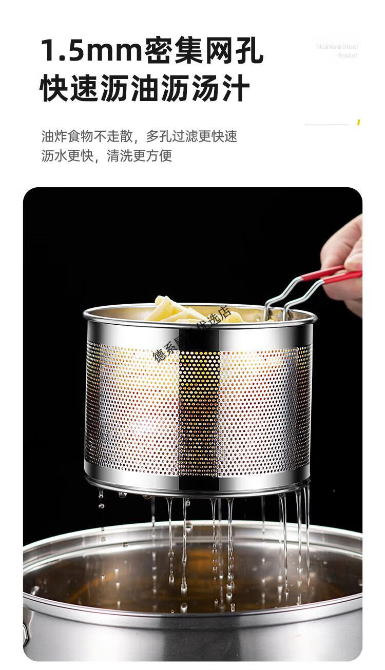 Zwilling German Quality Stainless Steel Frying Basket Frying Strainer Basket Cooking Noodles Slotted Ladle Frying Basket Frying Pan Oil Pan Malatang Silicone Handle Frying Basket 14cm 316L