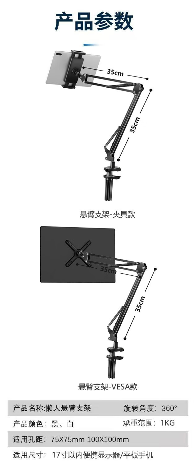 Umipa portable screen adjustable bracket inch mechanical cantilever horizontal and vertical lifting and rotating desktop office mobile phone tablet dedicated plastic vesa adapter plate bracket suitable for 17.3 inches or less black