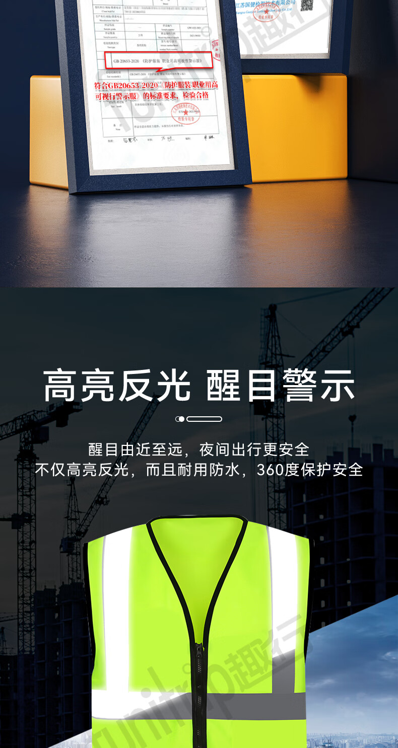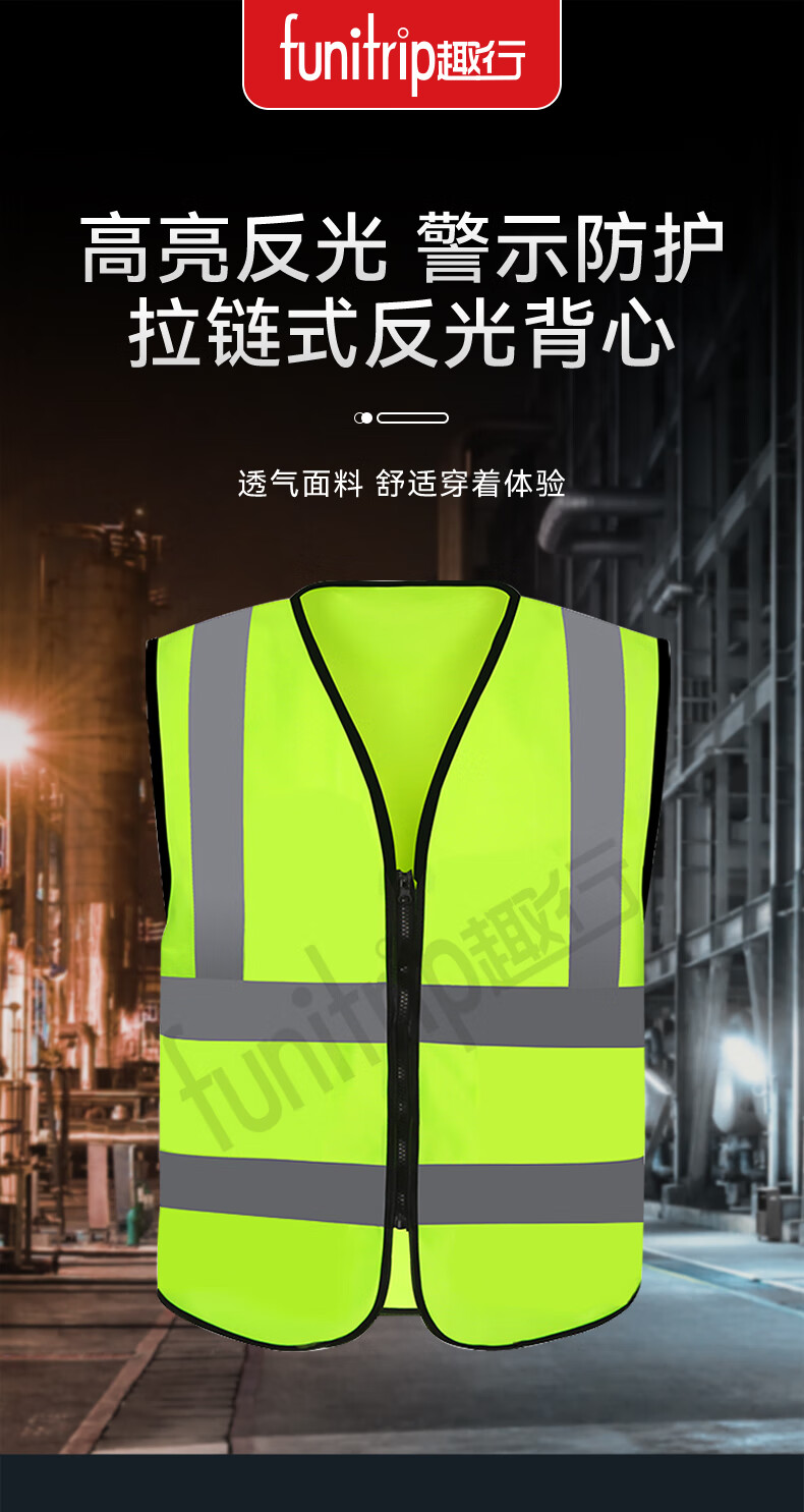 Quxing Reflective Vest, Labor Protection Reflective Clothing, Zipper Fluorescent Yellow and Green Vest, Safety Warning Duty Cycling Safety Clothing, Necessary for Vehicle Inspection, National Standard Zipper Reflective Clothing