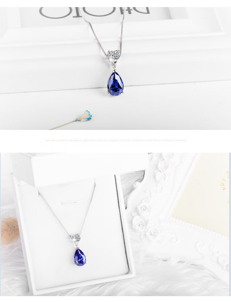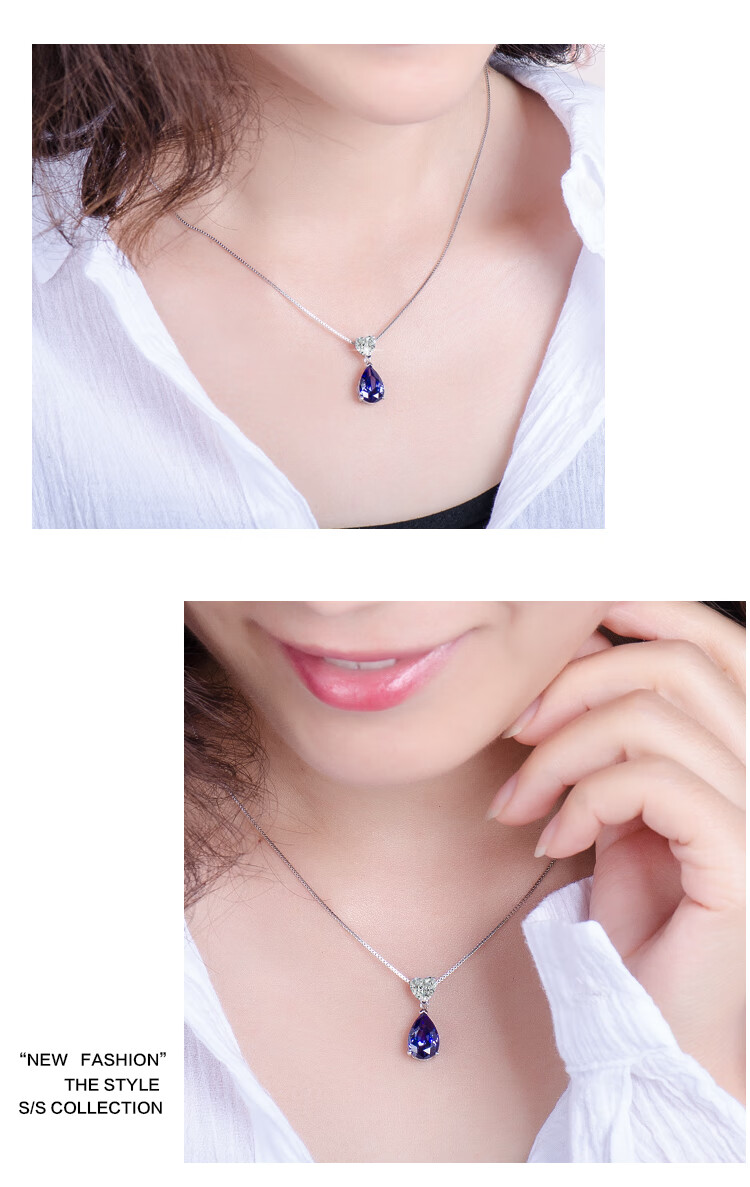 Fat Donglai quality sapphire necklace 925 silver heart-shaped water drop gemstone clavicle chain women's Tanzanite pendant 925 silver platinum-plated pendant ++925 silver necklace
