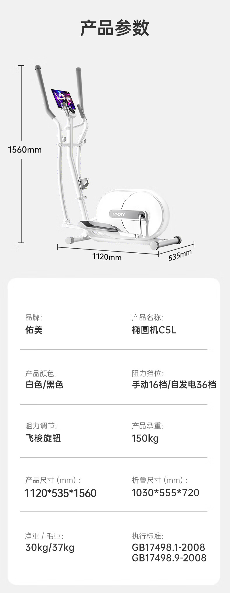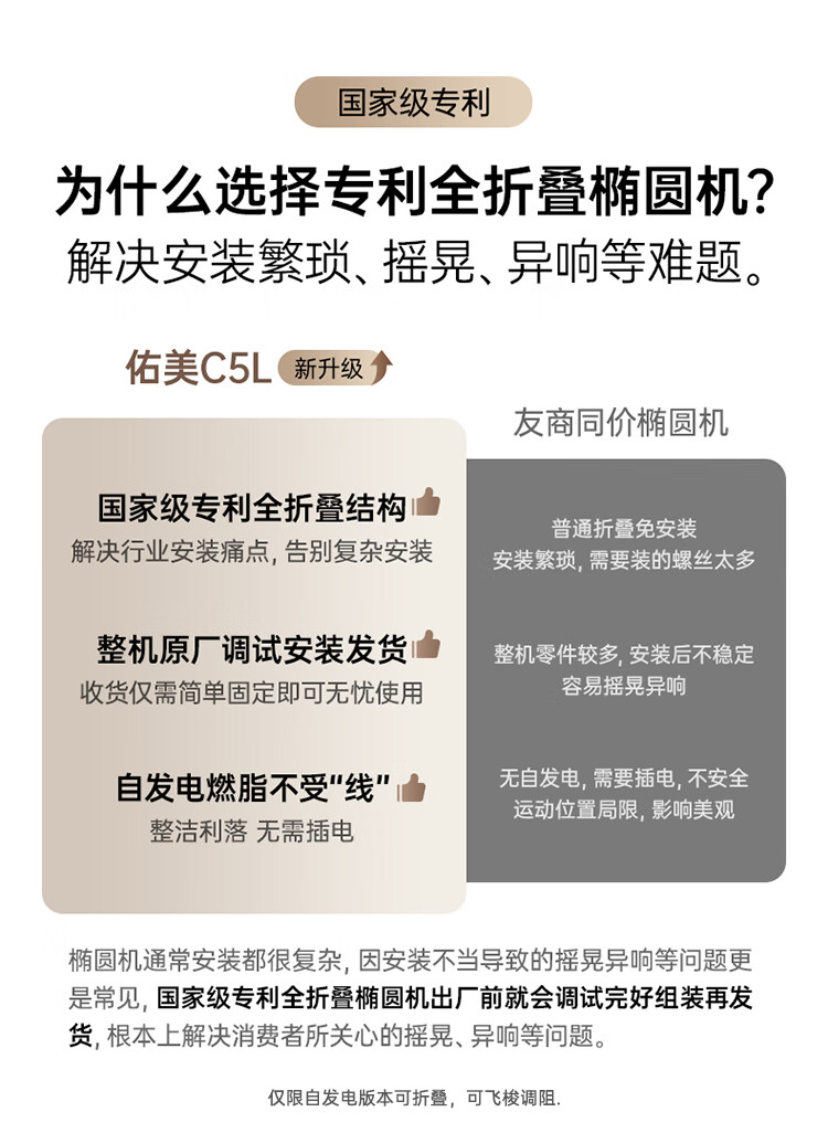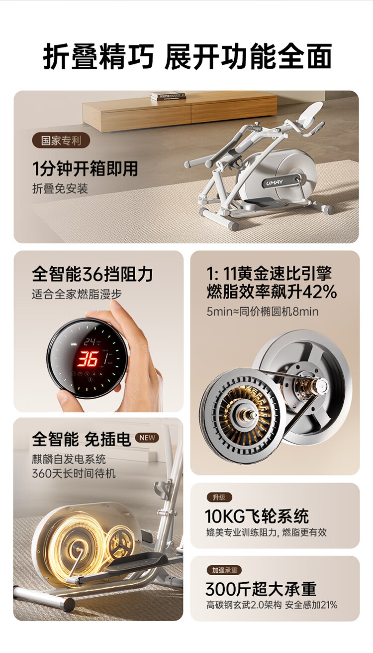 YOU MEI Professional Elliptical Machine Home Recommended Muscle Relaxation Smart Elliptical Stepper Fitness Equipment Shuttle Version for Men and Women Newly upgraded C5L-16-level resistance adjustment - installation included