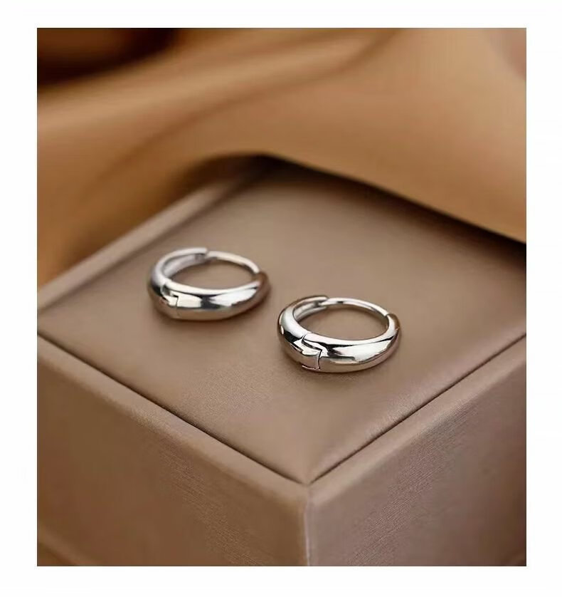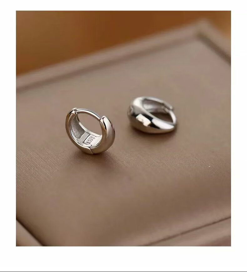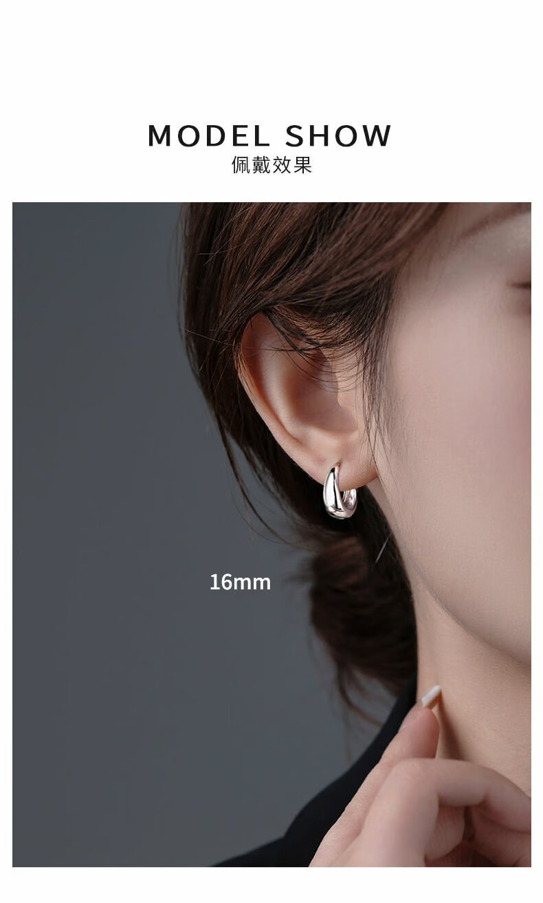 Fat Donglai's same German quality 9999 sterling silver earrings 999 silver ear piercing 2025 new trendy ear buckle women's ears 16mm silver pair of earrings + 2.56 grams