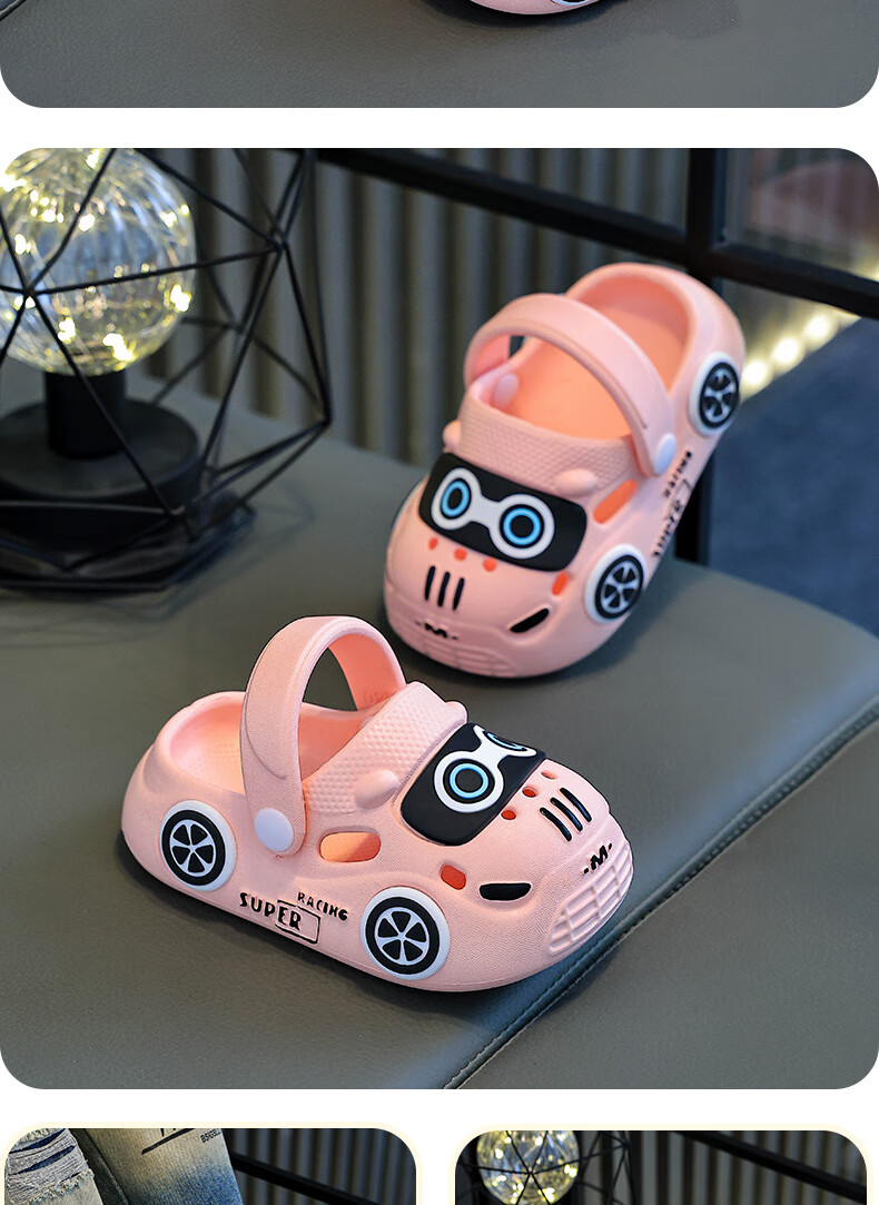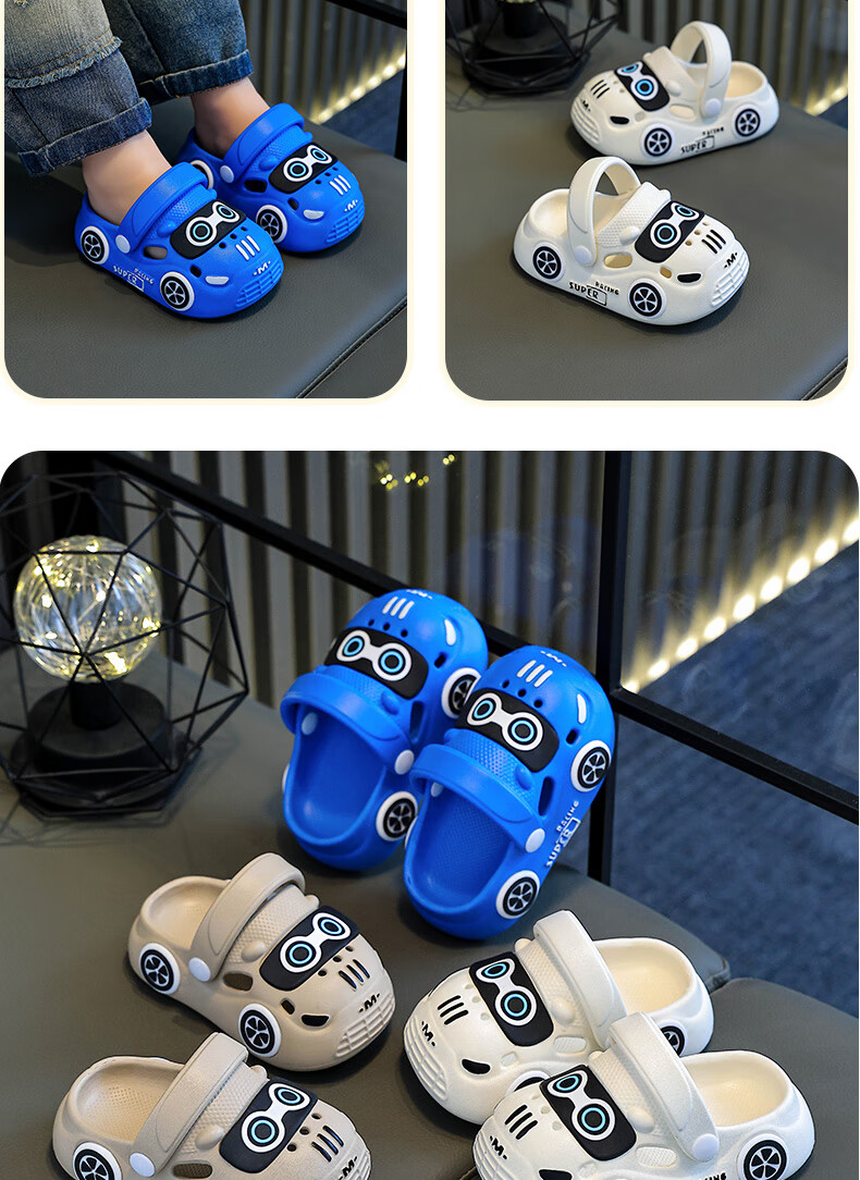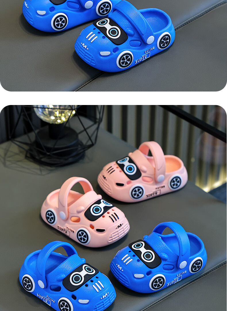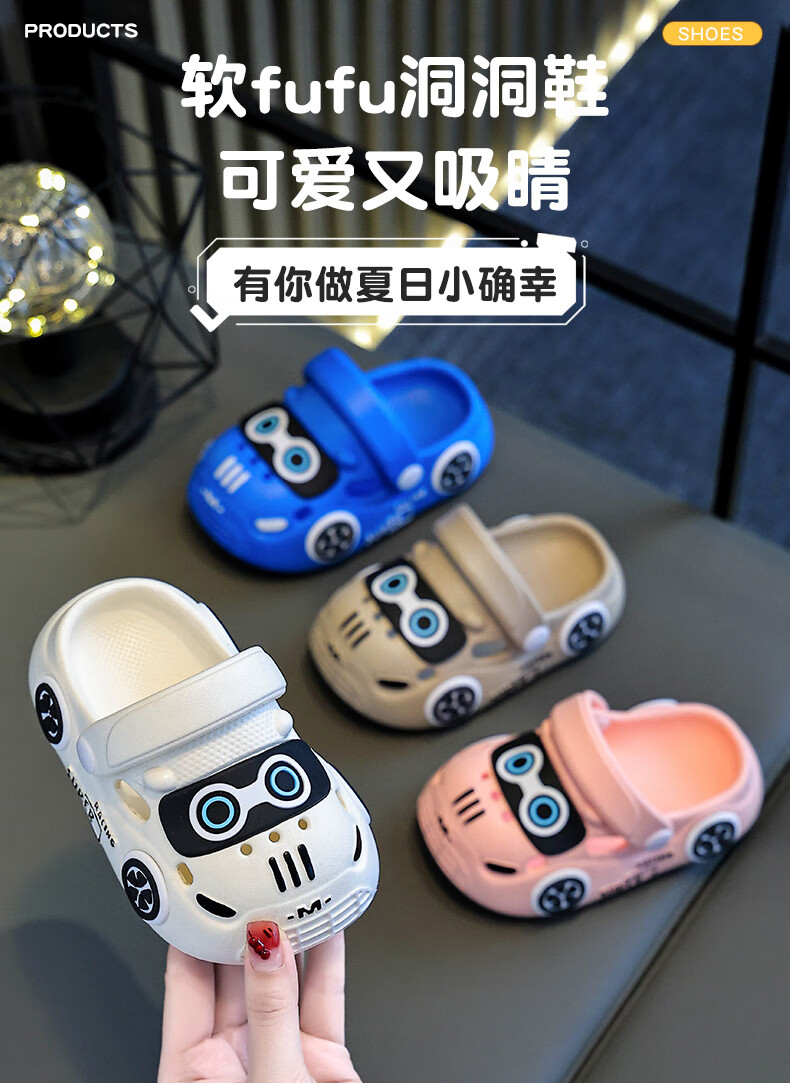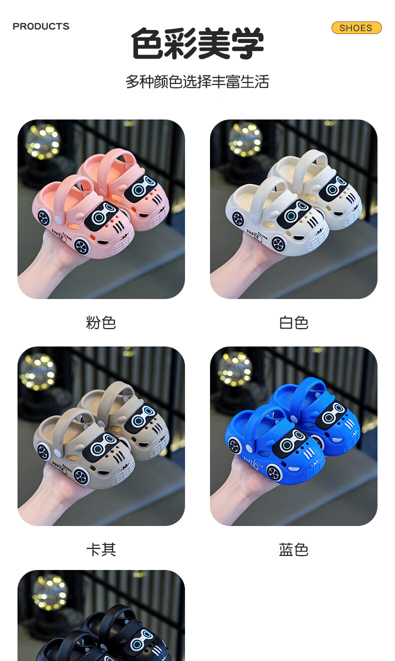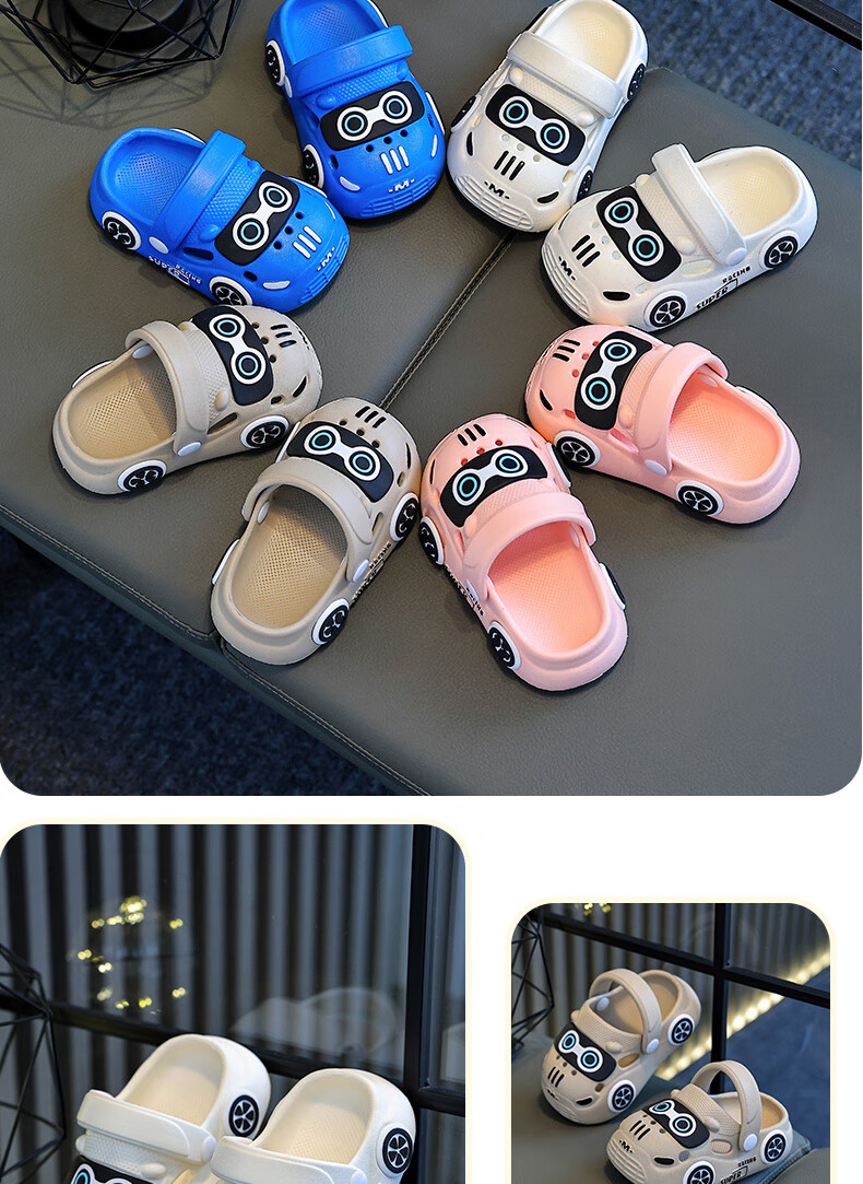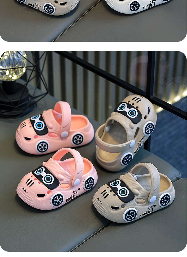 Children's Baotou sandals summer cartoon car indoor and outdoor non-slip soft bottom casual hole slippers for boys and girls Khaki 24 160MM
