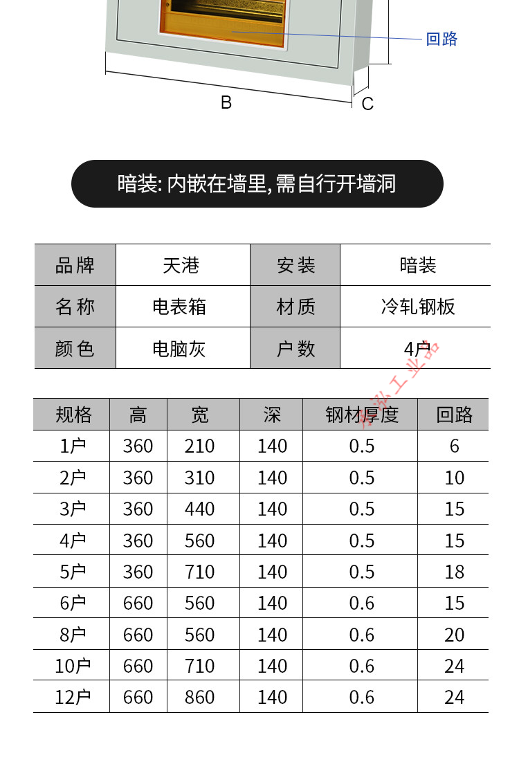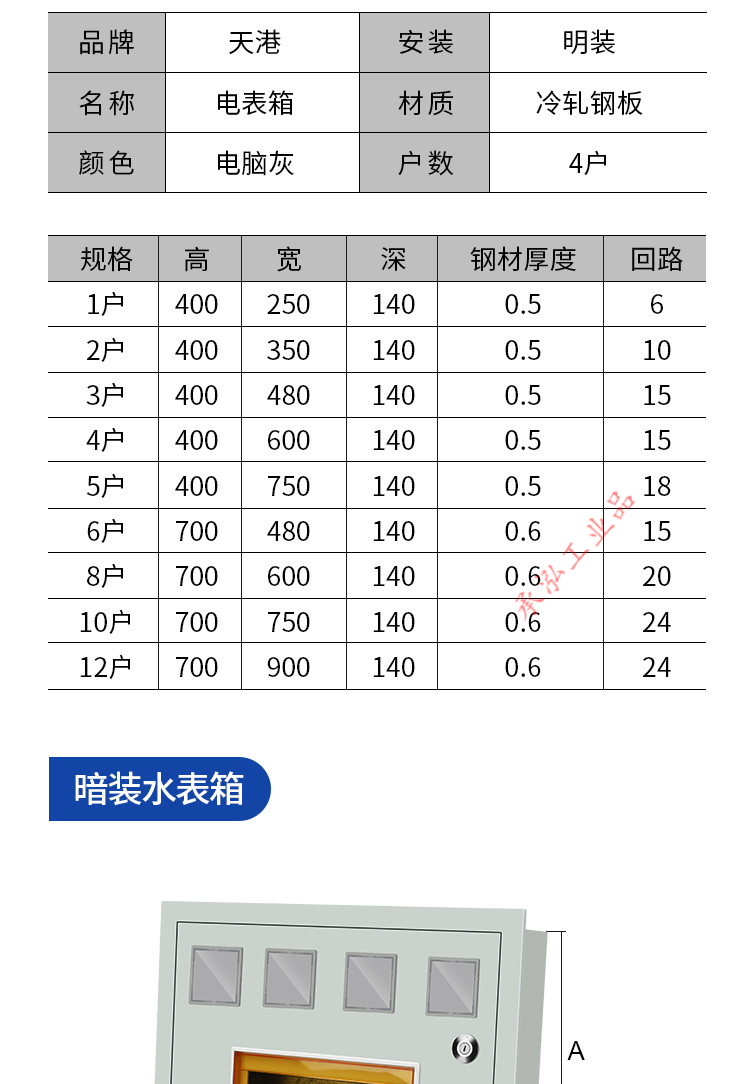 PZ40 single-phase meter box 4-household distribution box DZ47 guide rail installation household surface-mounted single C45 wall-mounted four-household 4-household surface-mounted height 400*width 600*depth 140