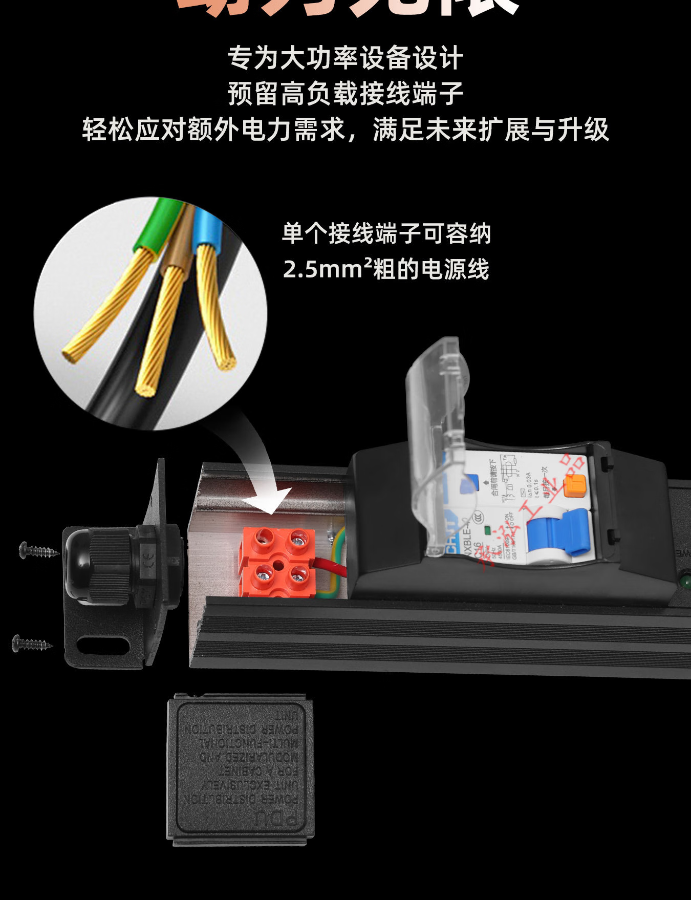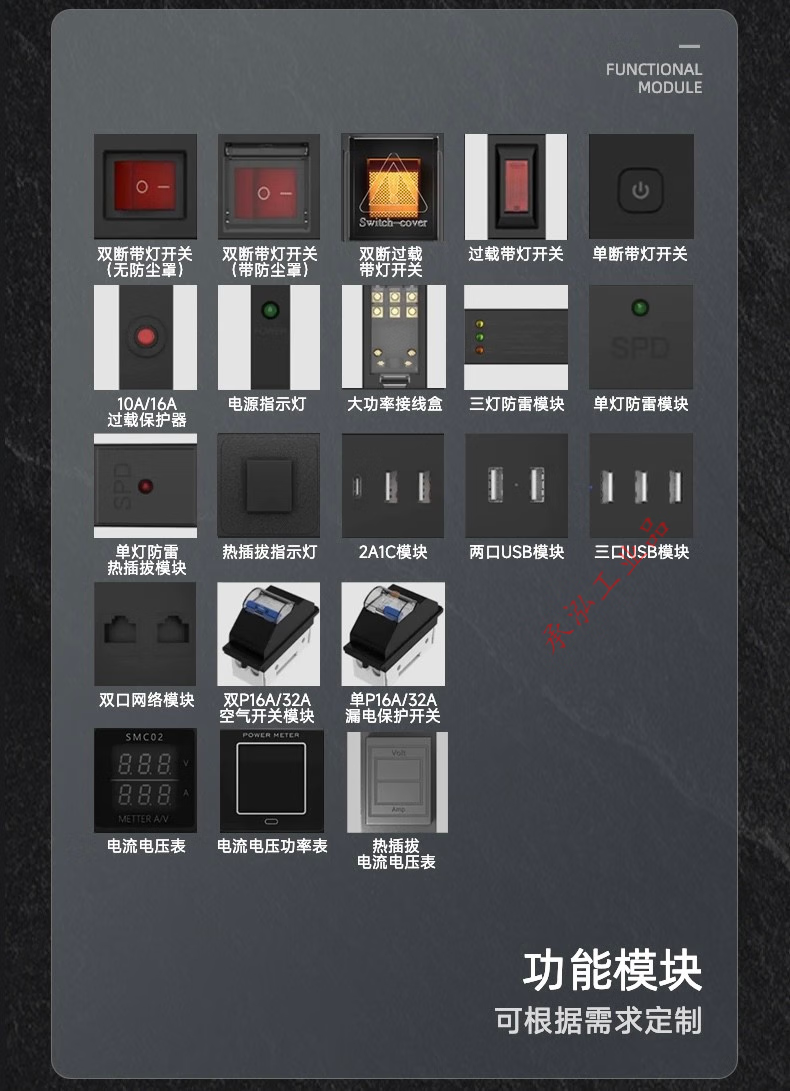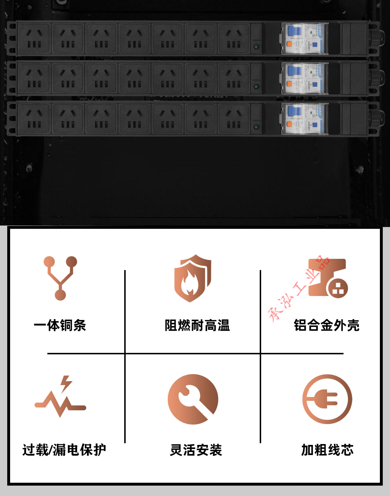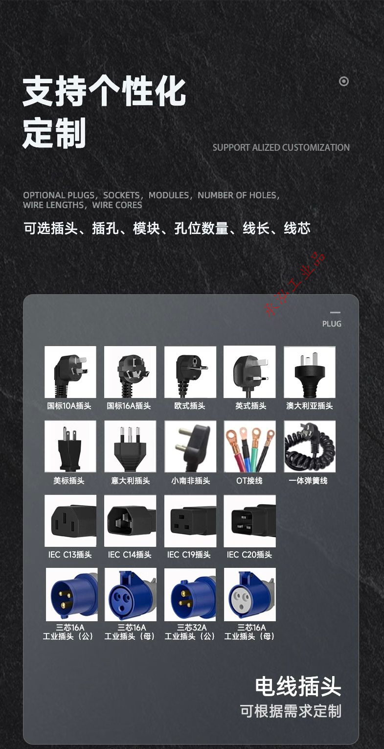PDU cabinet power supply industrial row socket 10A16A high power 4000W leakage protection overload air conditioning wireless terminal board 4 positions with leakage protection wireless 4000W built-in terminal