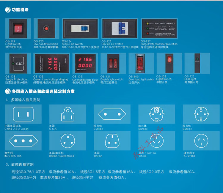 PDU power supply industrial row socket 10A16A4000W leakage protection space switch 3458-bit national standard five-hole wiring board wireless 2-bit 10A with space switch 2500W wireless built-in wiring