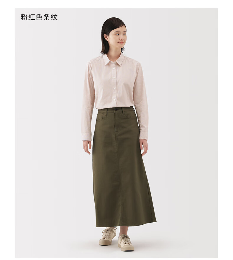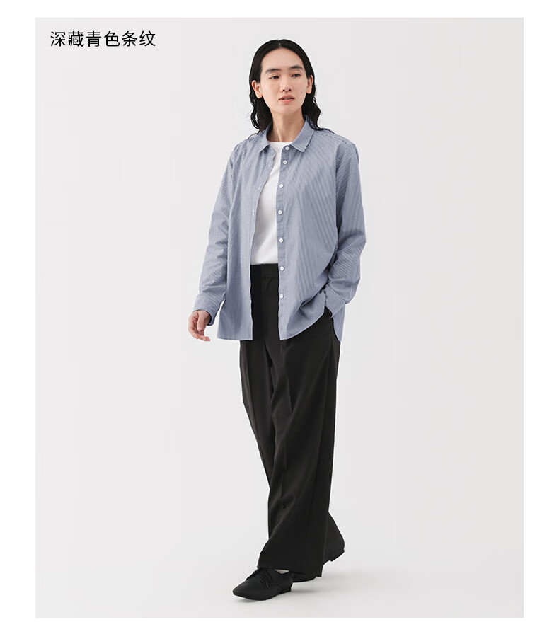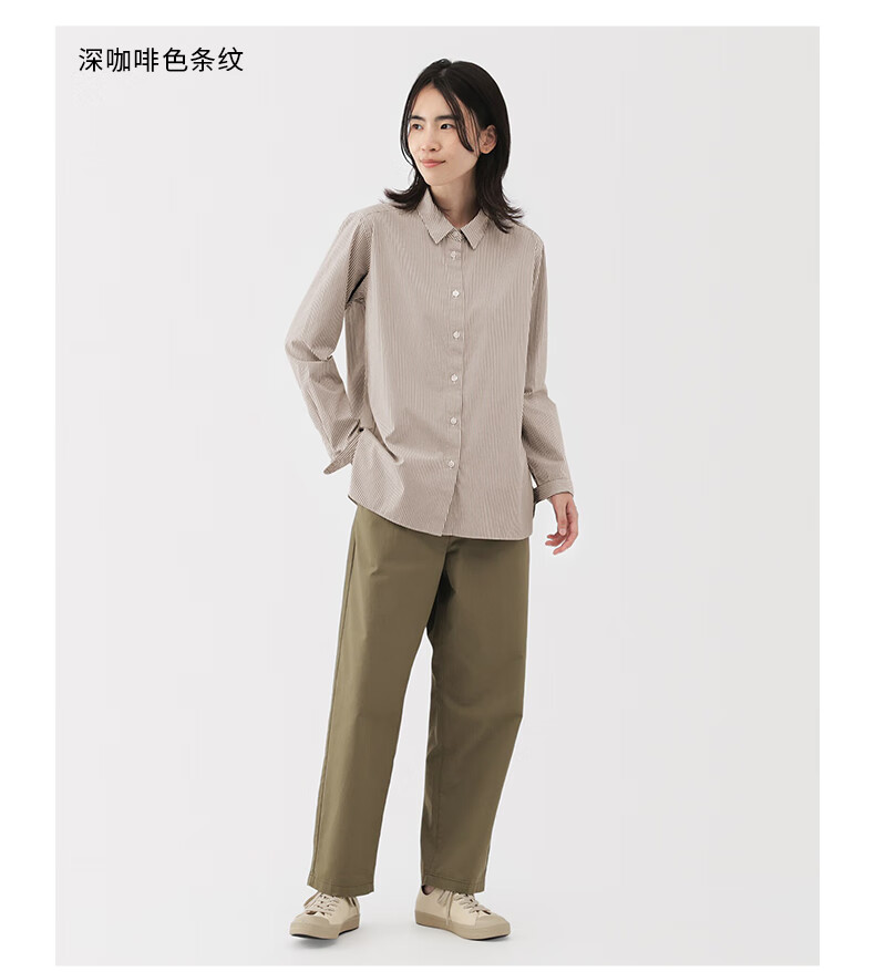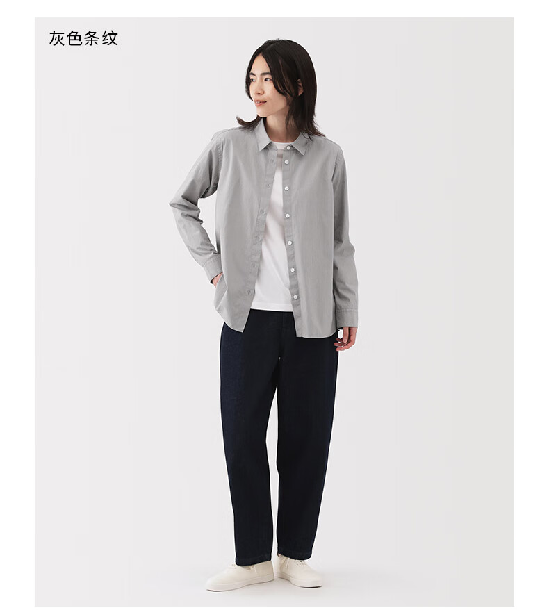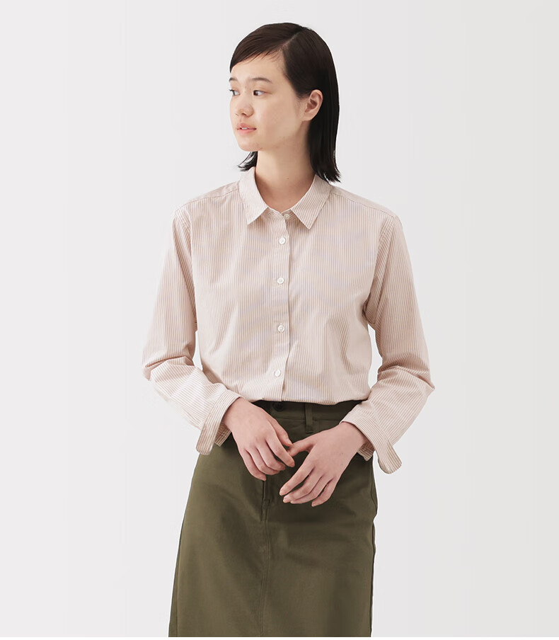 MUJI Women's Washed Plain Shirt Collar Long Sleeve Shirt Undershirt Women's Winter Outer Thin Jacket Pink Stripe M (160/84A)