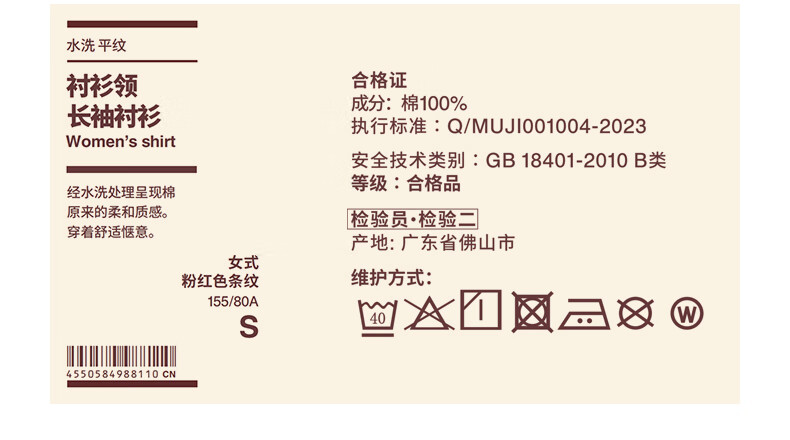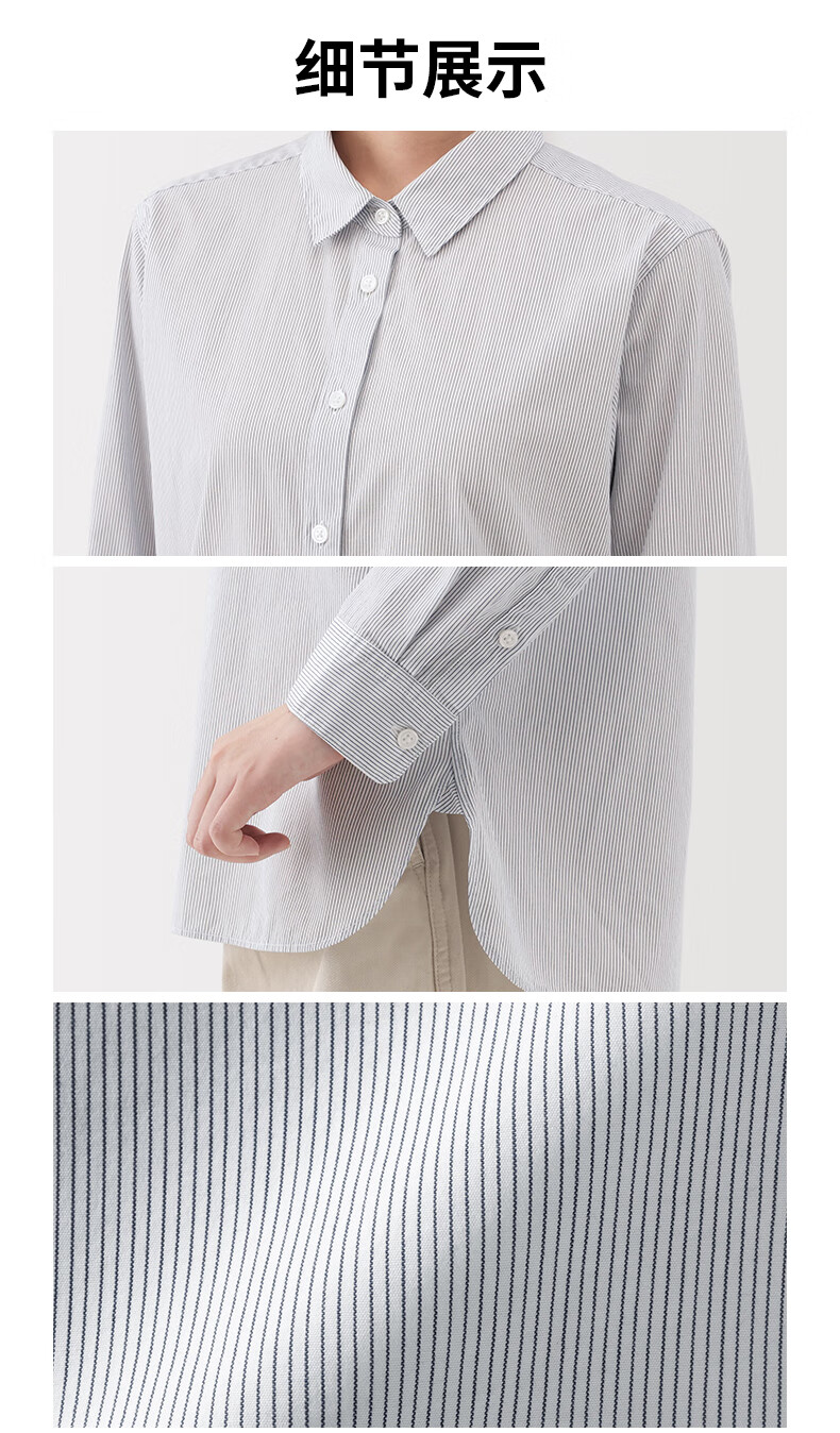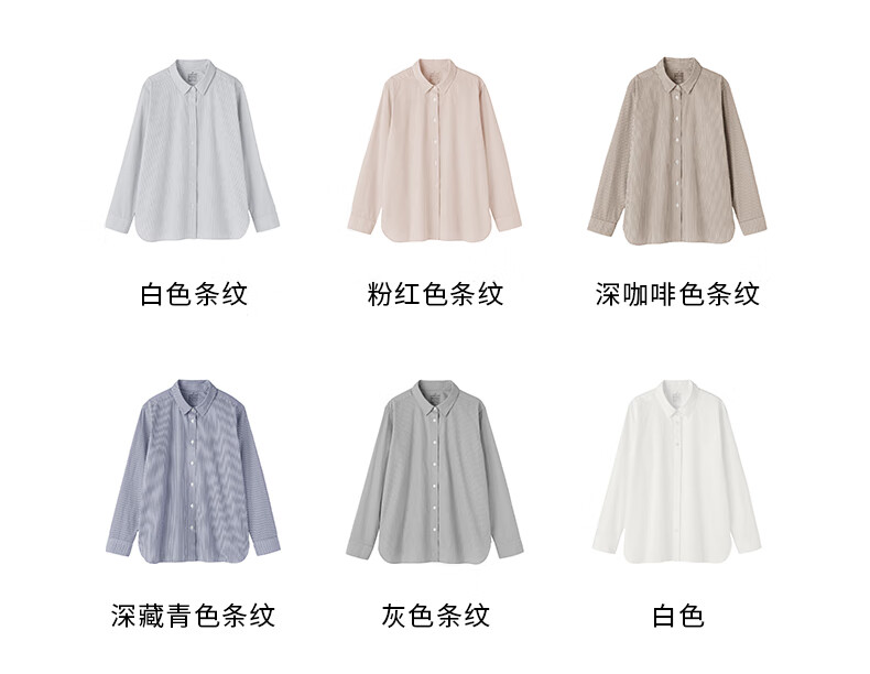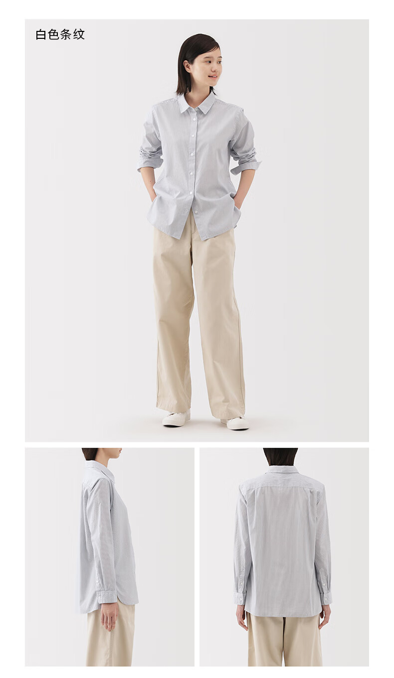 MUJI Women's Washed Plain Shirt Collar Long Sleeve Shirt Undershirt Women's Winter Outer Thin Jacket Pink Stripe M (160/84A)