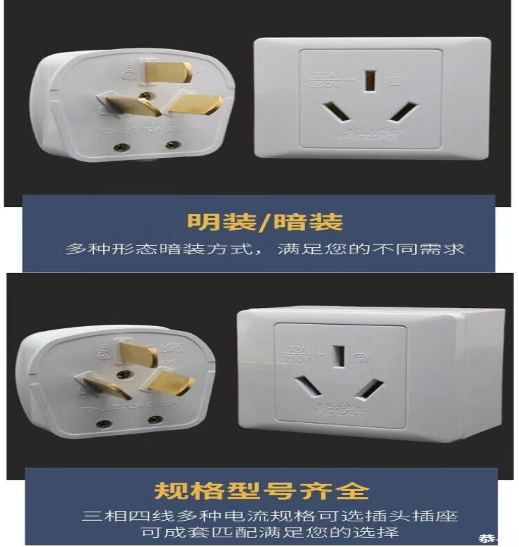 25a socket 32A socket high power 8000W plug new energy vehicle water heater 86 type charging pile air conditioner three holes free 32A concealed 86 type socket can only be matched with 32A plug