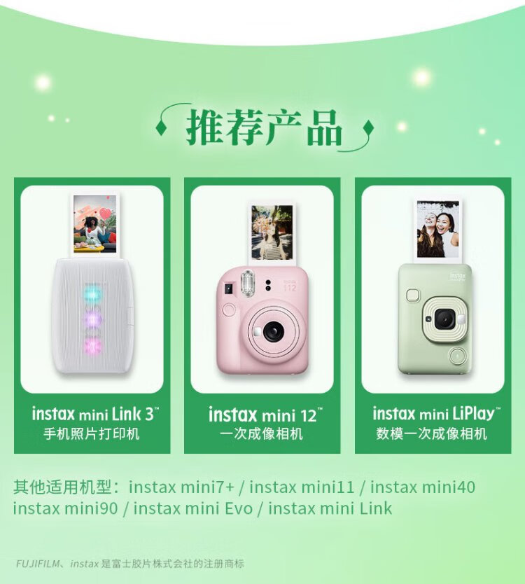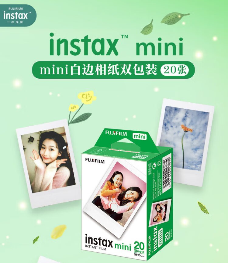 Fuji (FUJIFILM) instax mini universal photo paper photos are suitable for mini7+/7s/7c/8/9/11/12/40/90/EVO/liplay printers and other Polaroid B 20 photos + photo album * 2 + frame stickers * 2 + refrigerator magnet + storage box