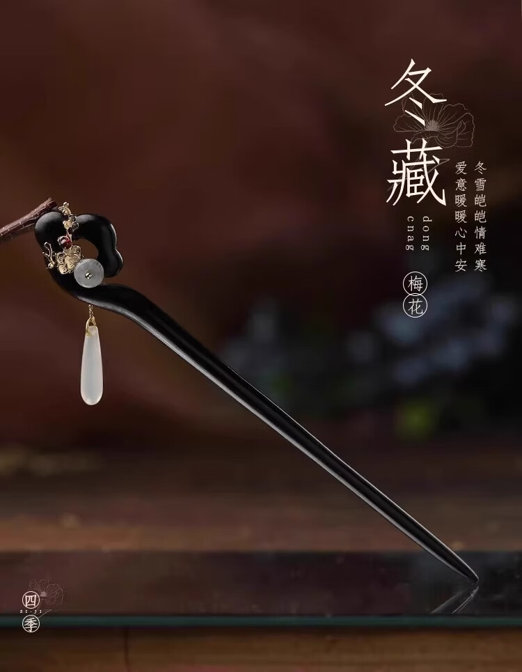 Zhou Dajin CHOW TAI KING genuine ebony hairpins for women, ancient style hair accessories, hairpins, hairpins, Valentine's Day gifts for girlfriends, birthday gifts, four-season hairpins, next-day delivery by air