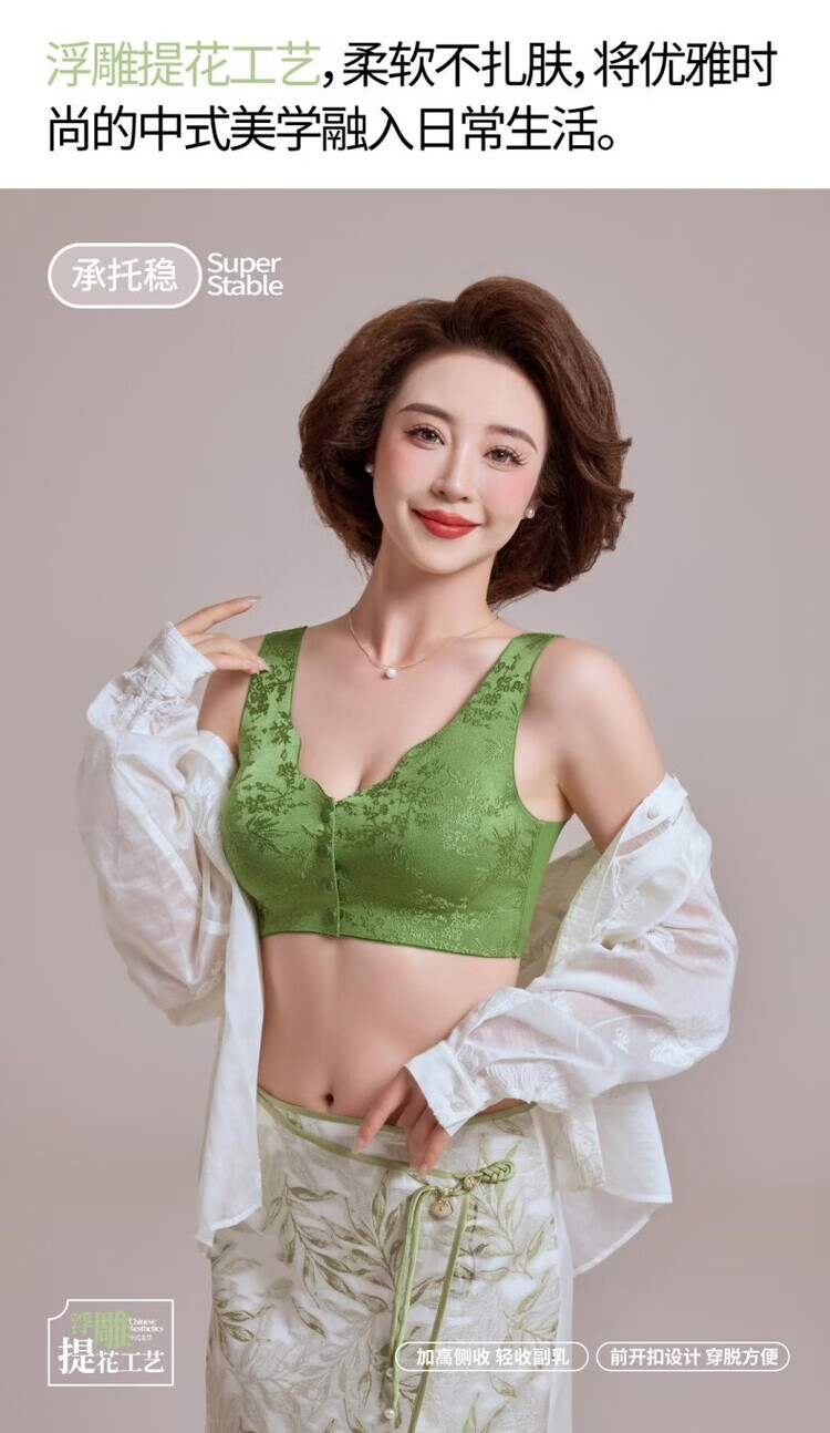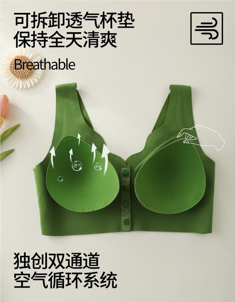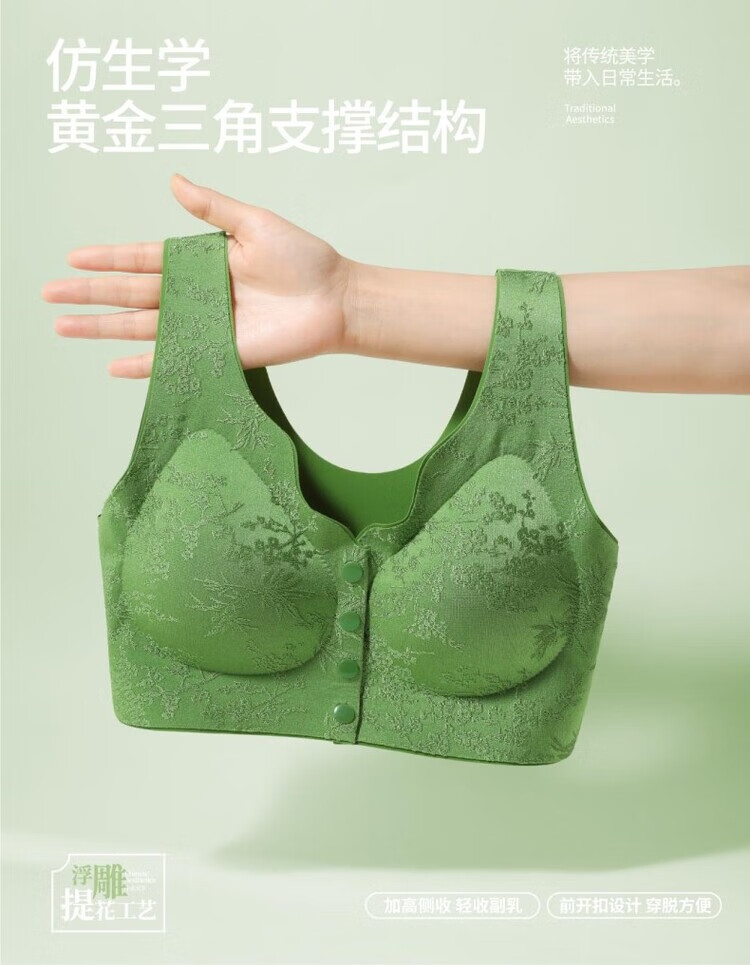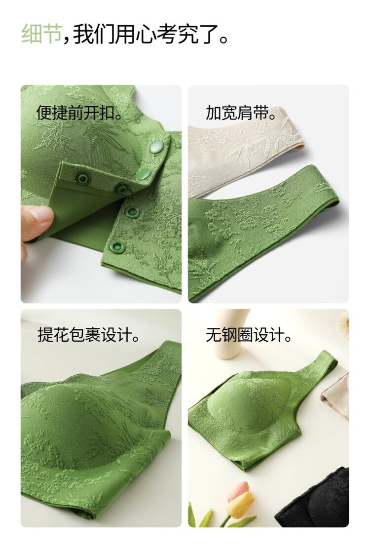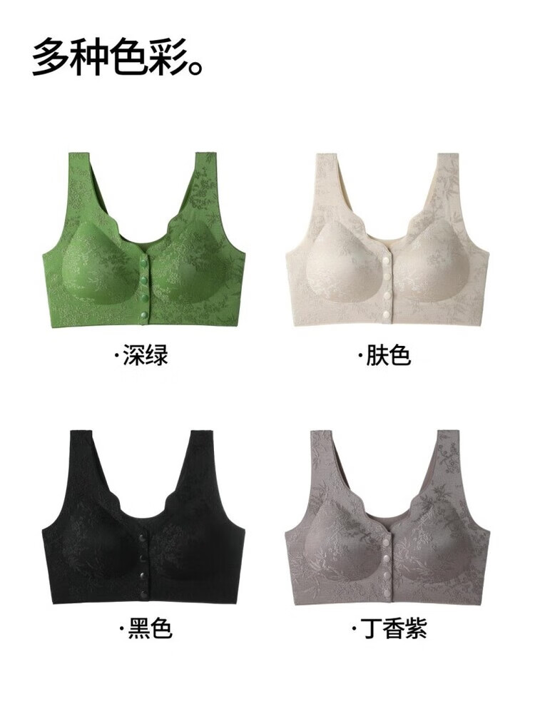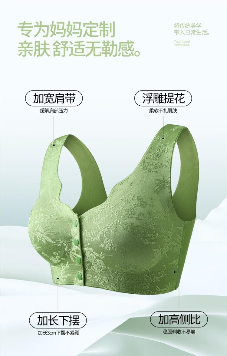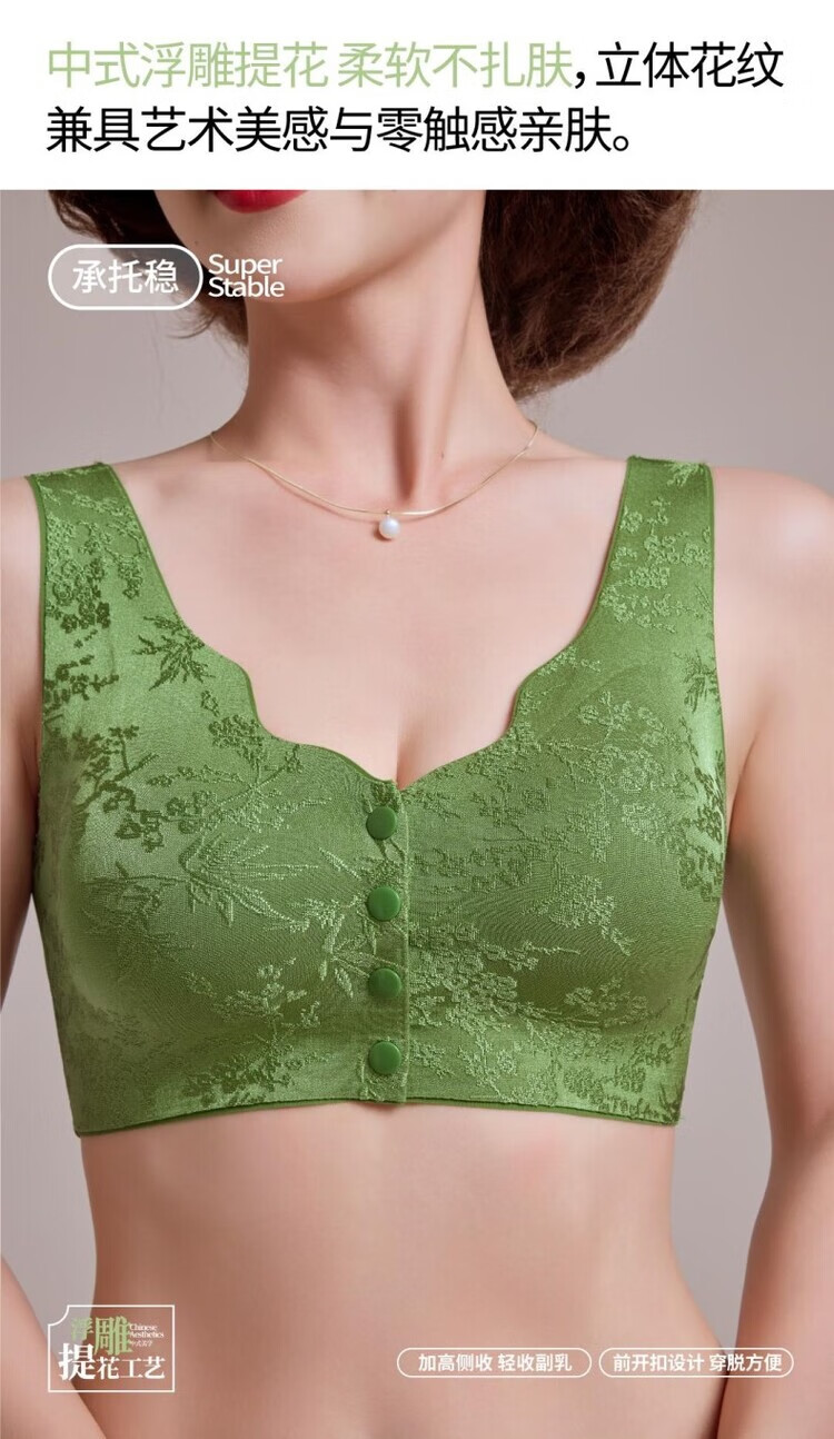 Huanli Queen's Preferred Underwear Front Open Button Adjustable Bra Comfortable Women's Push-up Wireless Embossed Jacquard Bra Two-piece Pack Dark Green + Dark Green 4XL (181-200Jin Jin equals 0.5kg)