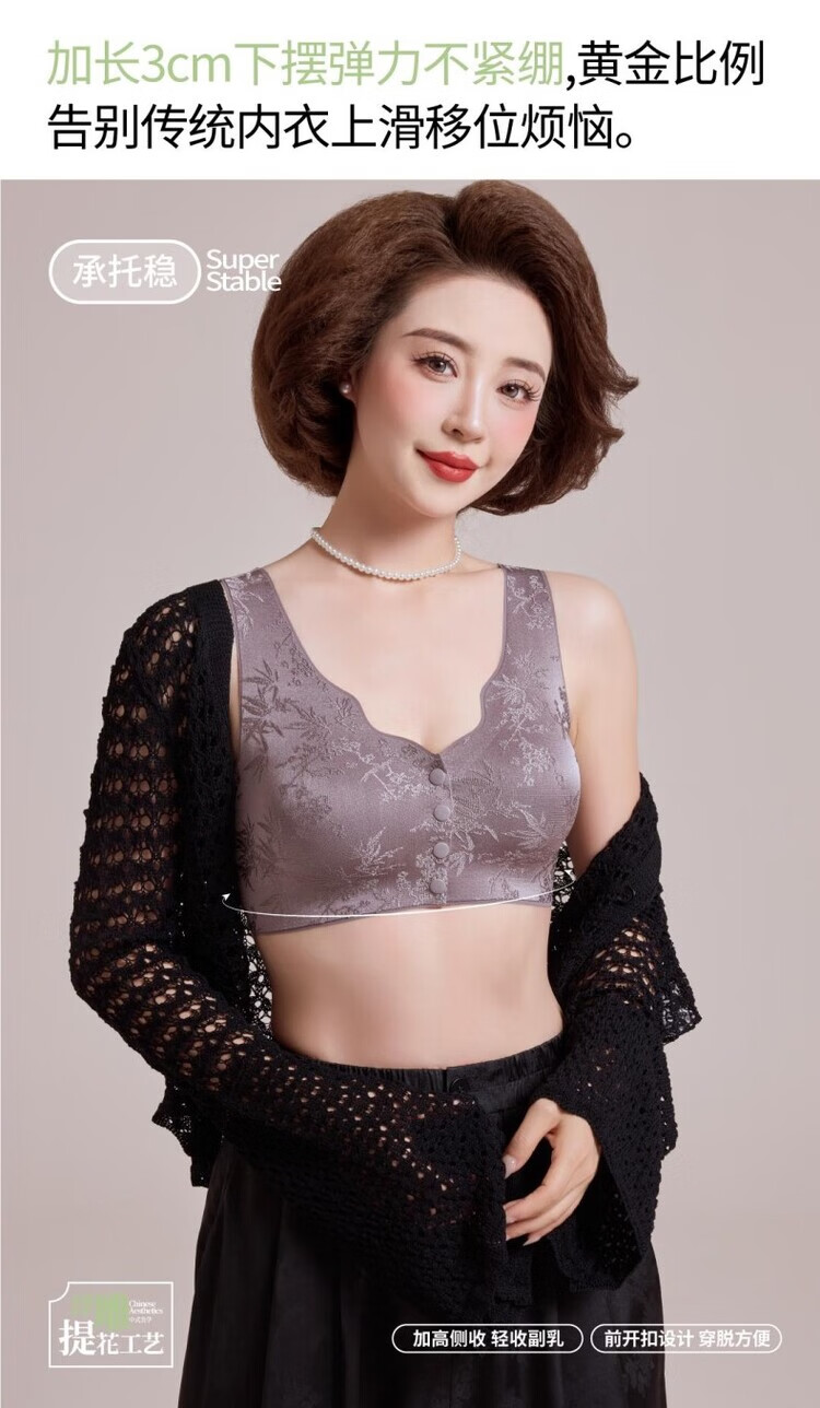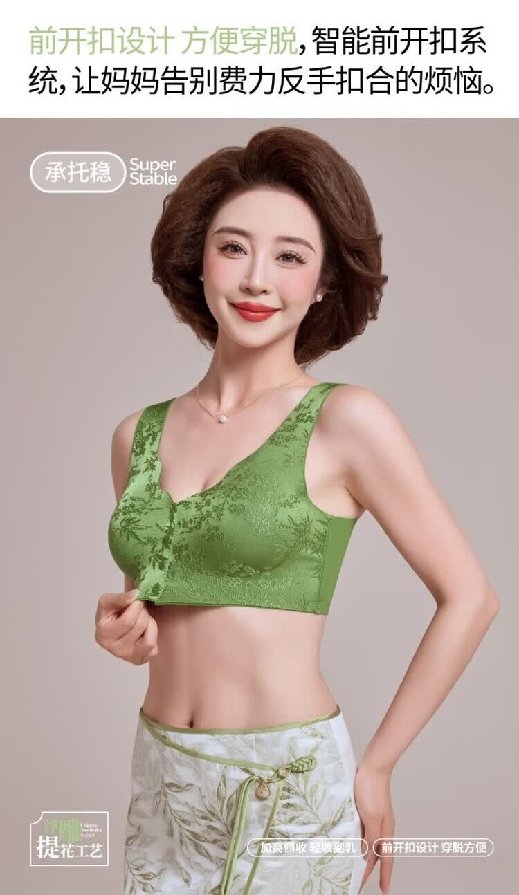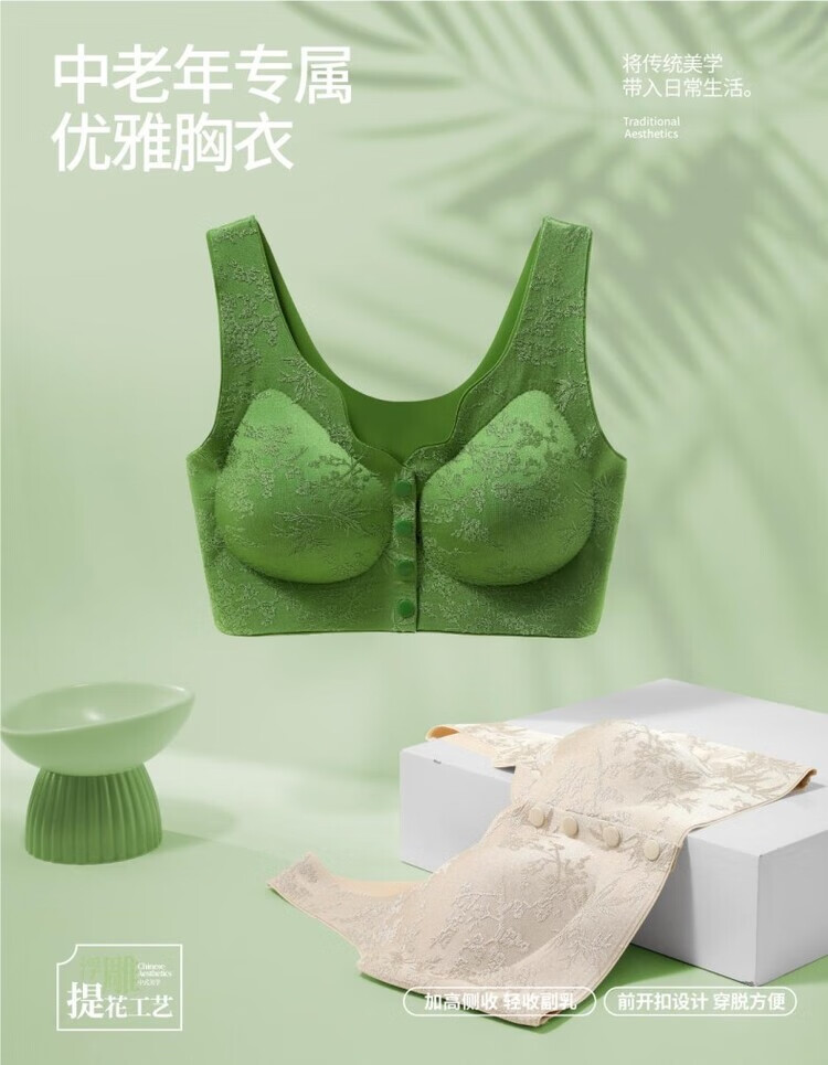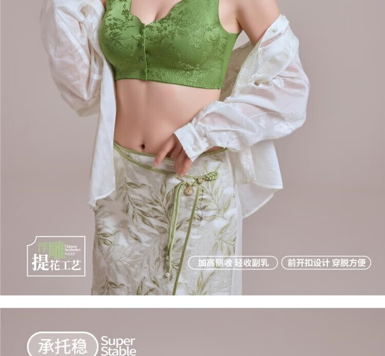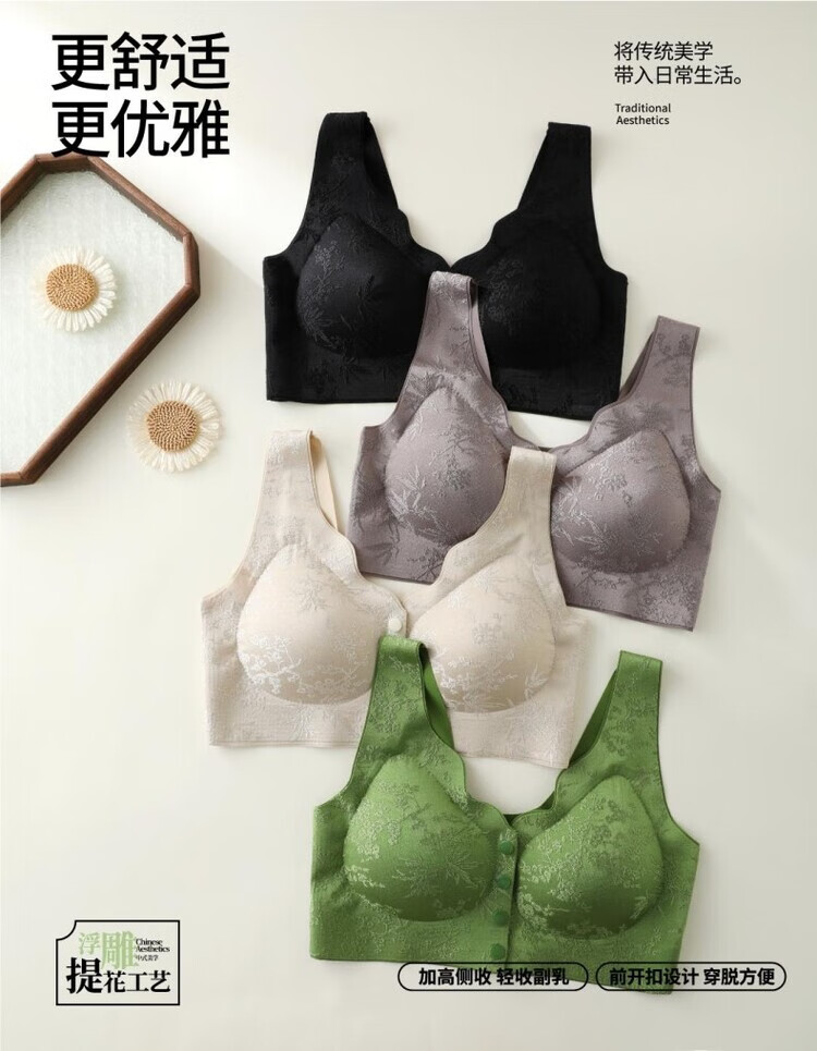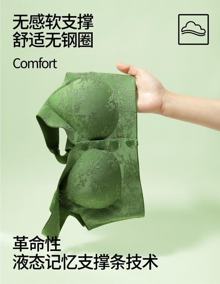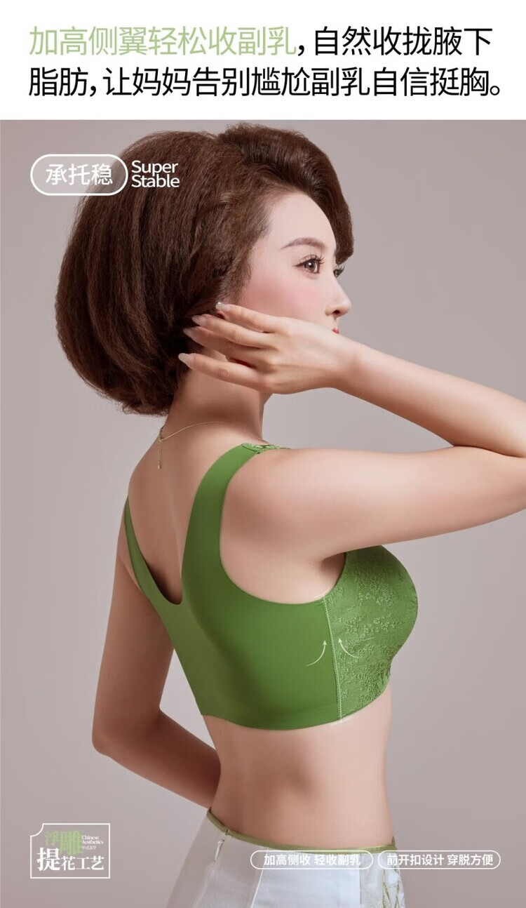 Huanli Queen's Preferred Underwear Front Open Button Adjustable Bra Comfortable Women's Push-up Wireless Embossed Jacquard Bra Two-piece Pack Dark Green + Dark Green 4XL (181-200Jin Jin equals 0.5kg)