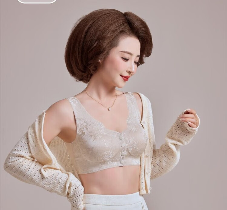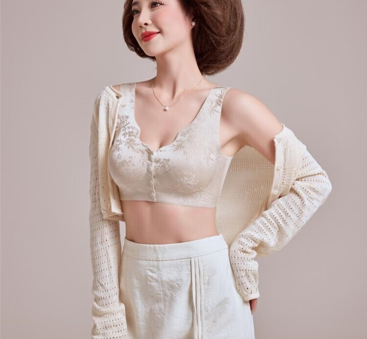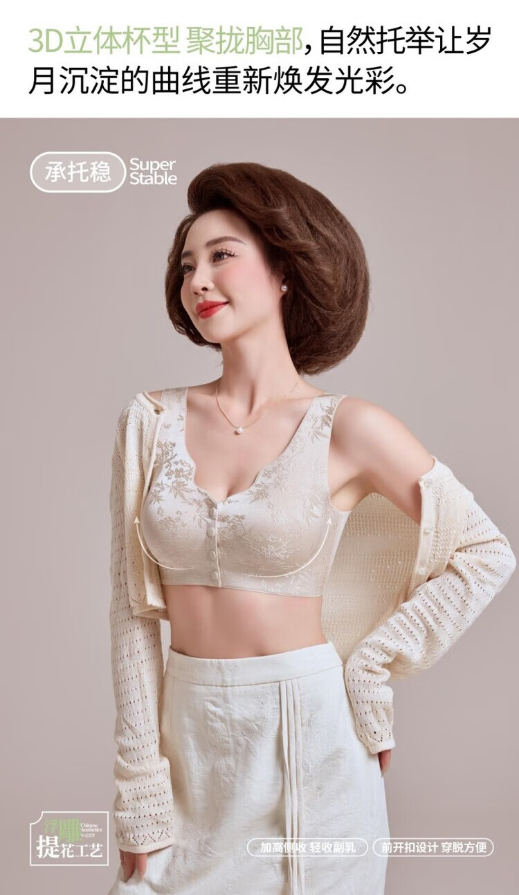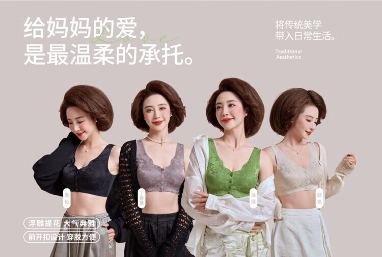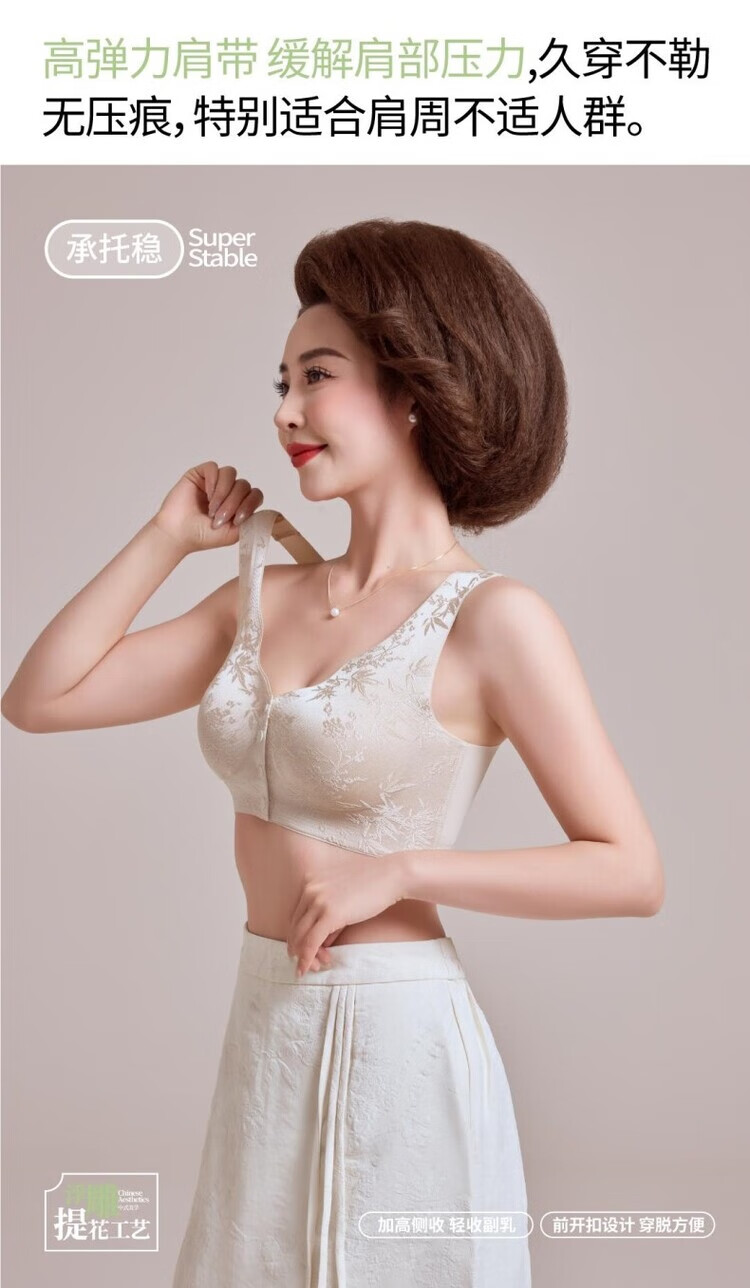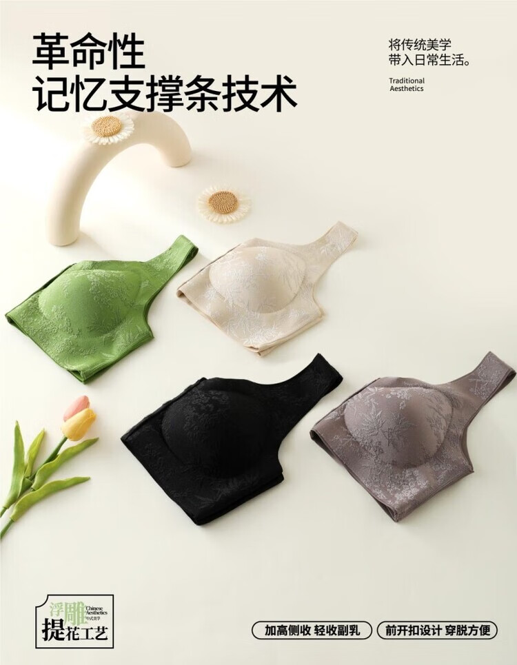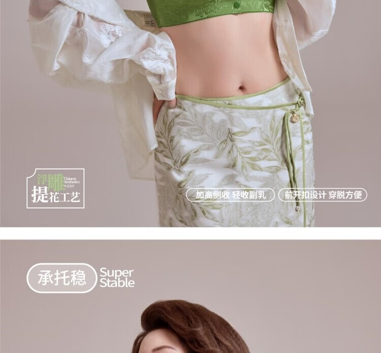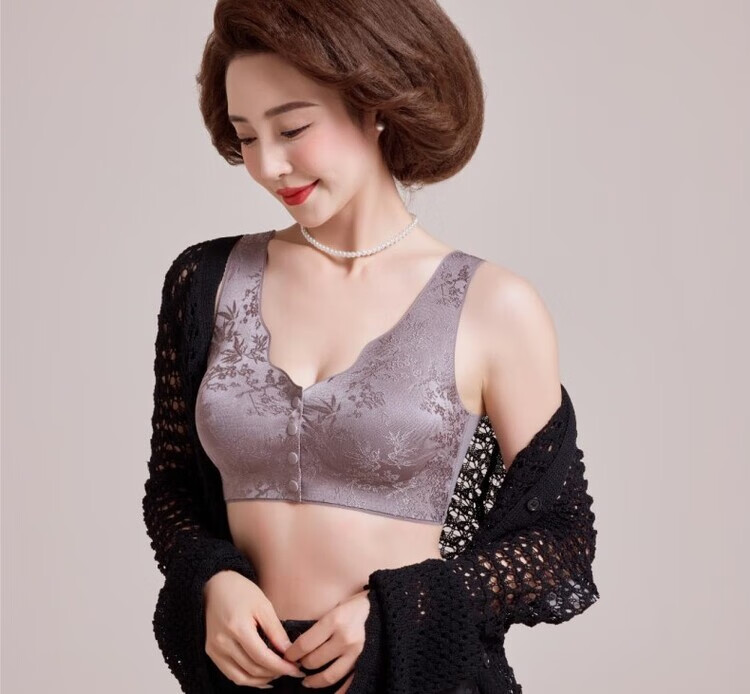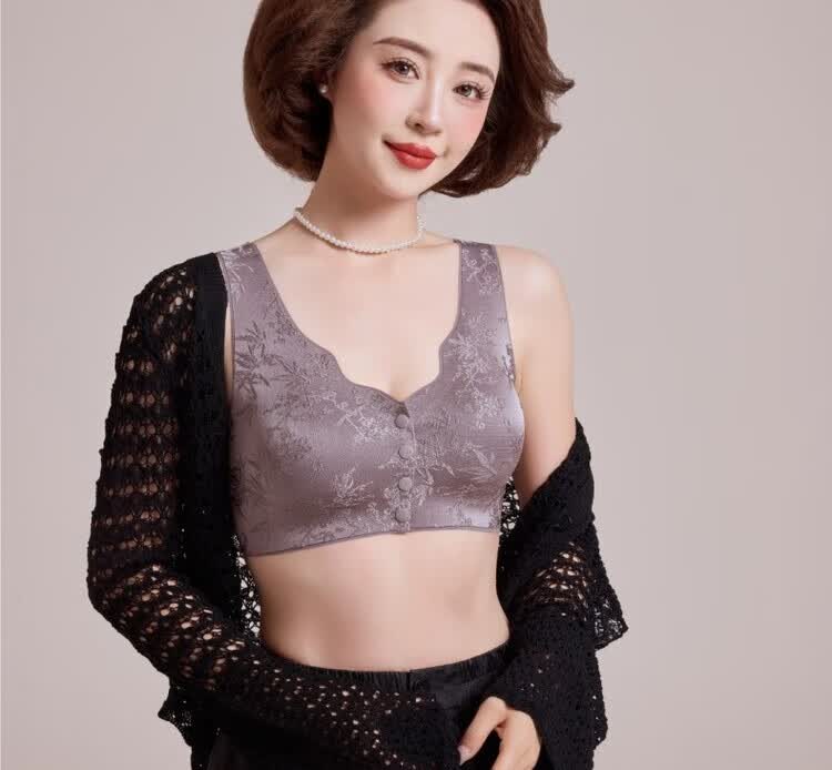 Huanli Queen's Preferred Underwear Front Open Button Adjustable Bra Comfortable Women's Push-up Wireless Embossed Jacquard Bra Two-piece Pack Dark Green + Dark Green 4XL (181-200Jin Jin equals 0.5kg)
