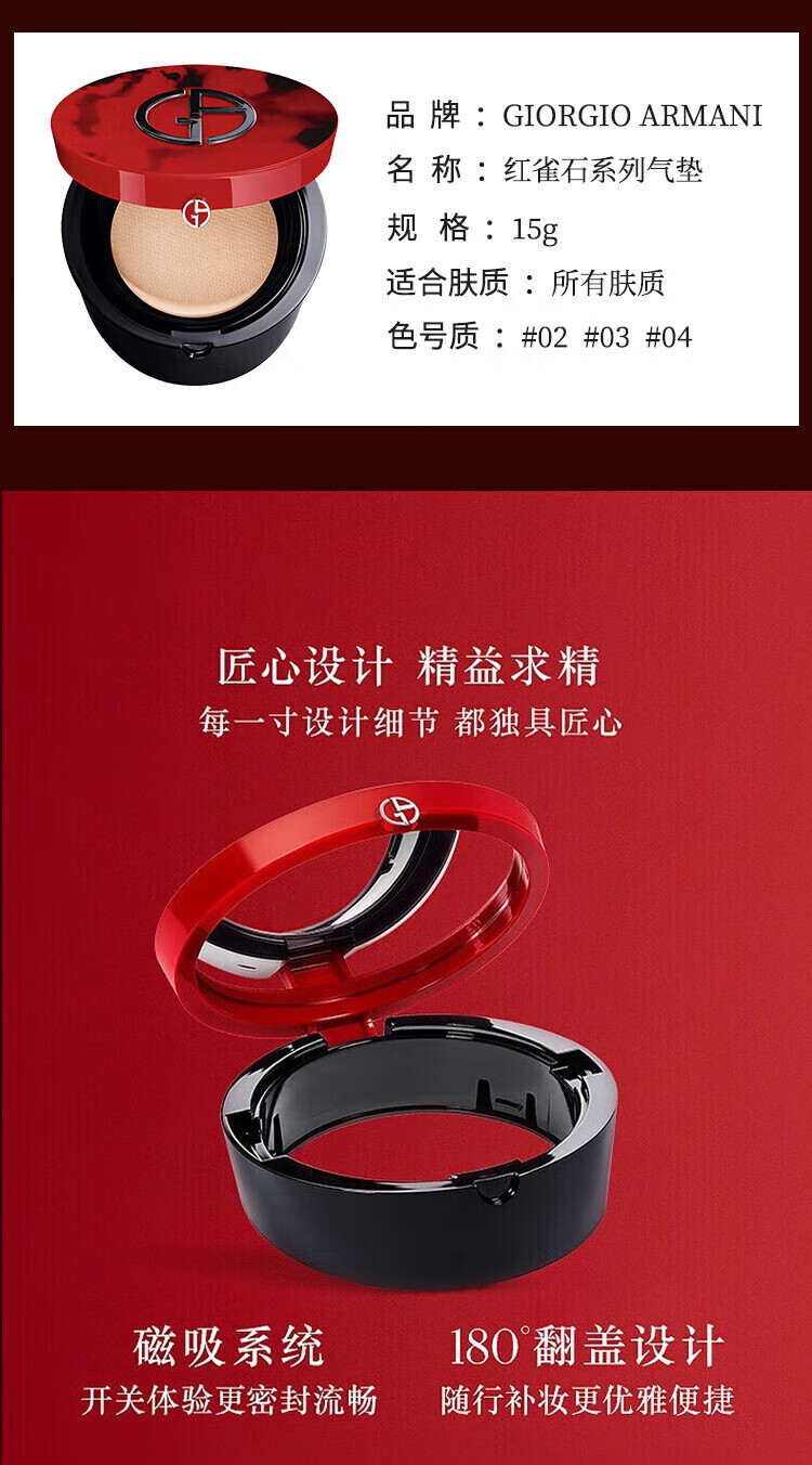 ARMANI Nude Brown Crocodile Star Lacquered Carnelian Cushion Refill Concealer Long-lasting Liquid Foundation #4 Red Cushion Refill 15g