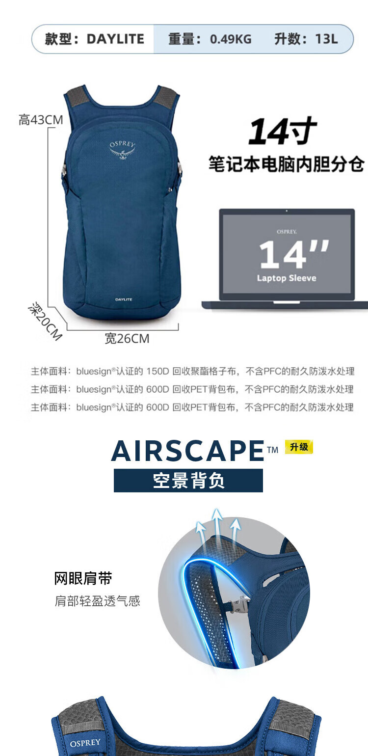 OSPREY Daylight 13L Backpack 13L Outdoor Commuting Travel Portable Multifunctional Urban Light Outdoor Travel Backpack 13L Pine Leaf Green (2025 New Style)