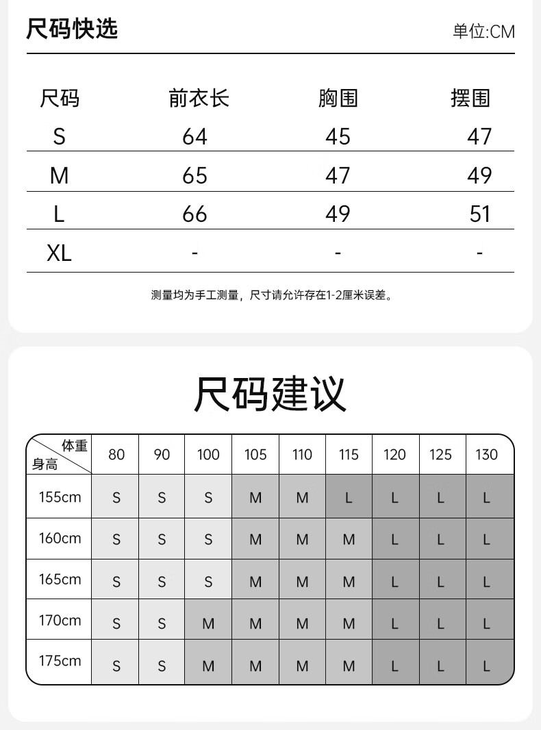 China (cm) 160-165/84-86 165-170 / 88-90 167-172 / 92-96 168-173 / 98-102 170-176 / 106-110