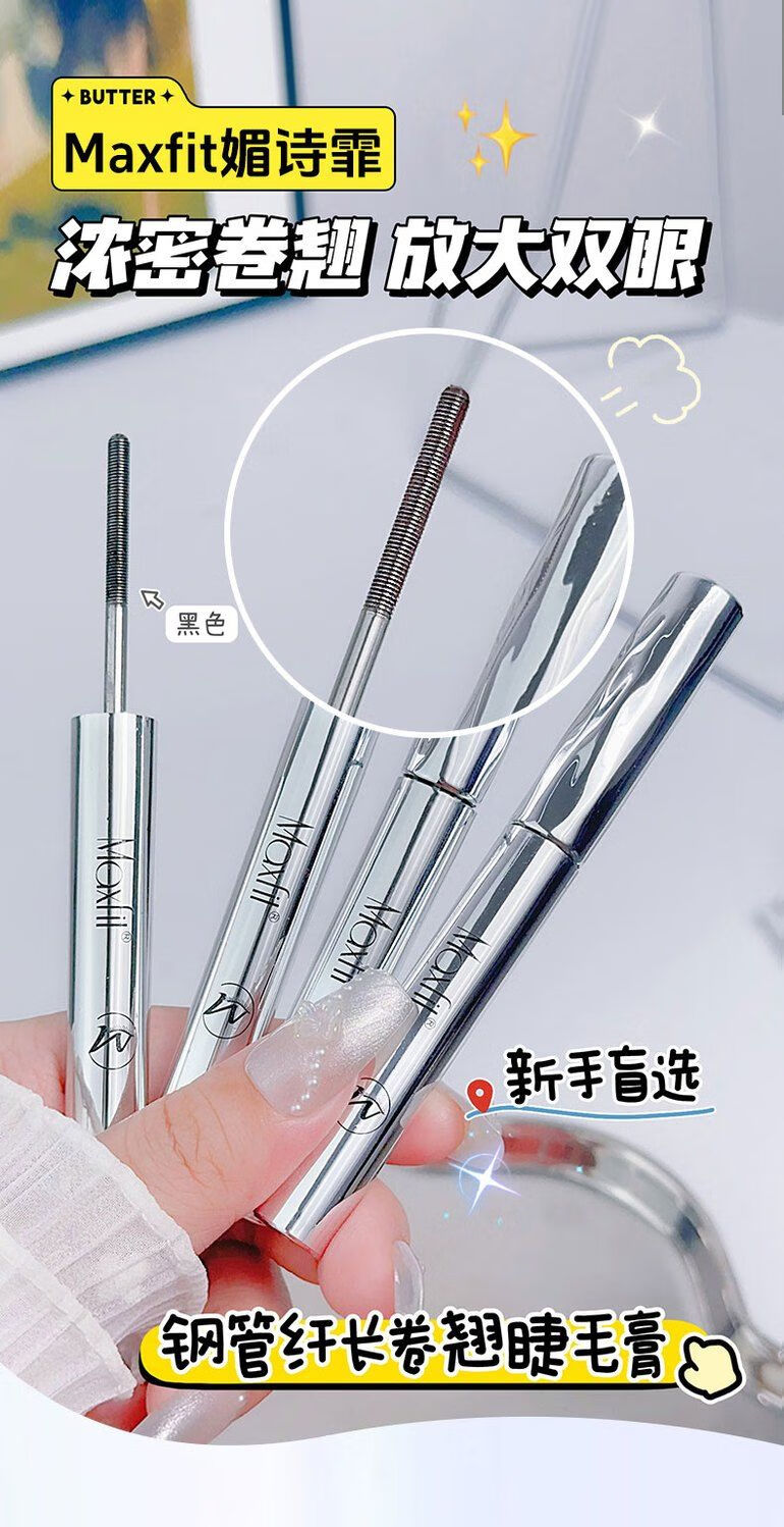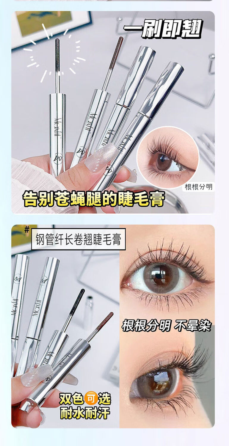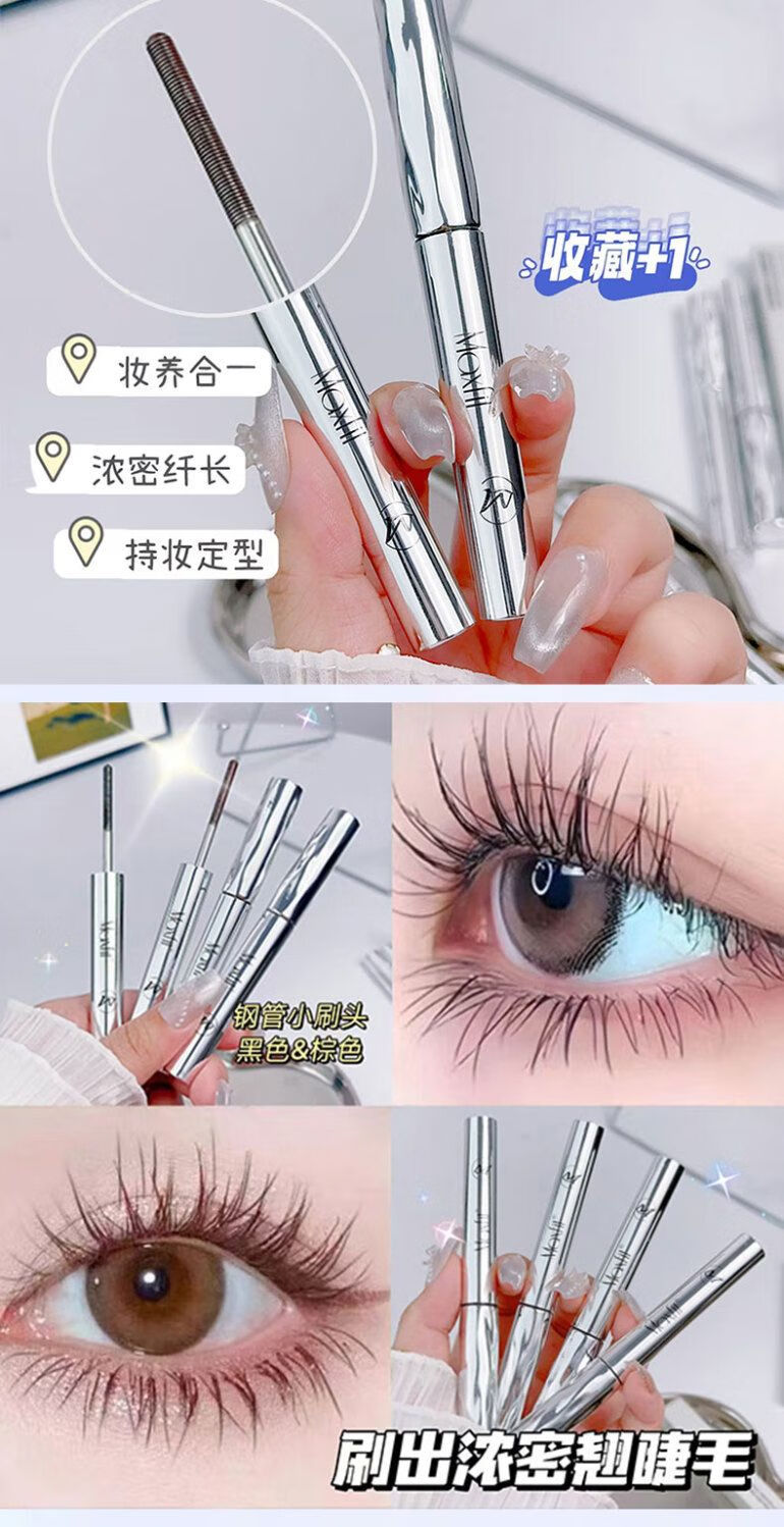 Xiaoyu Haitang Steel Tube Mascara Waterproof and Styling Beginner's Slim, Curly, Non-smudged Thick Roots with Distinct Roots Women's Steel Tube Mascara - Black + Wide Angle Tooth Comb Eyelash Curler