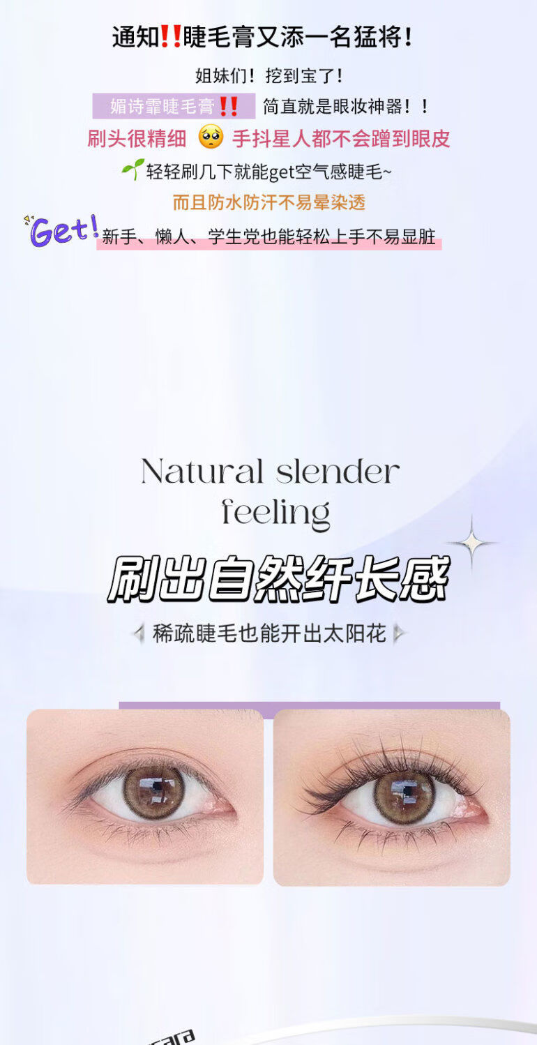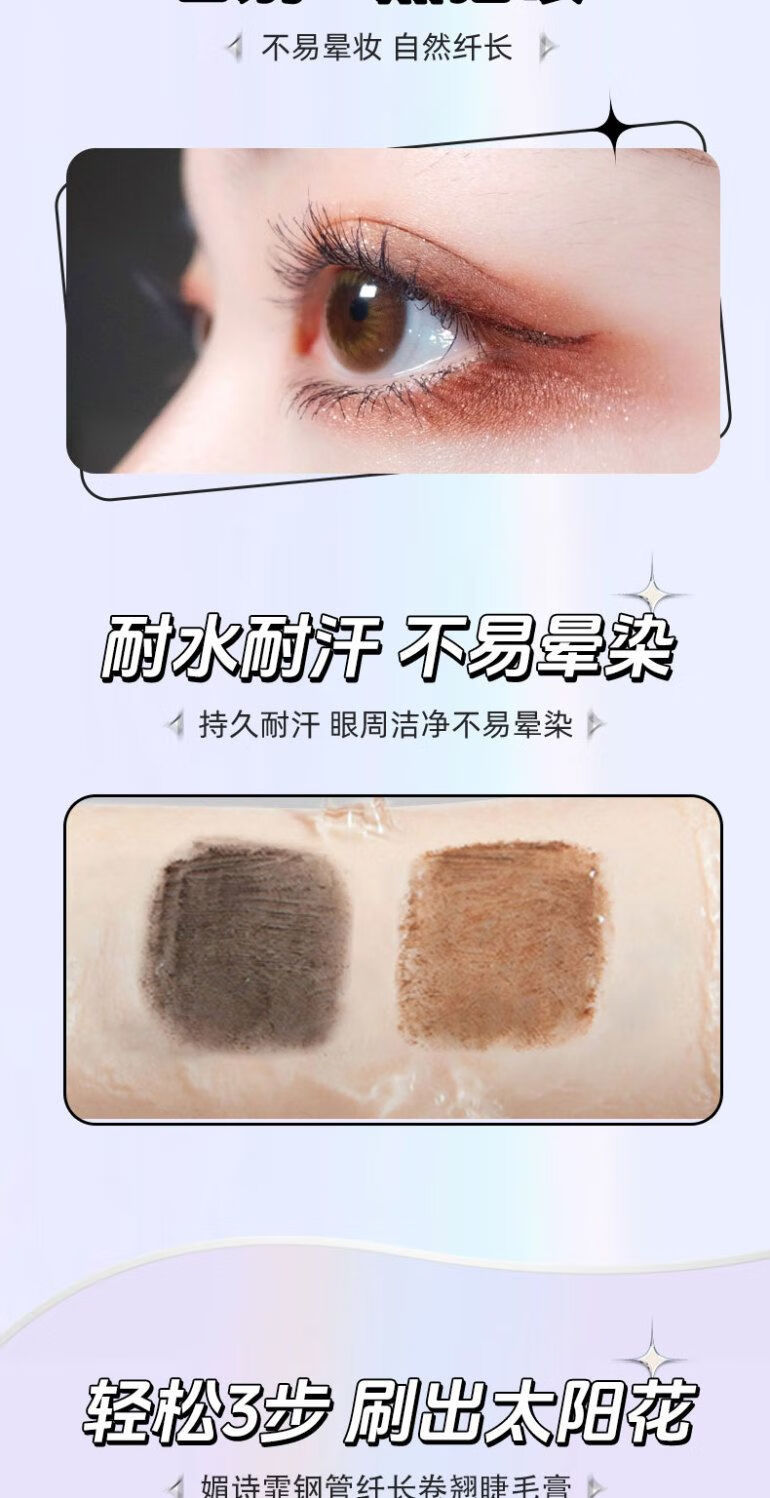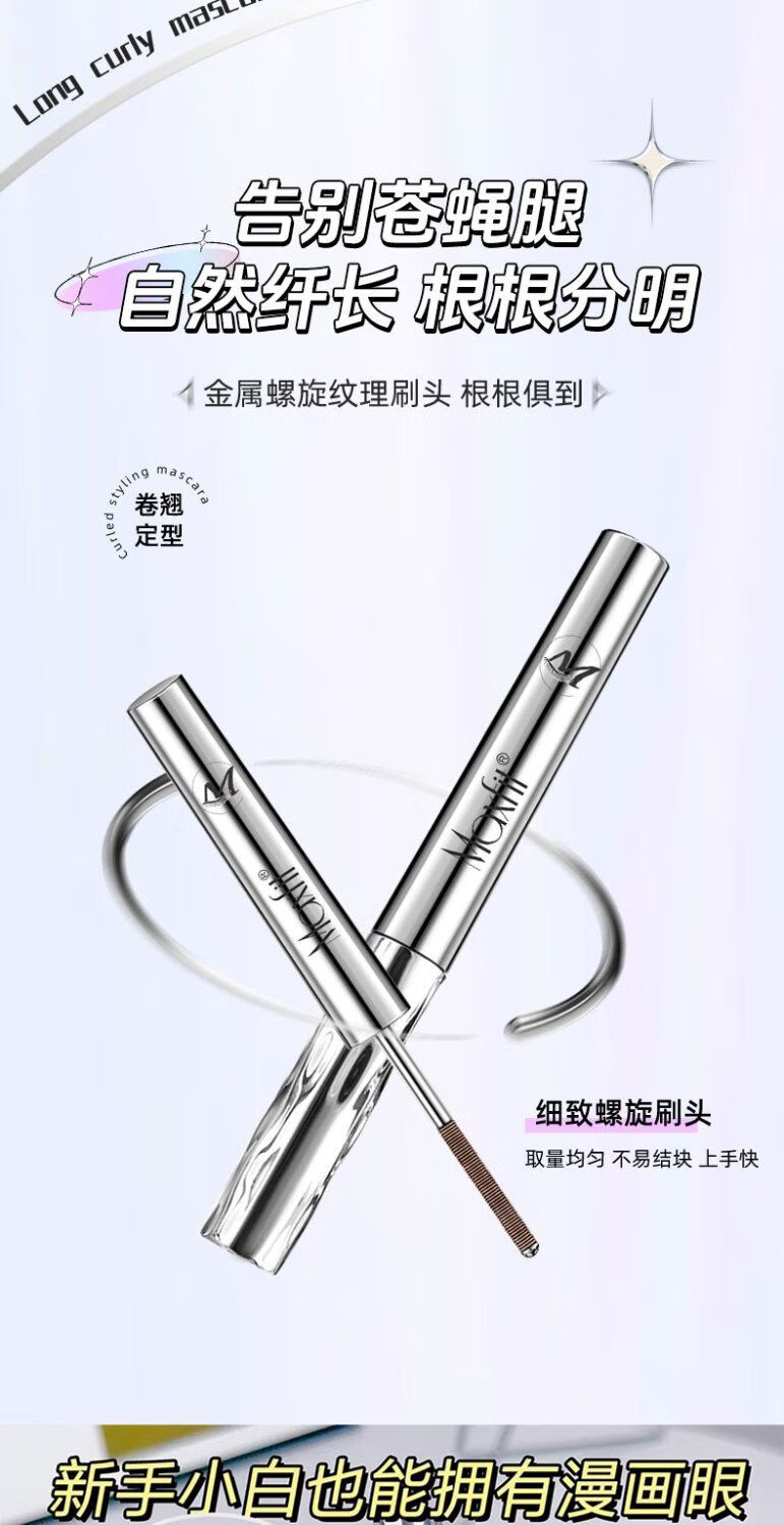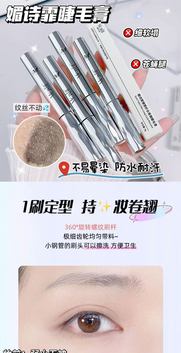 Xiaoyu Haitang Steel Tube Mascara Waterproof and Styling Beginner's Slim, Curly, Non-smudged Thick Roots with Distinct Roots Women's Steel Tube Mascara - Black + Wide Angle Tooth Comb Eyelash Curler