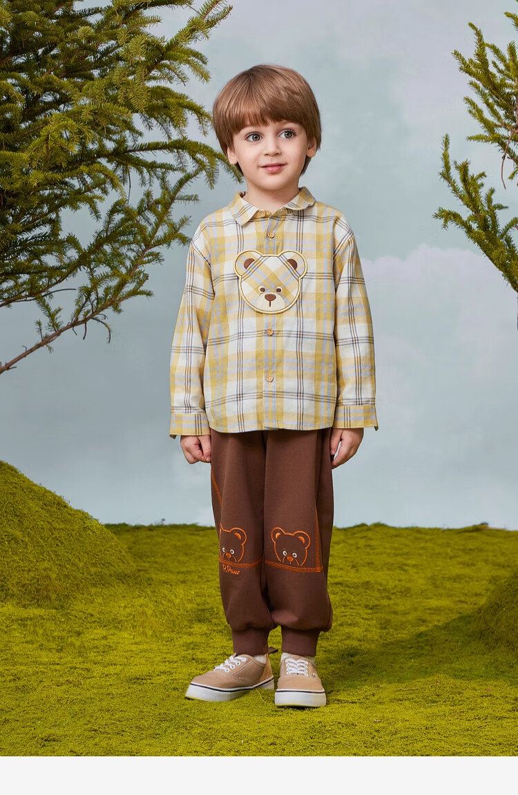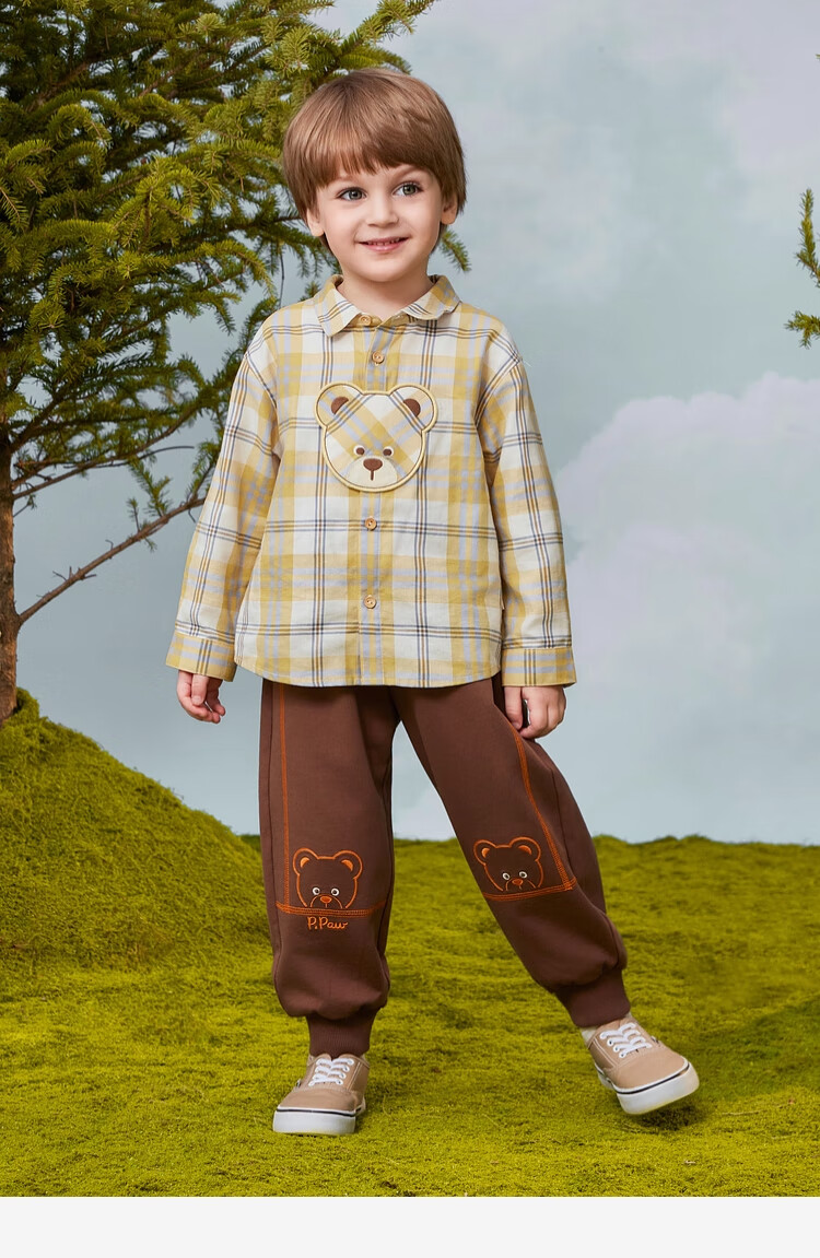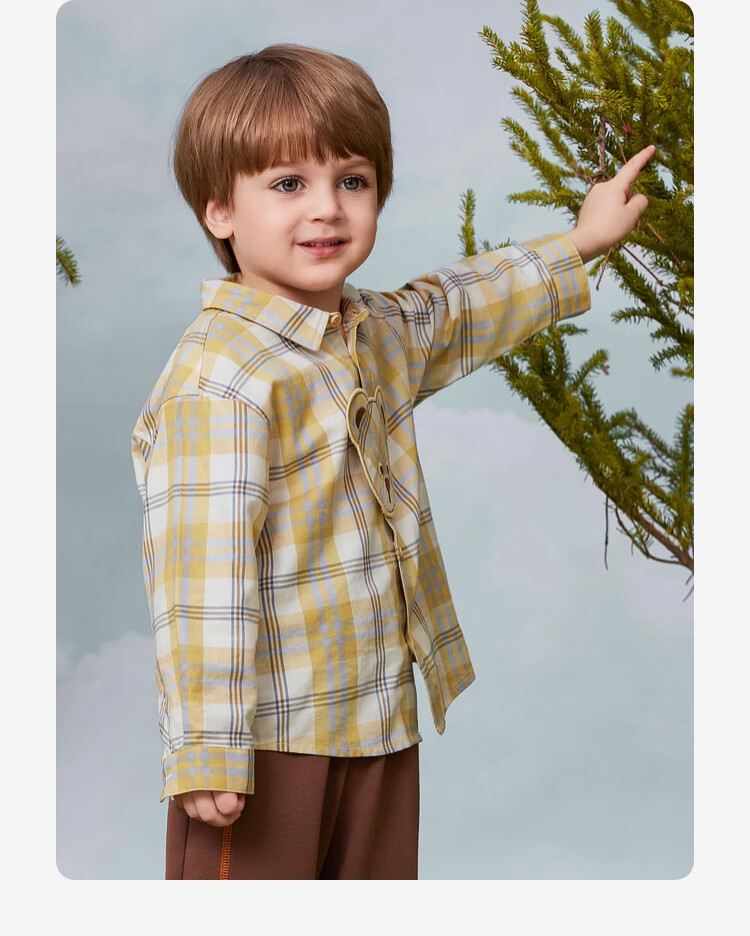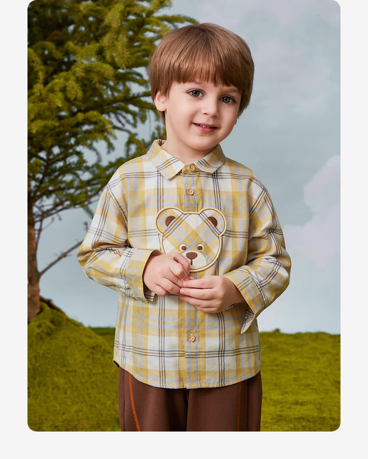 PawinPaw cartoon bear children's clothing 25th autumn new baby boy long-sleeved plaid shirt comfortable jacket Yellow/30 110