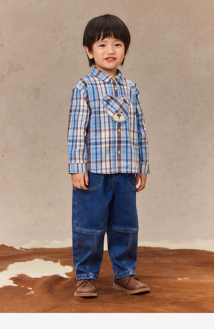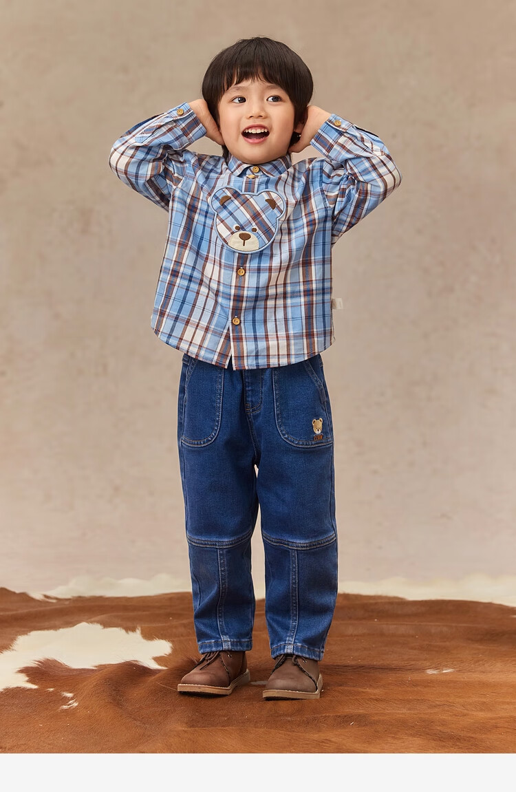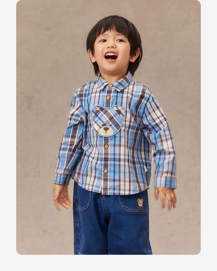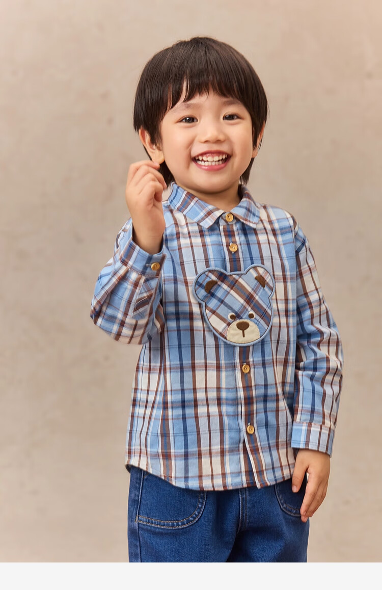 PawinPaw cartoon bear children's clothing 25th autumn new baby boy long-sleeved plaid shirt comfortable jacket Yellow/30 110