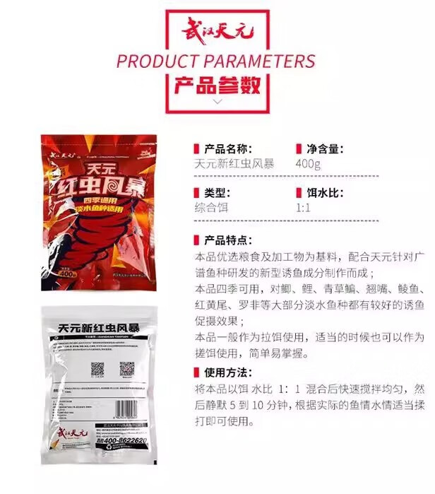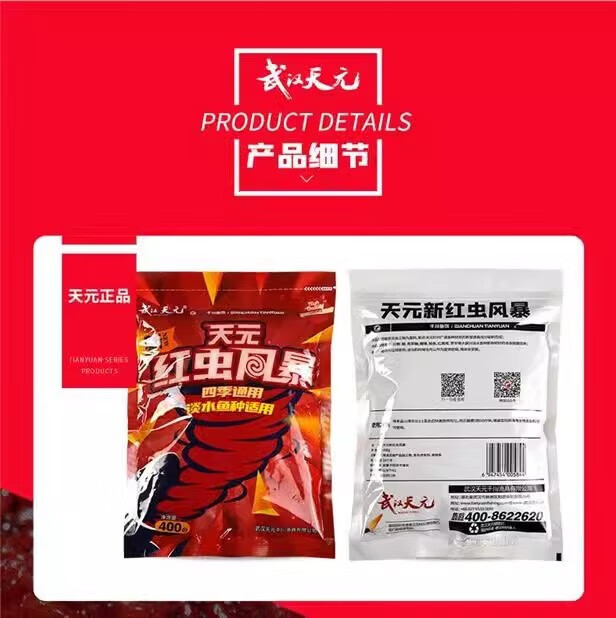 Wuhan Tianyuan Deng Gang New Red Worm Storm Four Seasons Wild Fishing Crucian Carp Bait Fishing Bait Special for Wild Fishing 400g Tianyuan New Red Worm Storm 400g