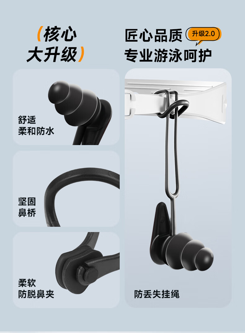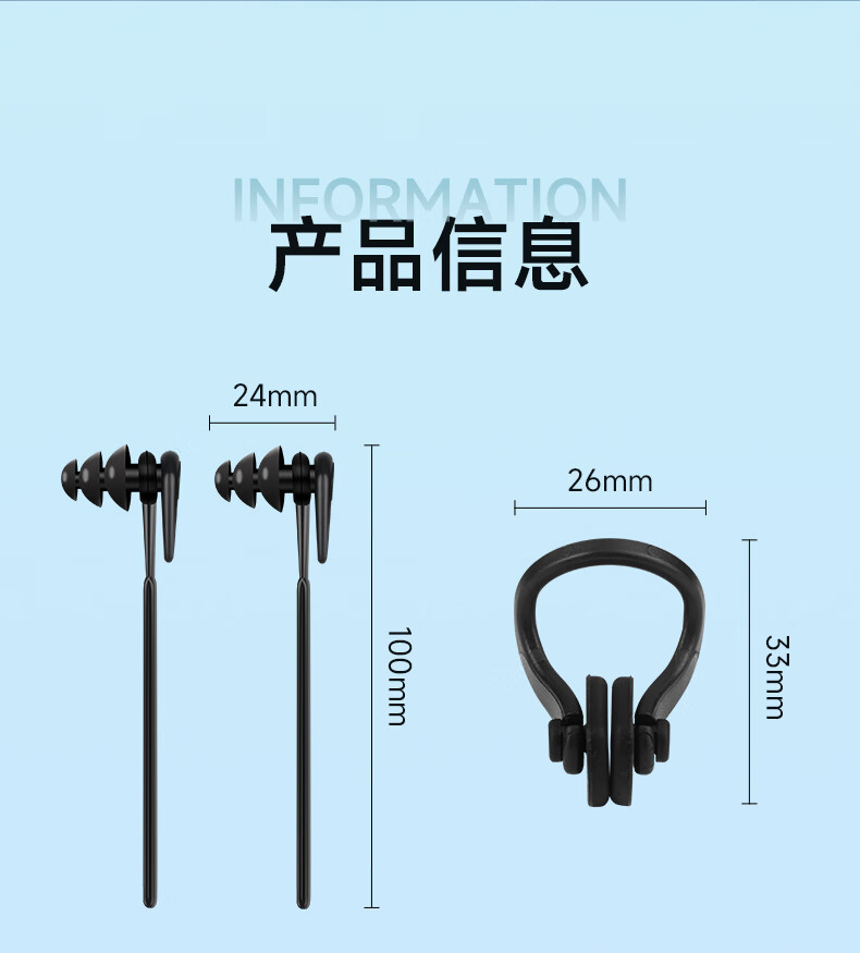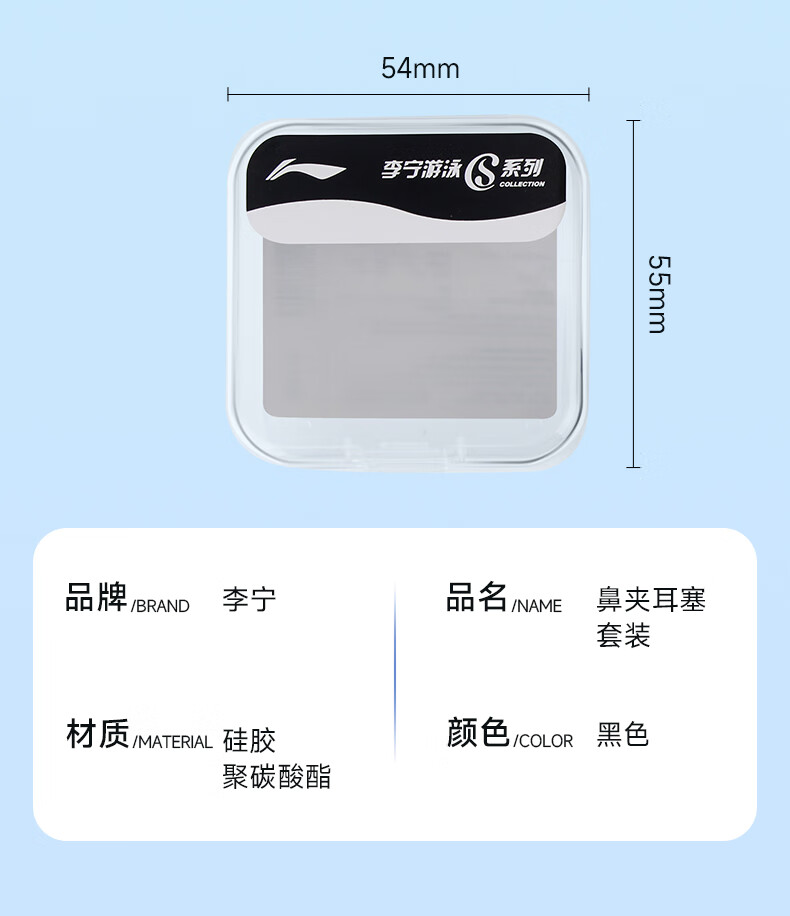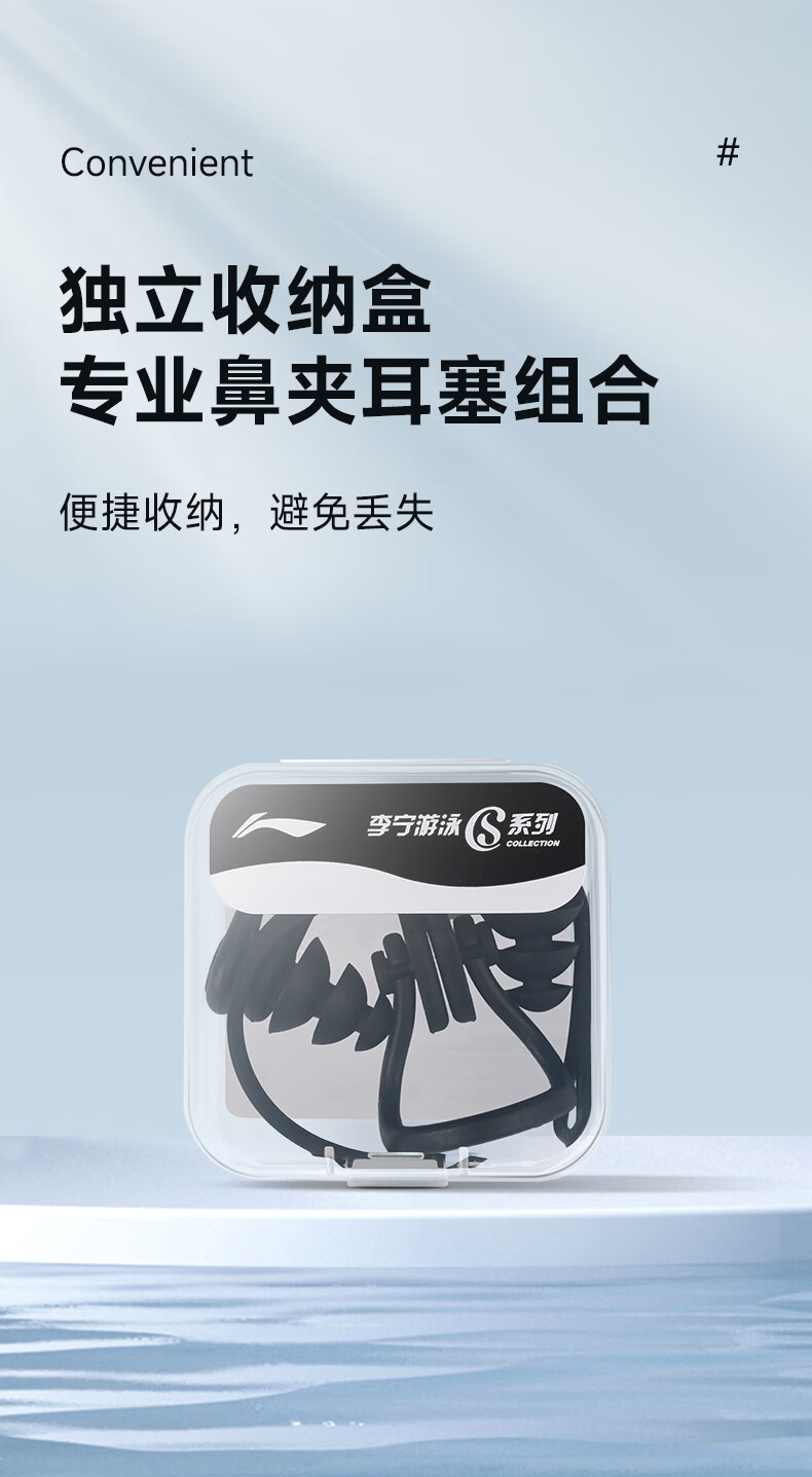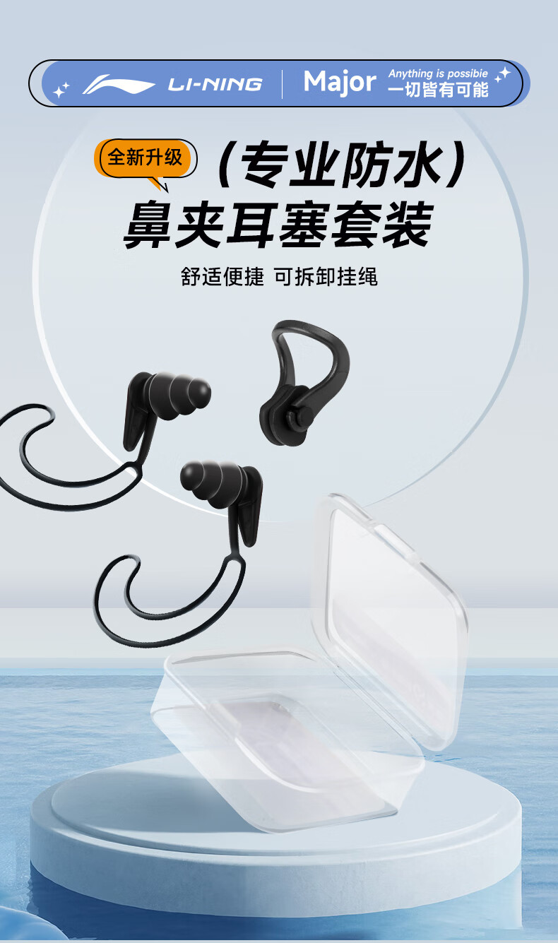 Li-NING (LI-NING) nose clip earplugs two-piece set for men and women, swimming training and diving special summer swimming nose clip, black nose clip earplug set