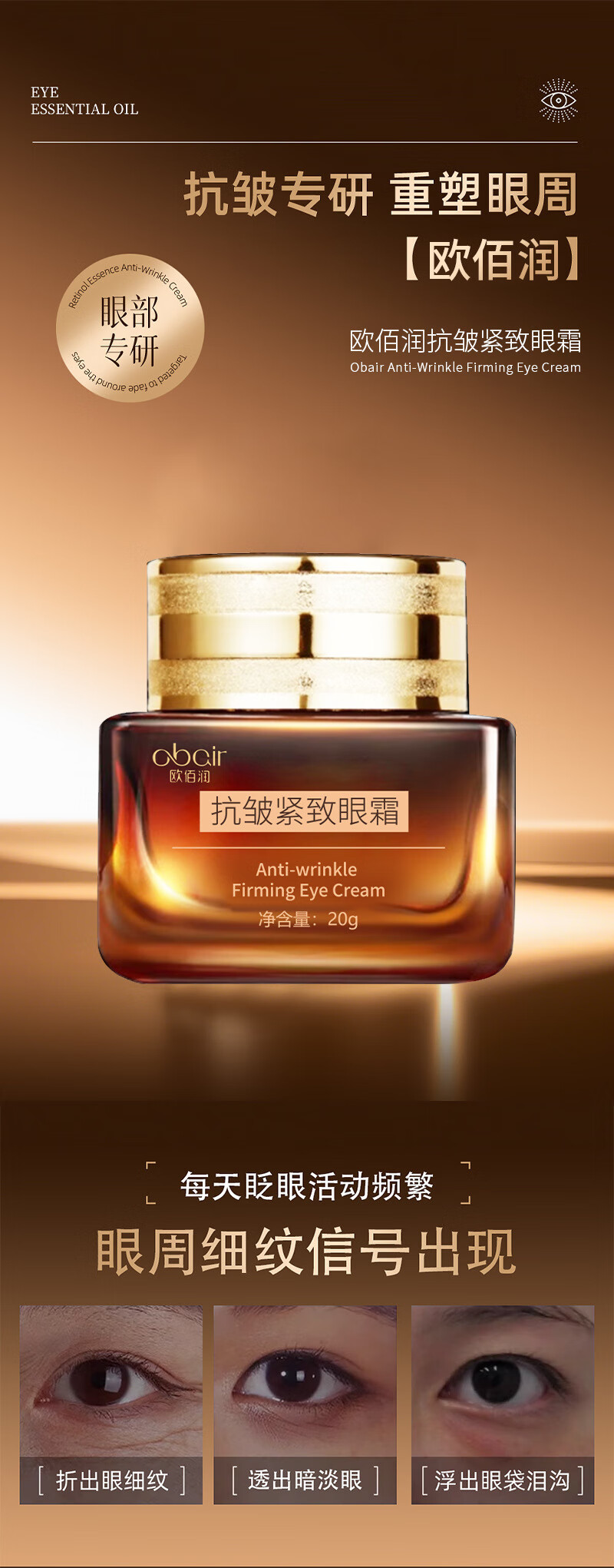 欧佰润水嫩保湿精华眼霜小棕瓶呵护眼周补水眼部护理眼霜 一瓶装