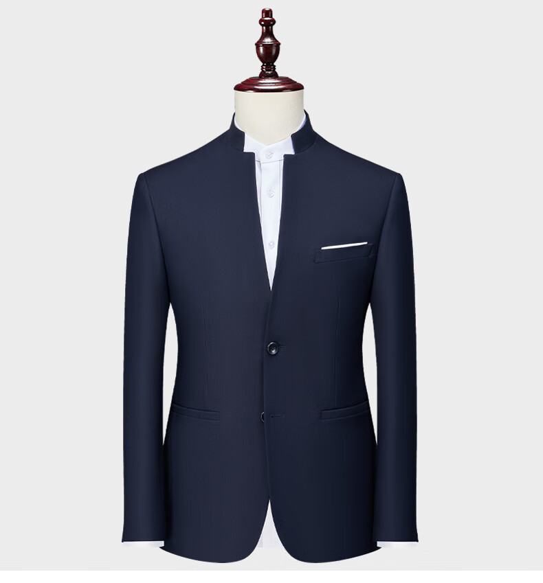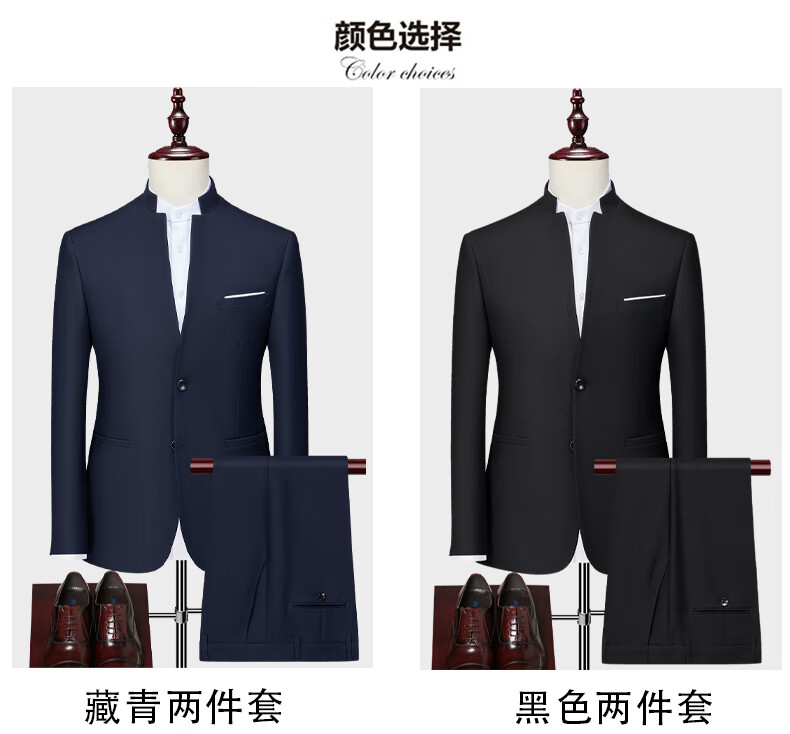 Hengyuanxiang 2025 Chinese Stand Collar Suit Men's Mao Suit Men's Wedding Youth Casual Suit Jacket Chinese Top Black-Top+Shirt+*Pants 2XL