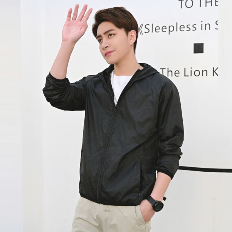 Sun protection clothing men's summer thin ice silk anti-UV fishing sun protection clothing large size outdoor sports jacket skin clothing black XL 110-120Jin Jin equals 0.5 kg
