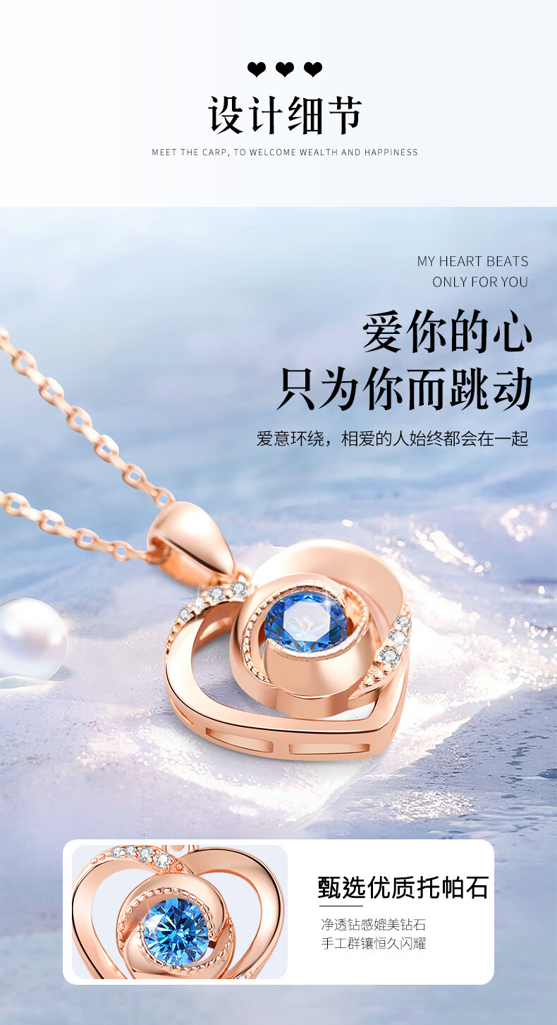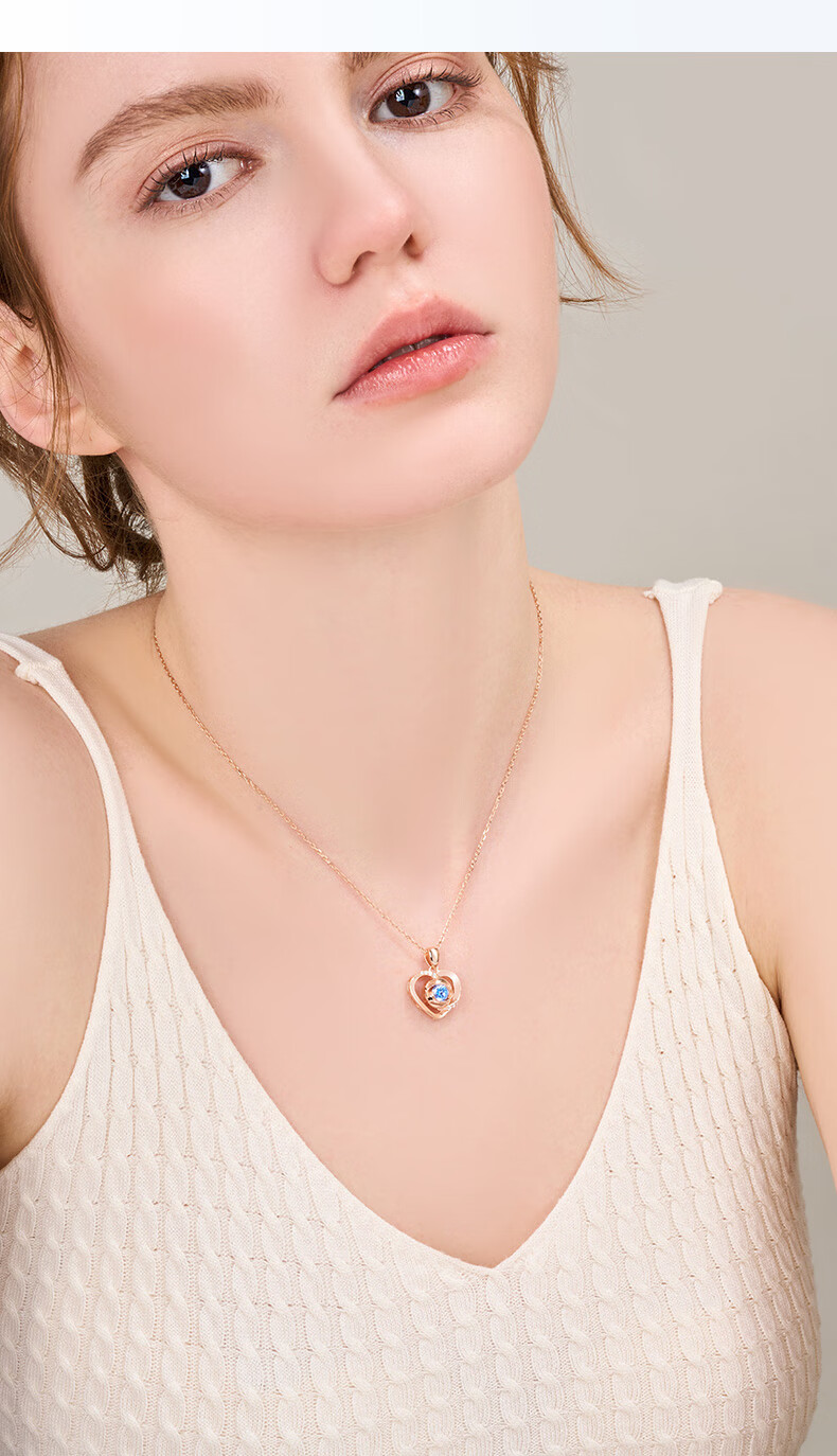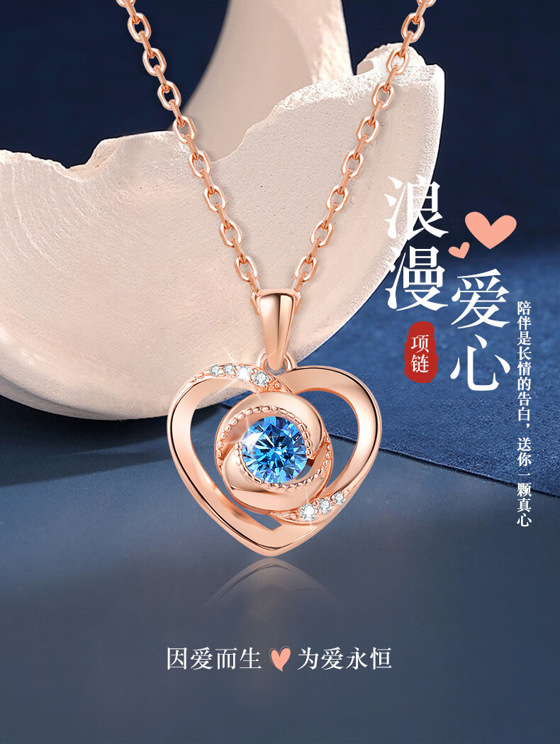 GUSKI French brand Eternal Heart Necklace for Women Rose Gold Pendant High-end Anniversary Birthday Gift for Girlfriend Rose Gold White Diamond Can Be Engraved/Greeting Card