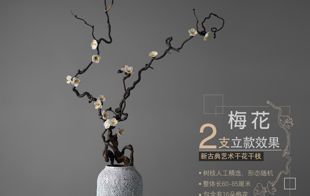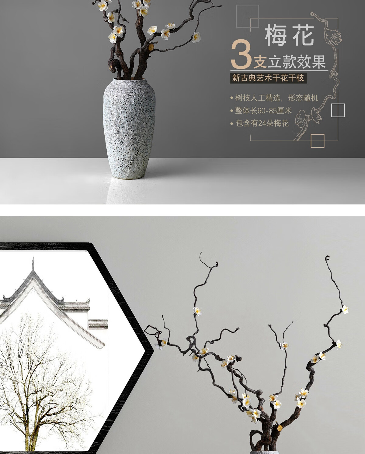 Aesthetic Hacker Dead Branches Real Plum Blossoms Dried Flowers Bouquet Living Room Decoration Natural Shaped Dry Branches Decorative Flower Arrangement Floor-standing Decoration Plum Blossom Sleeping Style 1 Branch Without Big Branches Contains 8 Flowers Not Excluding Vase
