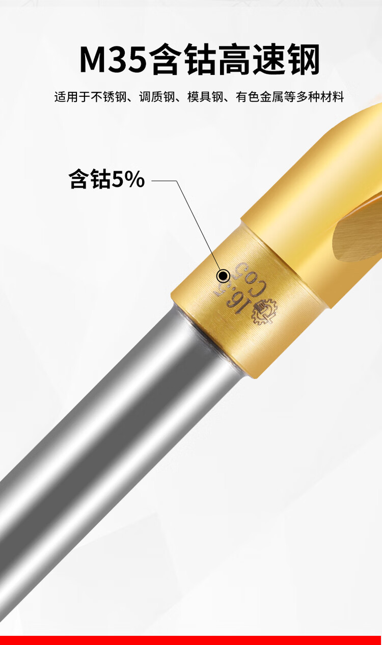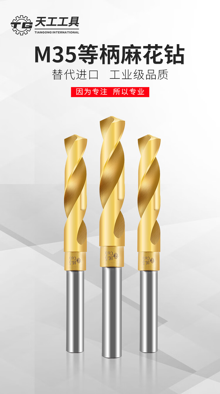 Tiangong M35 equal shank twist drill bit containing cobalt shrink shank drill stainless steel special industrial grade small shank drill mold steel 1/2 13m 14.5mm