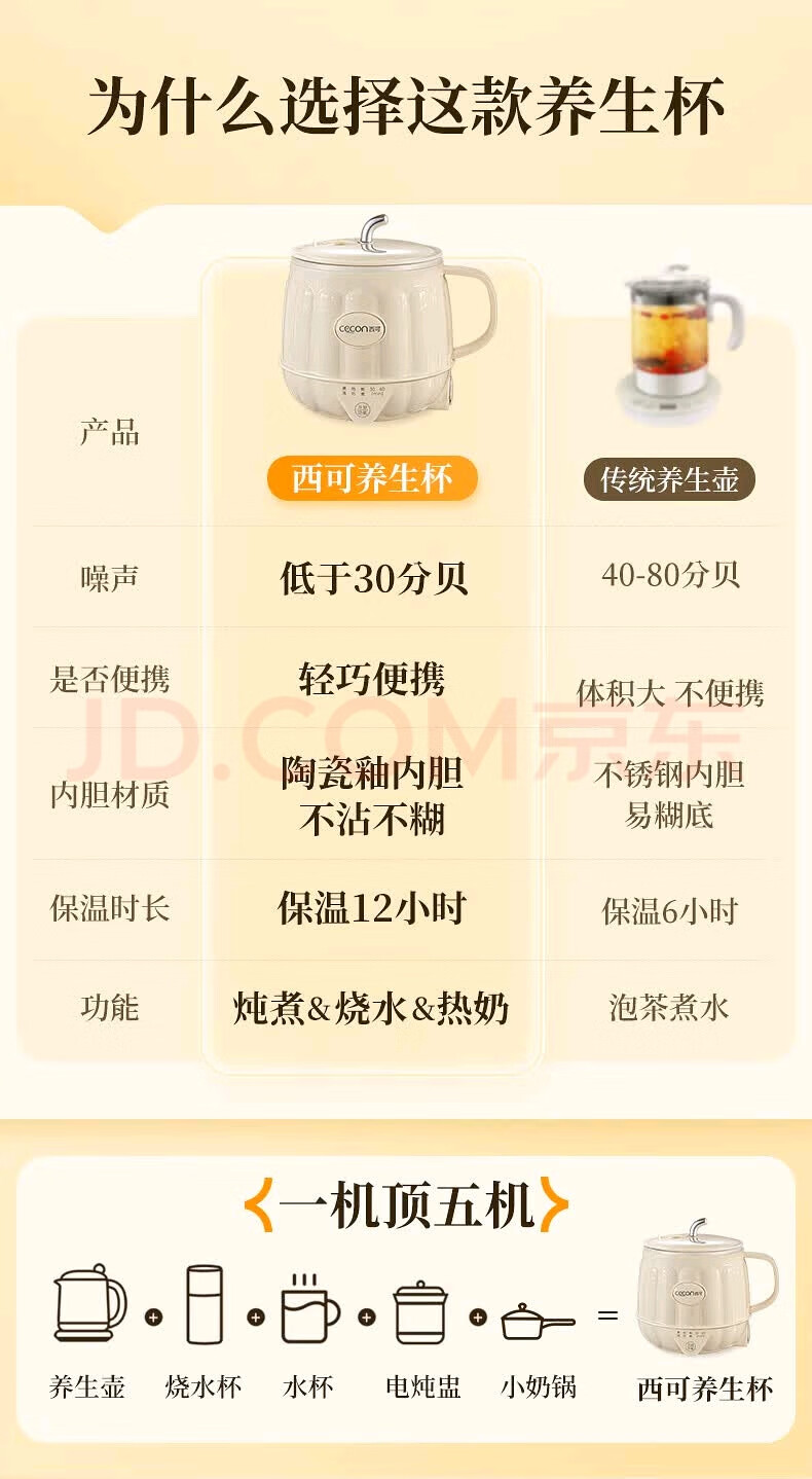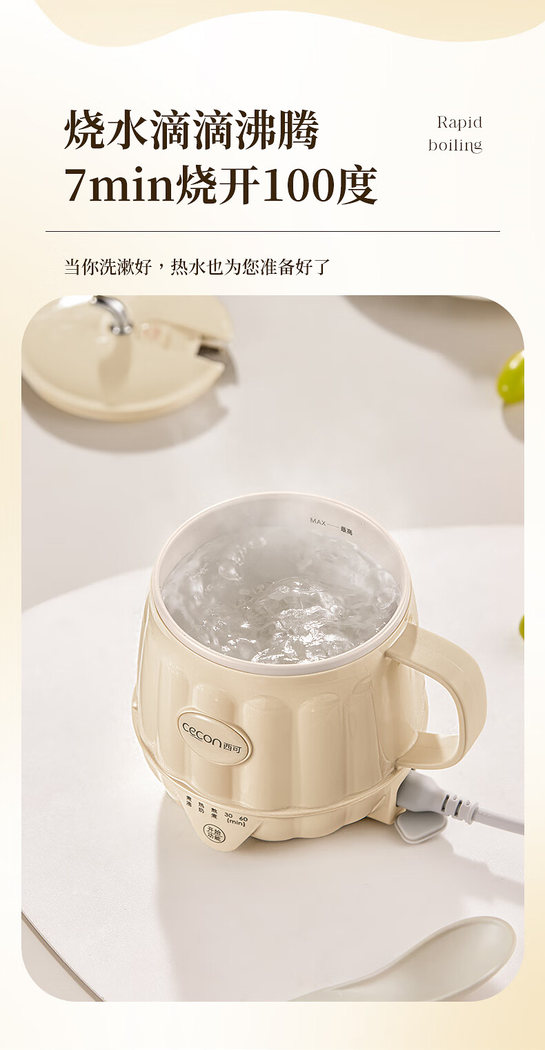 Xiko hot milk cup electric stew cup health kettle mini office for one person to boil water electric cup electric hot milk cup flower teapot ladies gift company gift cream white free spoon + egg holder hot milk + boil water + stew 0.6L